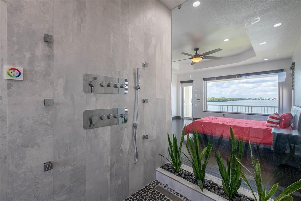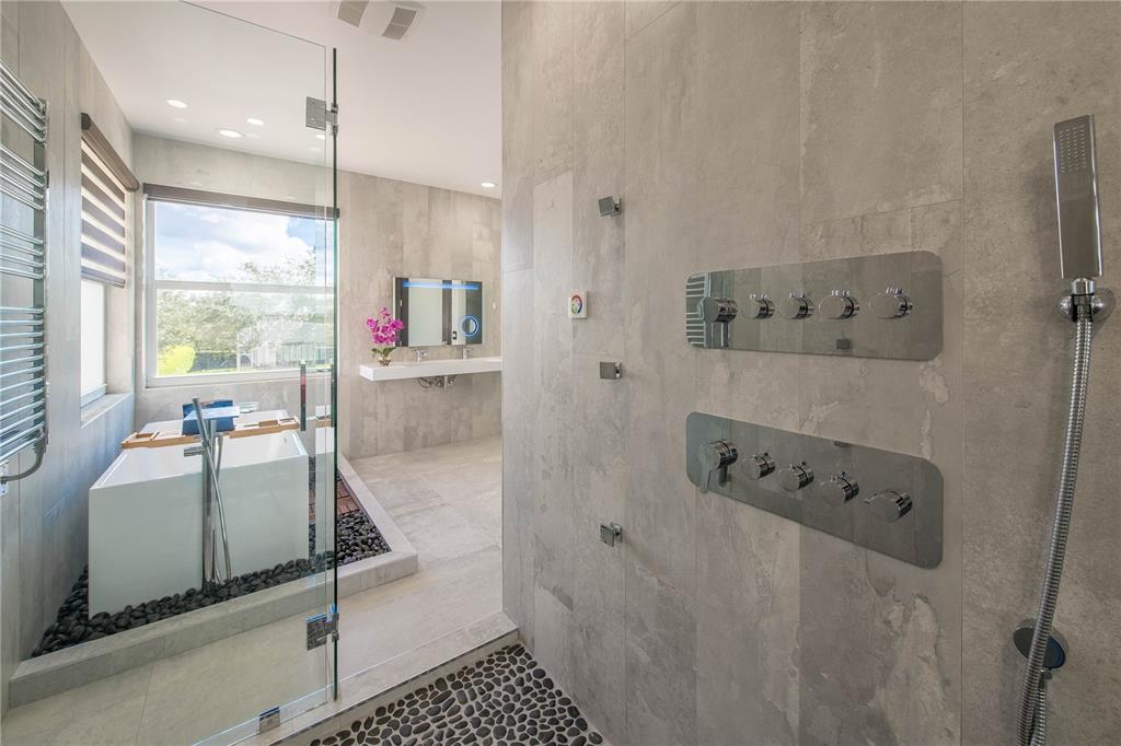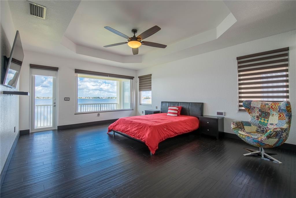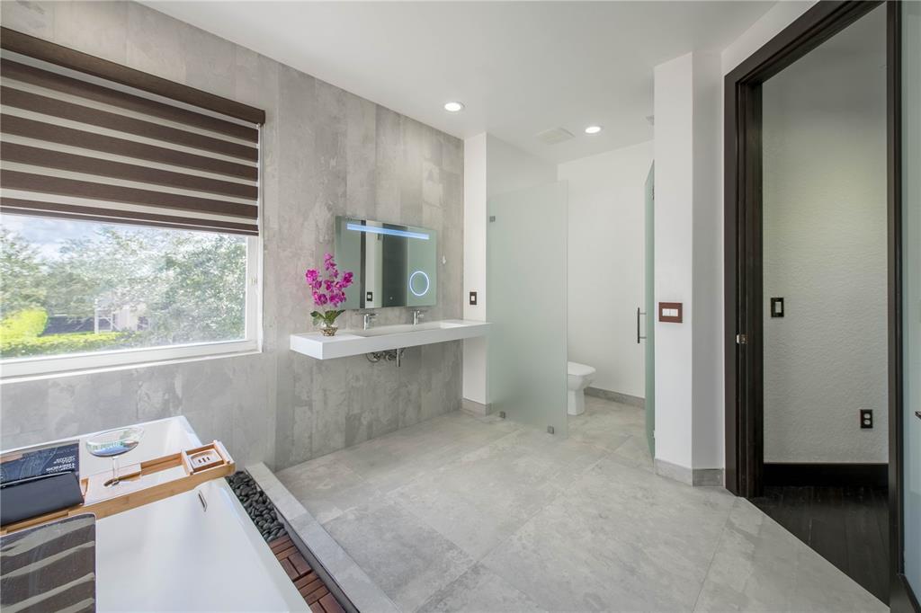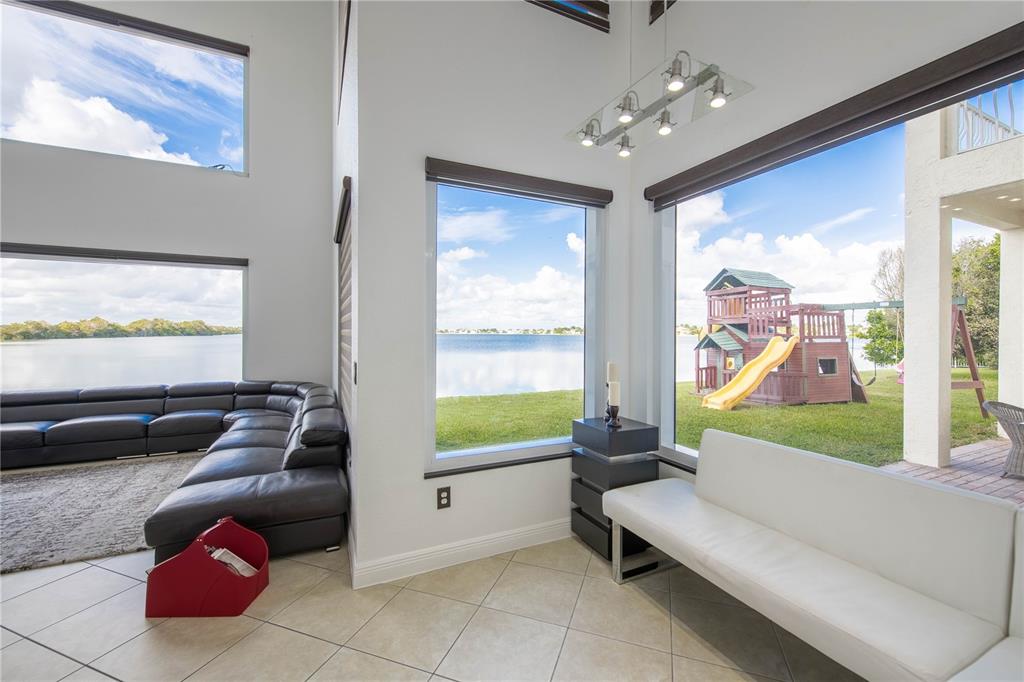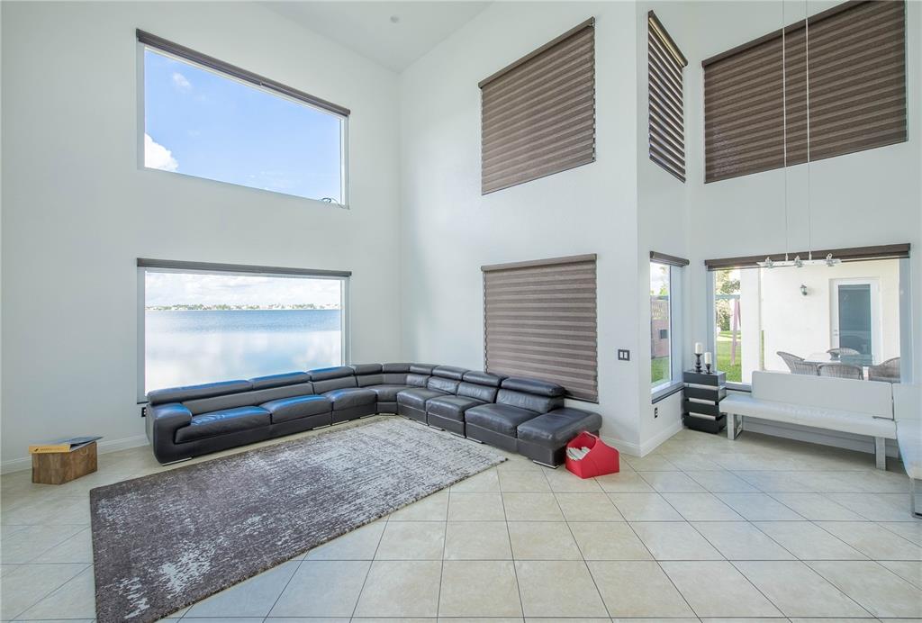 Stunning remodeled home with 5bed/4.5baths plus office. Impact glass windows, doors and electric modern window treatment throughout the entire home. Beautiful glass railing stairs and wood floors upstairs. The second floor has been completed remodeled,led lighting, new A/c unit and water heater,all the closets are costume made. Amazing lake view sunsets from every angle of the property!