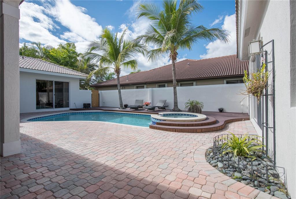 Stunning modern one-story courtyard house with 3 bedrooms and 2.5 baths in the main house and a guest house with 1bed/1bath. Beautiful upgraded kitchen and bathrooms, neutral colors, tile in the main areas and laminate wood floors in all the bedrooms, new water heater, freshly painted inside and outside. Gorgeous patio with pool/ Jacuzzi and extra privacy, excellent for entertaining.