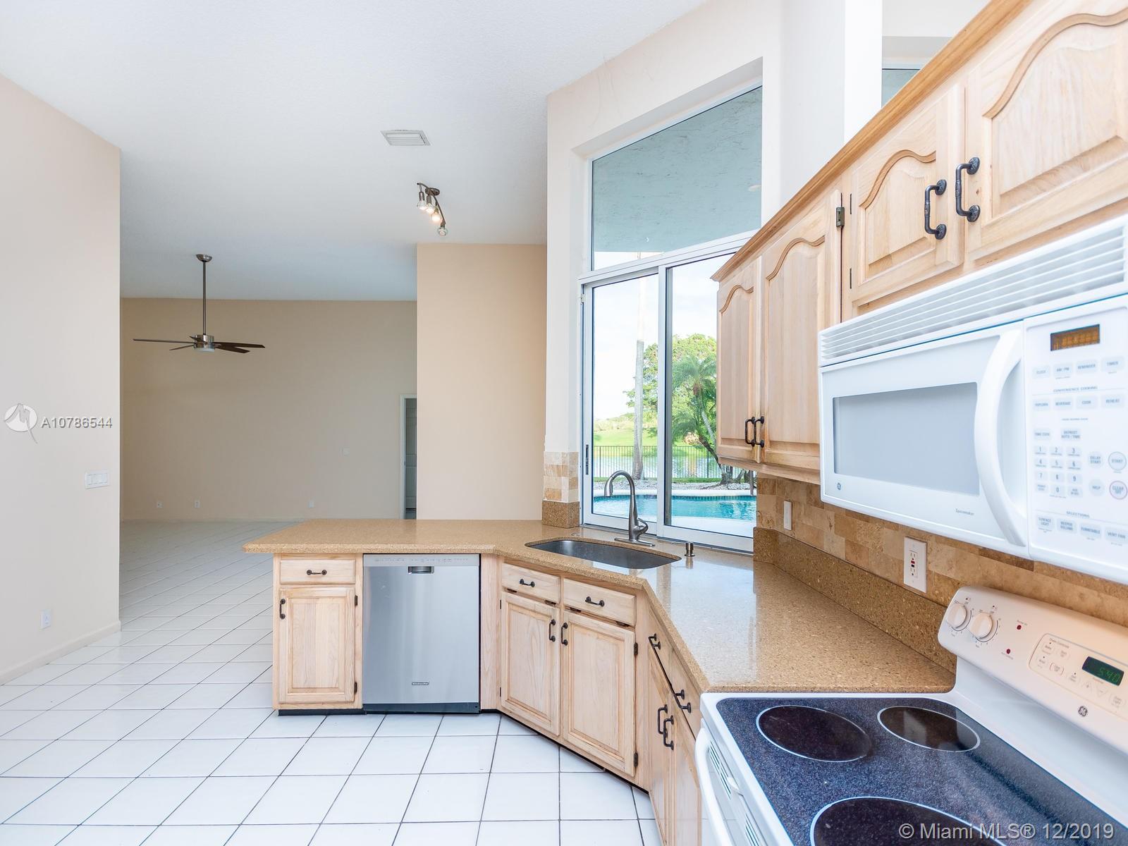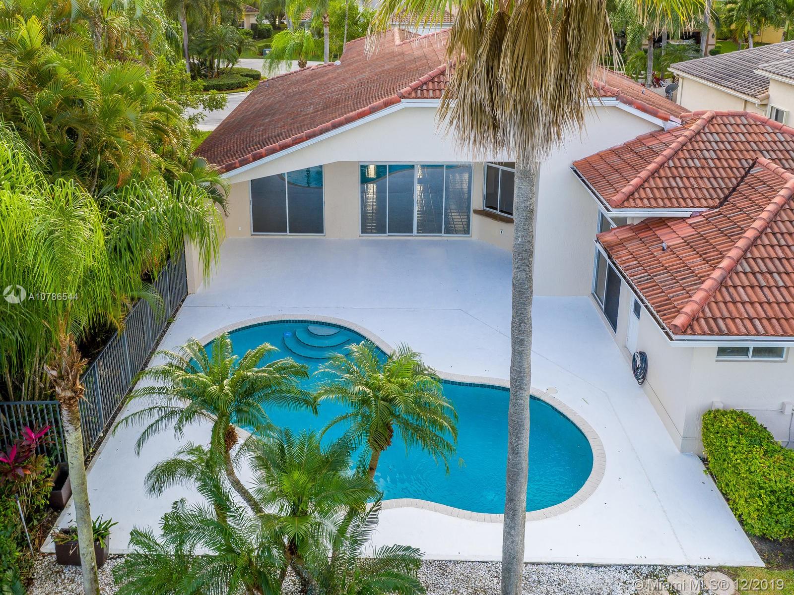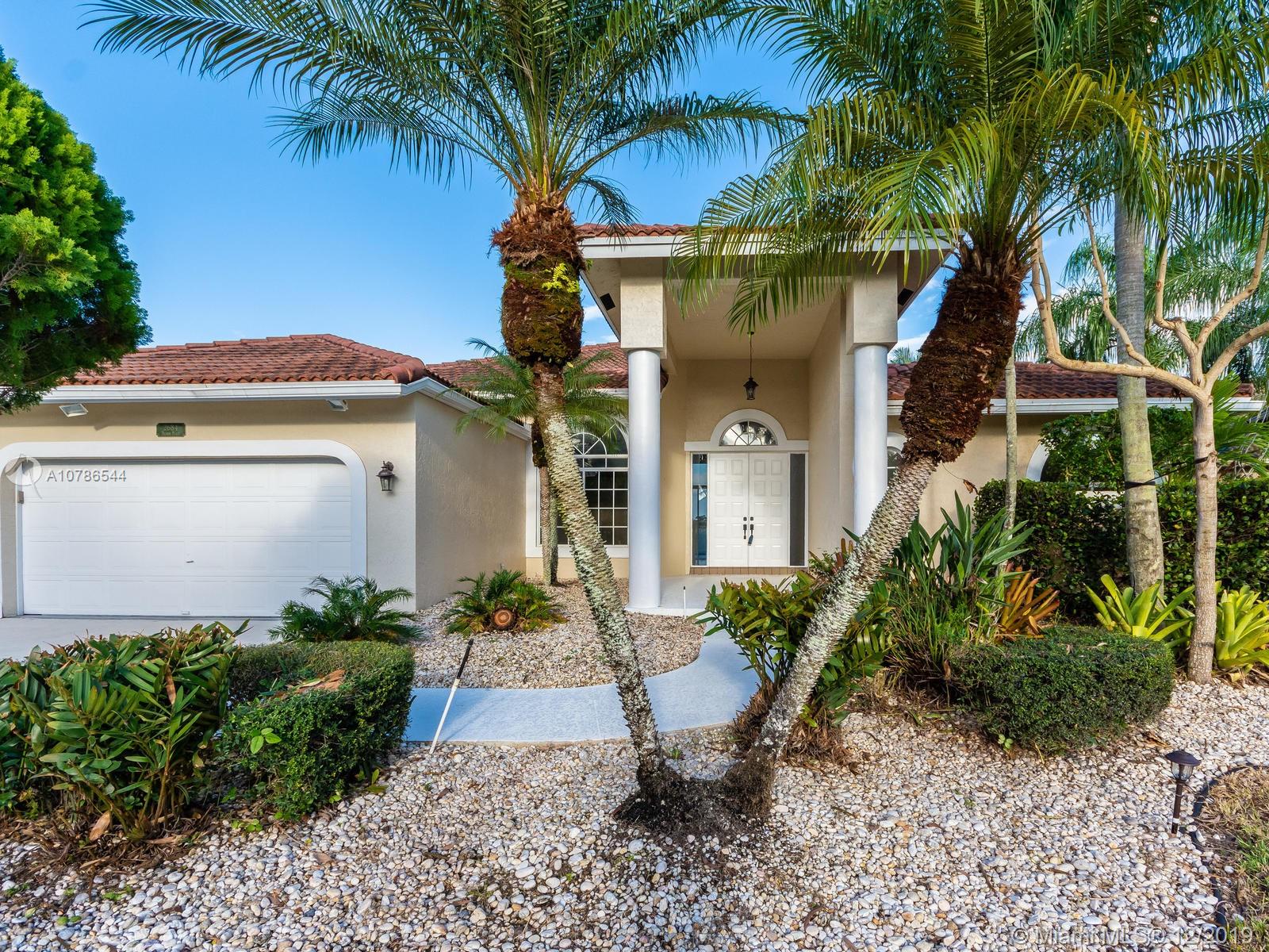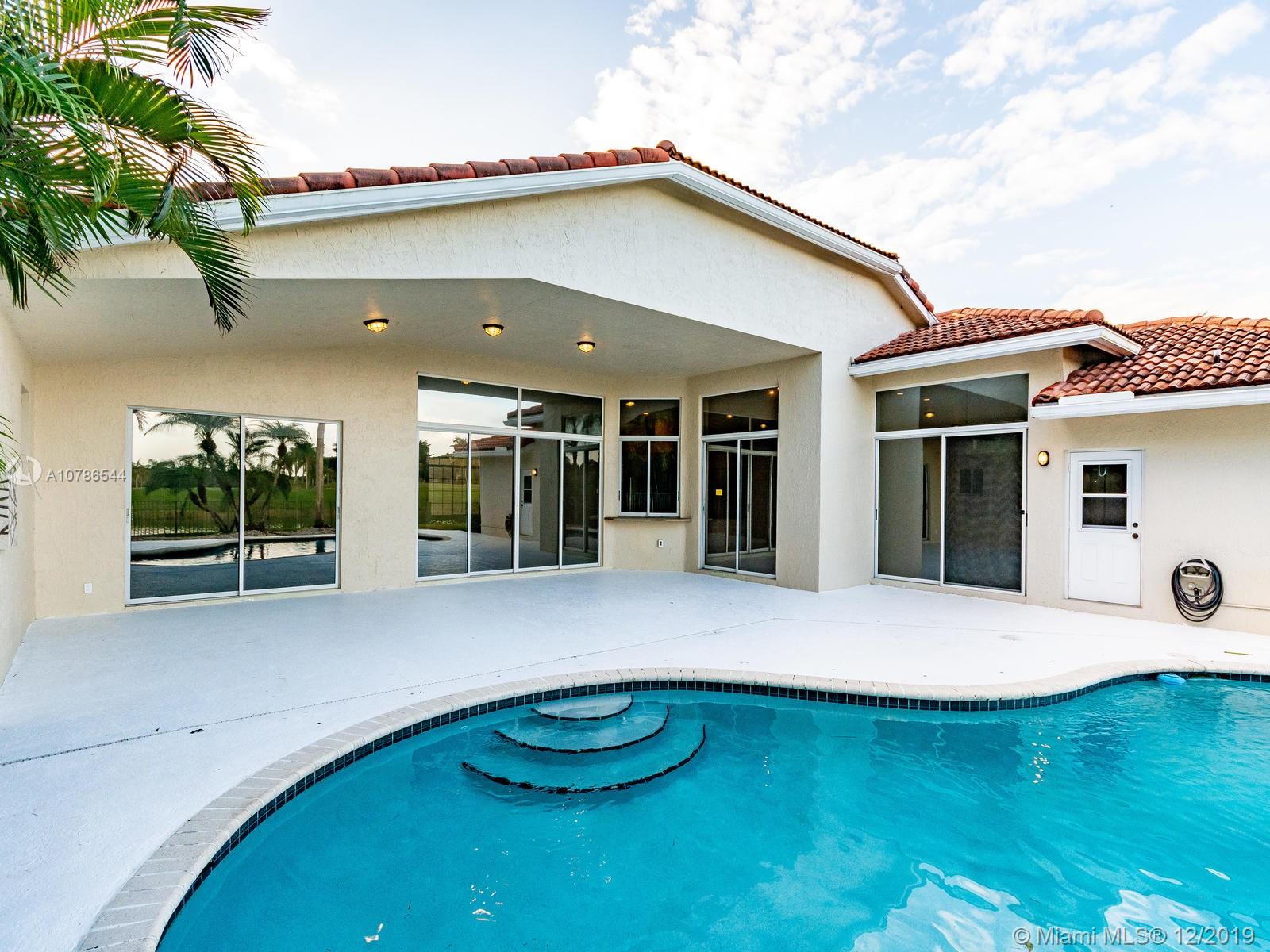 IMPRESIVE VIEWS TO GOLF COURSE, LAKE AND POOL!! located in a Cul de Sac, this house has it all. Great entertainment area in your backyard. Split floor plan, open and spacious, very convenient. Master bedroom has two closets, one is a walking closet, the bathroom is completely tastefully remodeled. Two bedrooms with one bathroom also remodeled, on one side and another bedroom with full bathroom at the other end of the house, Kitchen has granite counter tops. All tiled. Roof was done 9 years ago. Located in the amazing community of Weston Hills being one of the most exclusive in South Florida