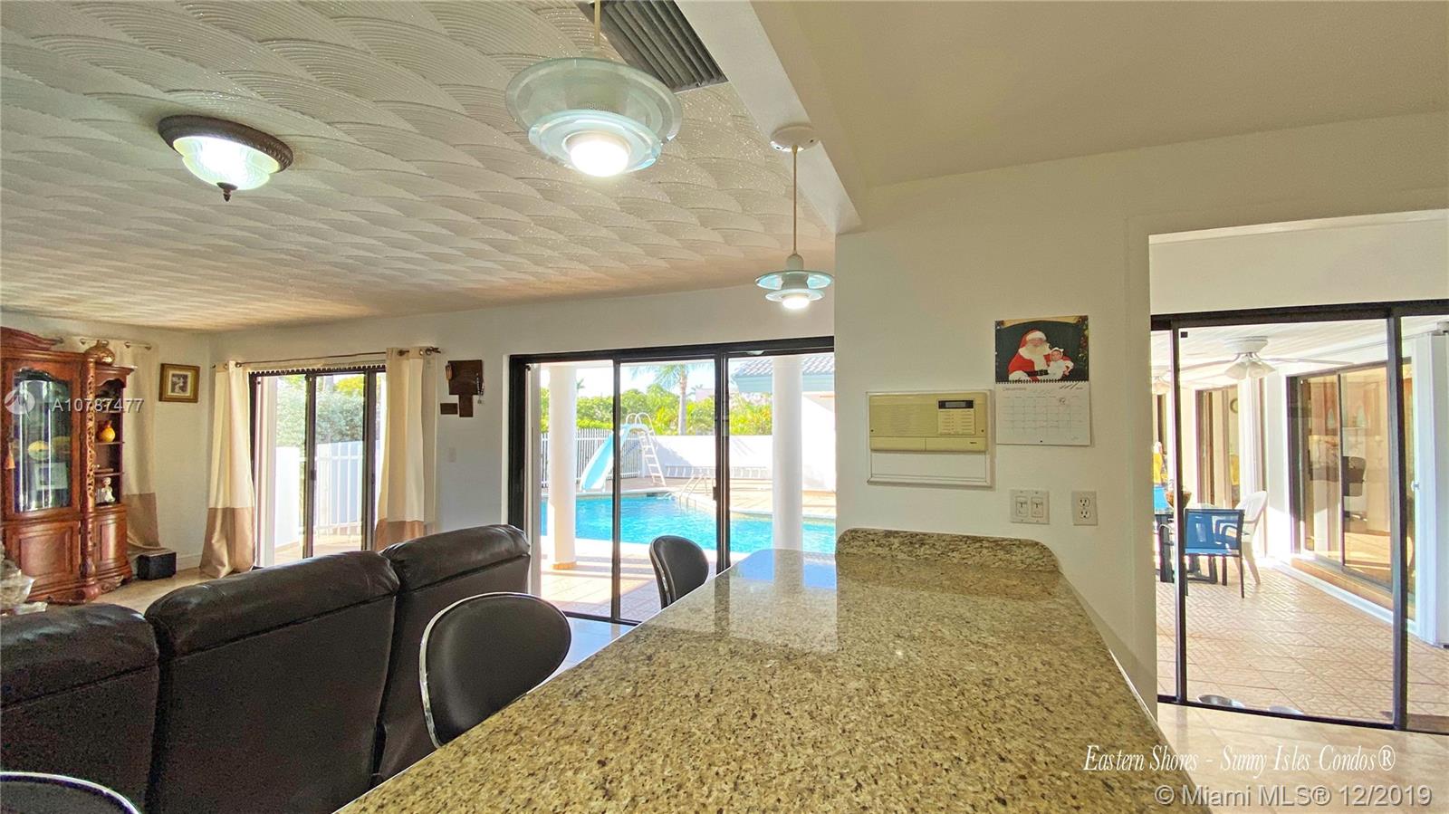 Best priced, two stories waterfront home located in the gated community of Eastern Shores. Three bedrooms, two baths upstairs, and one bedroom one bath on the ground level; large home with 3,227 SF offer 80 Ft of water frontage, with no fixed bridges to the ocean. Travertine floors throughout the living areas, & hardwood floors in the bedrooms upstairs. Kitchen with stainless steel appliances, and granite countertops. U shape floor plan with covered patio area overlooking the pool perfect for entertaining family and friends. The roof was replaced in 2019, a brand-new driveway with plenty of parking for multiple vehicles, double garage. Longtime owner is ready to move, prime location property ready for a complete renovation to build your waterfront dream home. Walking distance to the beach.