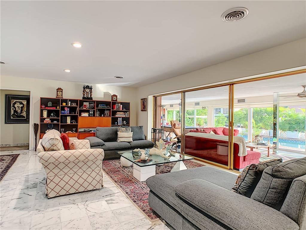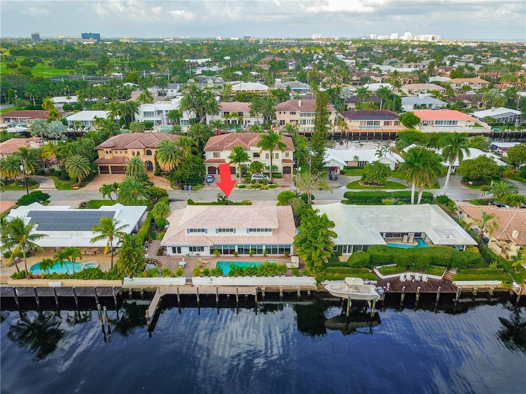 Newly Priced. This Coral Ridge Country Club Estates home has it all -- square footage in excess of 3500, five bedrooms, three bathrooms, two half bathrooms, a large 10000 square foot lot, 100 feet of deep water canal frontage six lots from the intracoastal! The pool-front family room features a wall of glass looking across the pool and pool deck to the your private dock. High ceilings take full advantage of the abundant natural light, creating an airiness square footage alone can't give. There is a 50 foot dock for parking your boat in the back and a circular driveway for parking up to ten cars in front. The first floor is open and perfect for entertaining by the pool, or for just living the elegant lifestyle. Information pulled from tax roll believed to be correct but not warranted