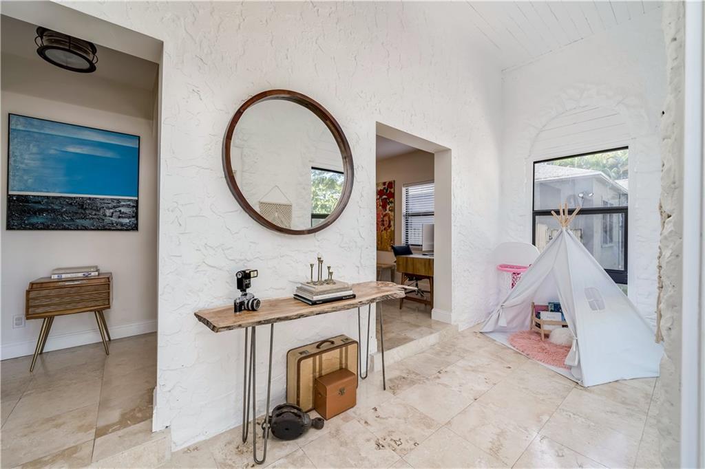 Stunning Spanish inspired home in Croissant Park. Located just minutes from downtown Fort Lauderdale, Las Olas, airport, and Fort Lauderdale Beach. This home has been completely updated, & is 100% move in ready! 10' ceilings, marble floors, impact windows & doors, newer roof & newer central A/C, tankless hot water, new shaker style cabinets with quartz counter tops & stainless steel appliances in the kitchen. Completely updated bathroom w/ glass enclosed walk in shower. Large bedrooms w/ custom built-in closets. One of a kind Spanish style architecture, huge private fenced in yard w/ separate storage building & plenty of room for your resort style pool. This property is zoned for residential & office! Don't miss out on this amazing home!!
