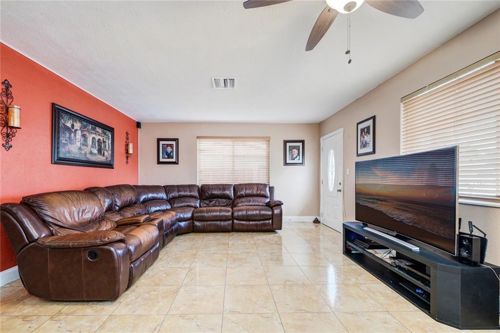 Beautiful 3/1 Single Story House located in highly sought after area with EZ access to major highways, Shopping, Hospitals, and Parks. The interior is updated to include a newer A/C unit, gas water heater. Updated Kitchen with new counter tops and new cabinets. Updated Bathroom. New Appliances. All windows impact resistant. NO HOA Dues! Enormous back yard, completely fenced with fruit trees. This home is in the perfect location, that is warm and welcoming.
