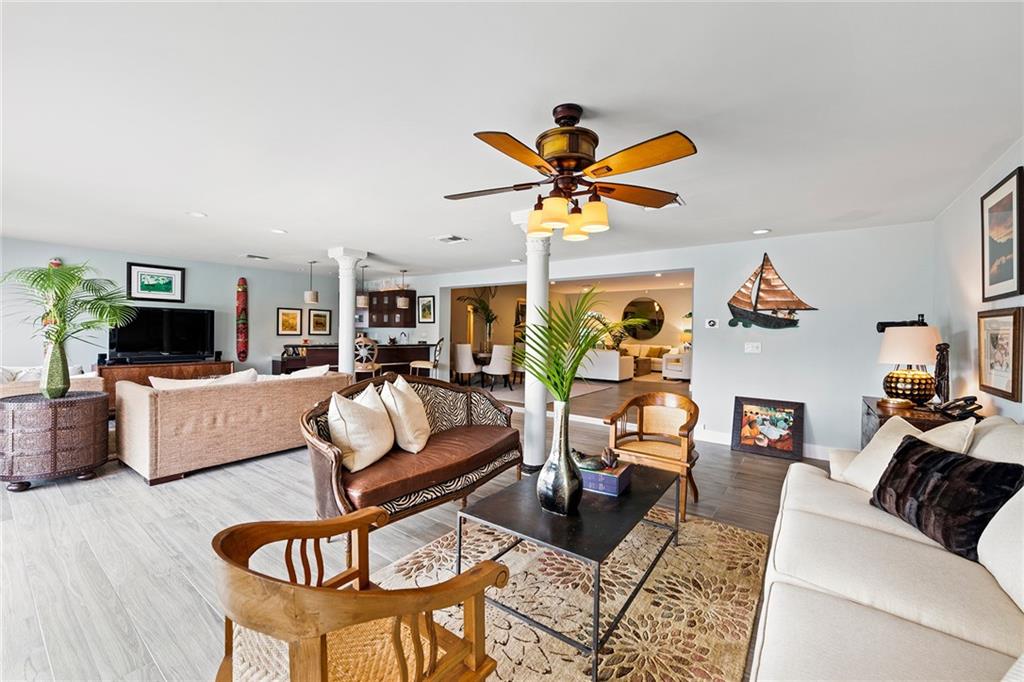 "Villa Palmas" is a secluded, tropical paradise estate home situated on an 18,607 SF point lot in the enviable exclusive island enclave of 30 waterfront homes just steps from Downtown Fort Lauderdale and the fashionable Las Olas shopping and entertainment district. Enjoy resort living at it's finest in this one story 4 BR/4.5BA open floor plan home - truly designed for entertaining!! With 2 master suites, gracious living areas, vaulted ceilings, chef's kitchen, fireplace and an amazing heated pool and patio area which has two docks w/270 total linear feet. Extensively upgraded in 2017 with new flooring, kitchen w/Greenfield custom cabinetry and top of the line appliances, LED lighting throughout, whole house gas generator and 2 car garage. You must see this home!!
