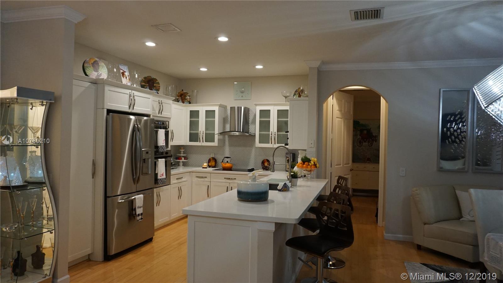 Best location in Weston, walking distance to Town Center where you can have access to Publix, Walgreens, Restaurants, Starbucks, Beauty Salons, etc...... First floor unit with 2 car garage and driveway fitted for 2 more cars and plenty of guest parking. Property features a remodeled white kitchen with SS Appliances and Quartz countertops. Wood floors throughout the unit and screened patio for outdoor comfort.