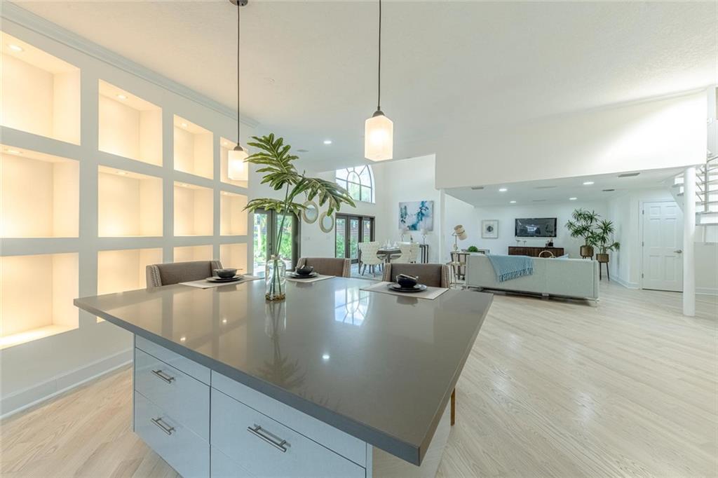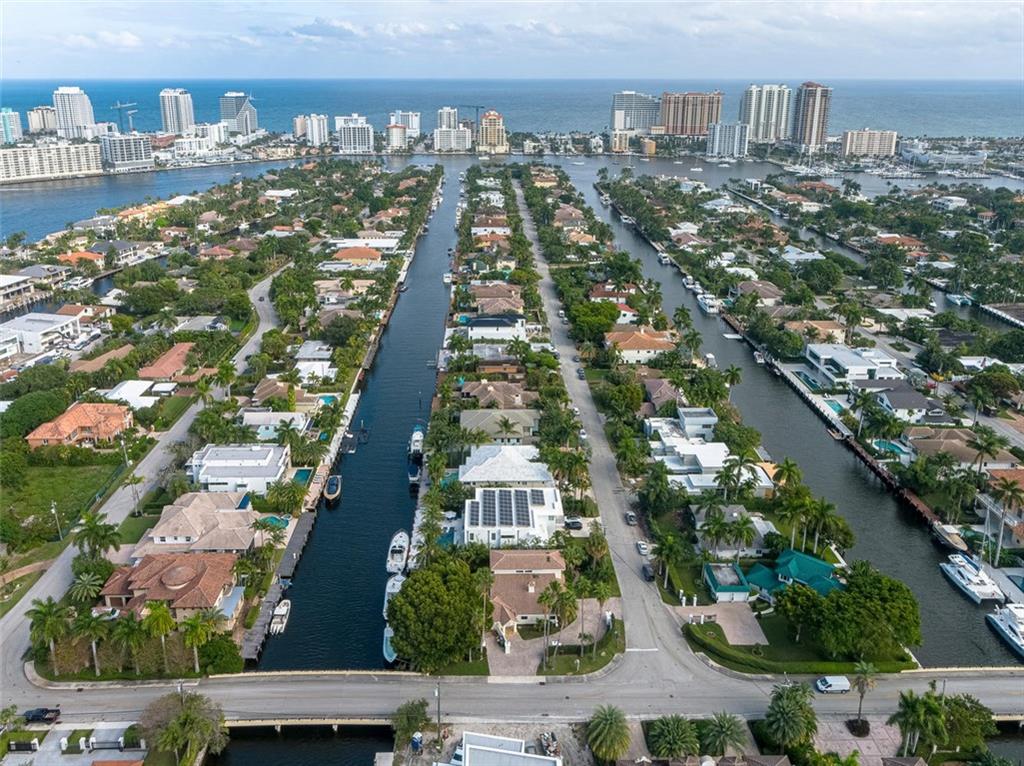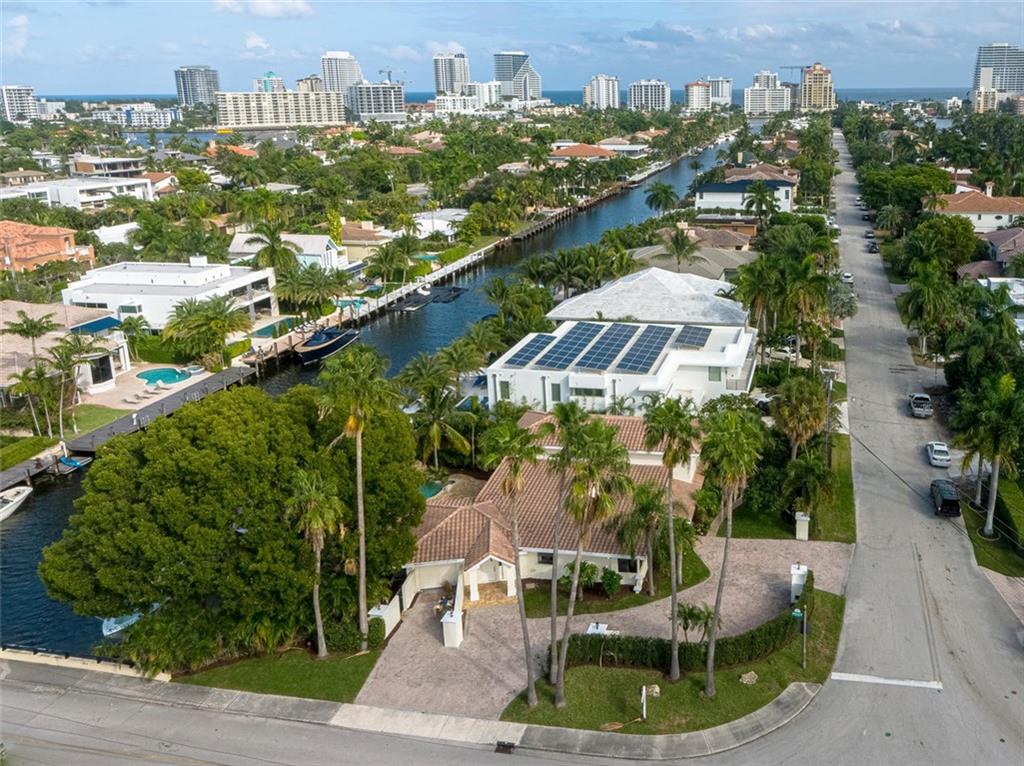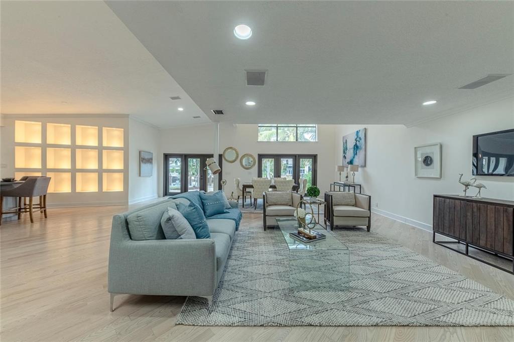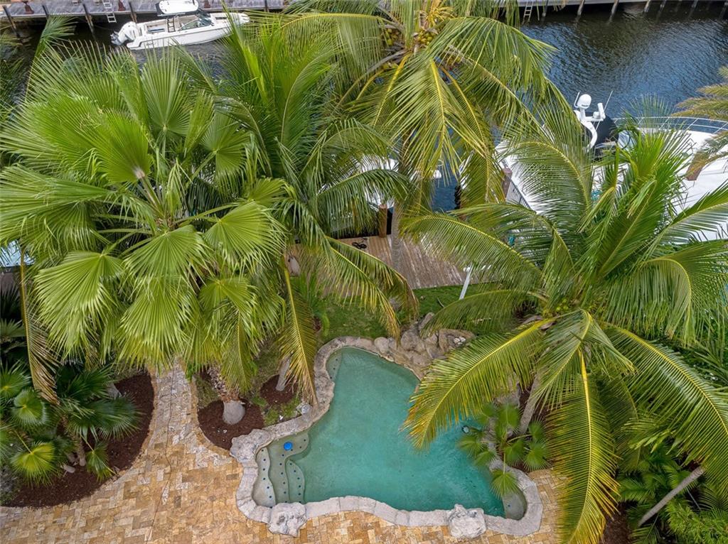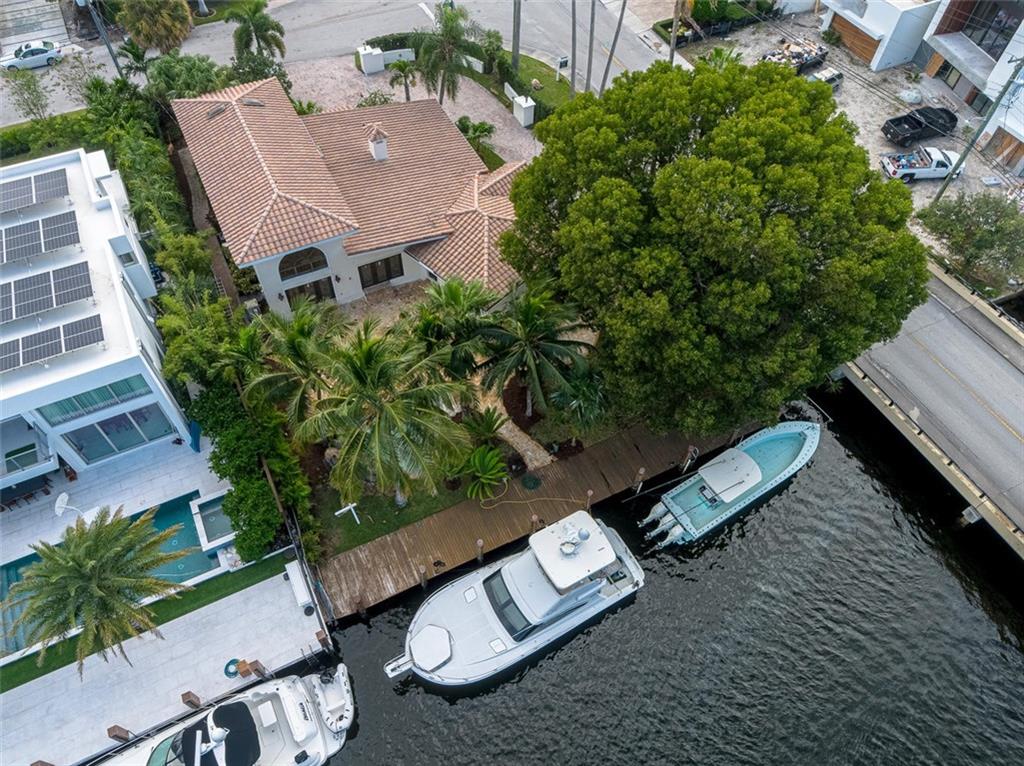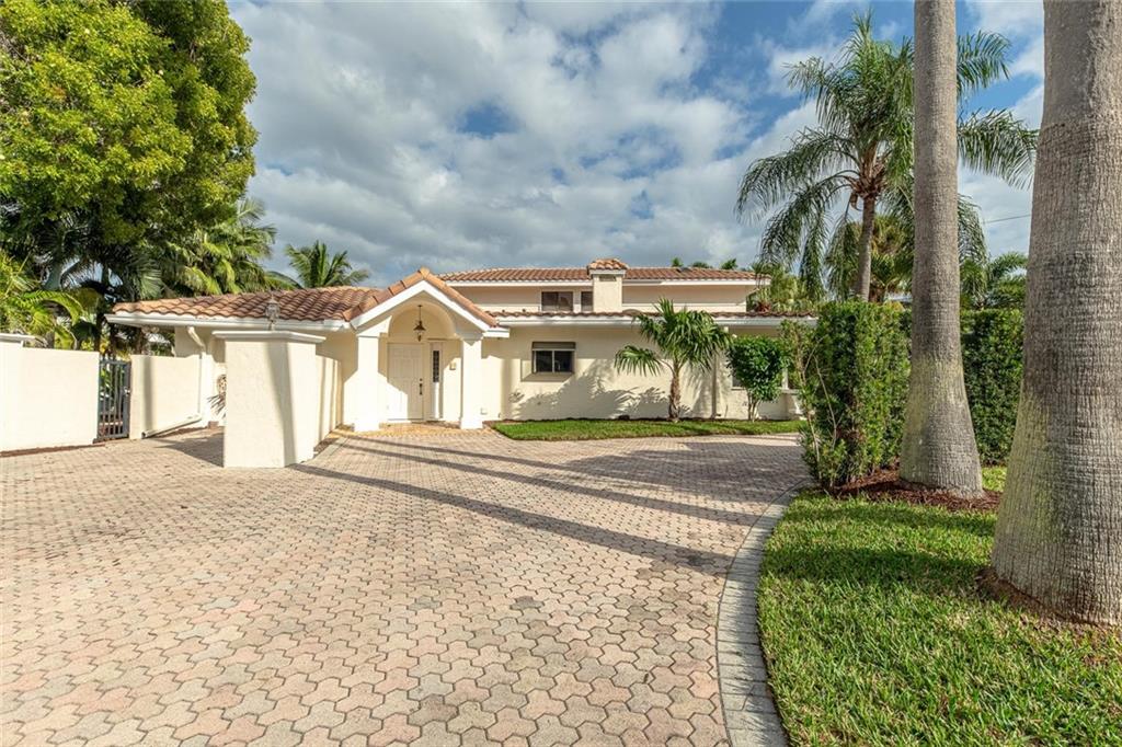 High and Dry on 85 feet of no-fixed-bridge water in Seven Isles, Las Olas. Renovated in 2019 including a new kitchen, re-finished floors and new California Doors opening to the pool and water. One and a half stories with bright open interiors and high ceilings. Live in it for a few years and decide what new house to build on this beautiful site. The kitchen features a quartz top dining island, black-stainless appliances including a family-hub "smart" fridge and added lighting. There is a one and a half car garage, a circular drive and dockage for up to 65 feet of boat. The waterfall pool is surrounded by a vast lawn and patio area level with the dock. Seven Isles is a self contained enclave favored for its higher elevation and neighborhood security patrol.