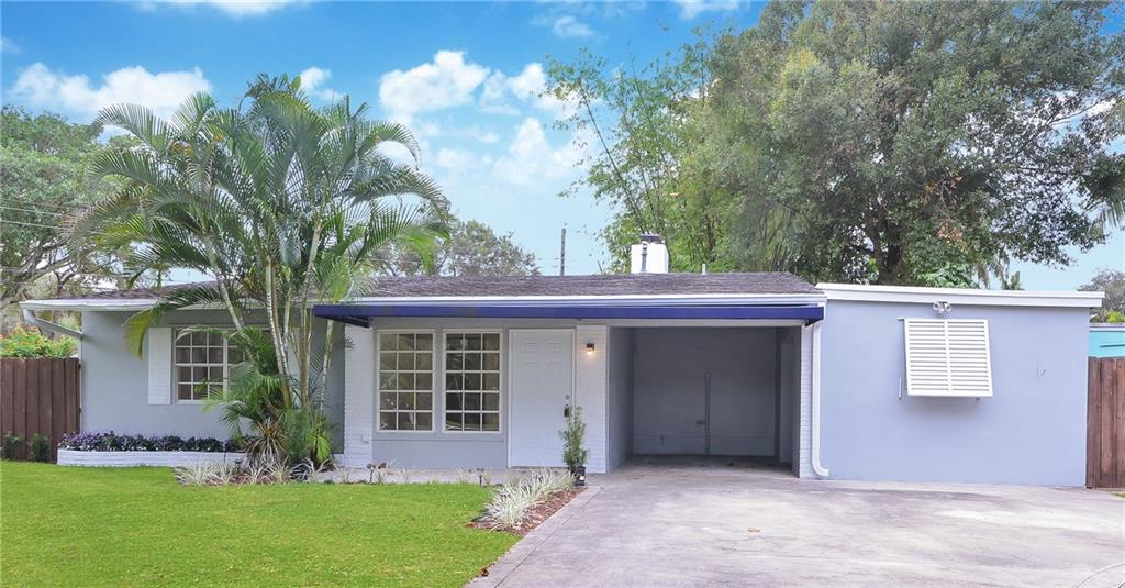 Incredible Shady Banks corner lot home is available for the first time in 14 years. This 2/1 property has been updated with a NEW ROOF, ELECTRICAL SERVICE, and APPLIANCES. A freshly painted interior / interior, the bonus front Florida room and workshop / studio attached to the carport / garage makes this property unique. New privacy fence, sod and auto sprinkler in the large back yard, provides ample room for a pool or addition on the 8266 sqft lot. Concrete pad off the back is ideal for a screen patio, second bathroom addition or BBQ area and 2 large mango and rare shaving brush trees frame the property off the street. Full laundry room off kitchen with a propane dryer, hotwater heater and a working fireplace. Motivated seller AS IS contract please, perfect for the investor.