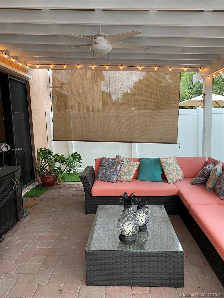 Great opportunity. Beautiful and cozy townhouse in pristine conditions, 3 bd 2.5 bth, 1 car garage. Beautiful upgraded laminate floors throughout the house with flush stairnose steps. SS appliances. Amazing patio for entertainment with pavers, fake grass, Pergola with electricity, ceiling fan, all done with permits. Spacious bedrooms, walking closets, W/D conveniently upstairs. Gated community, amazing Clubhouse with resort pool, gym and playgrounds. Close to shopping centers, highways and great schools. Don't miss this opportunity!!! Curtains are not par of the sale
