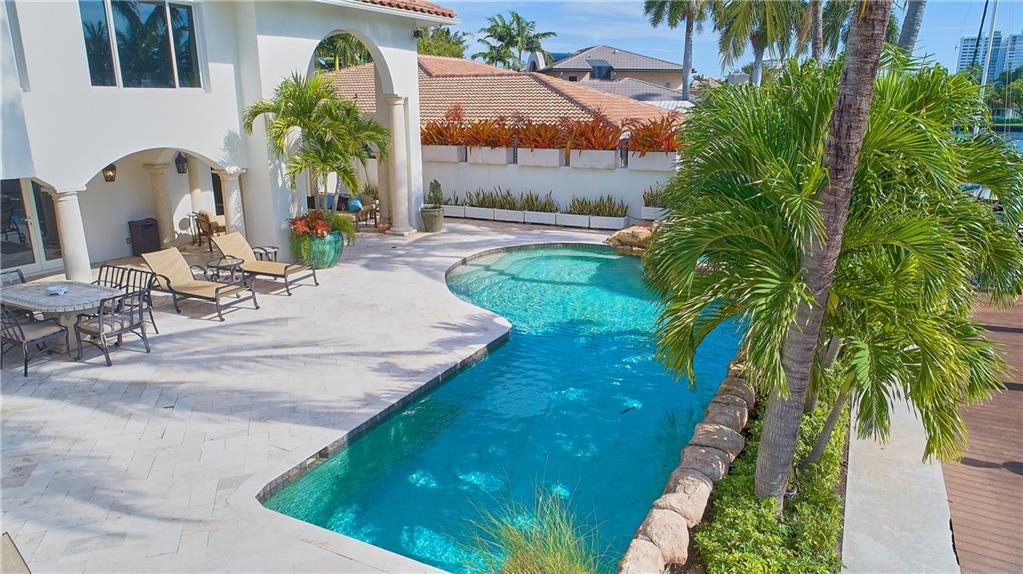 Magnificent intercoastal home w/ incredible design for entertaining!2 houses in from intercoastal;2story Mediterranean design with new S-tile main and flat roof 2014;85 feet of waterfront dock;5 large bedrooms W/ 5.5 baths;His/Hers Master bathroom; add'l living area upstairs w/ large open den plus a HUGE game room.Custom bar area for great entertaining;Relaxing outdoor living space;pool/spa along the recently updated long-lasting composite dock; Nearly 5,500 sq ft of living area built for entertaining;Very close to local private schools, coral ridge country club, fine shopping/dining,las olas,hospital district; Plumbing changed to PVC;new garage door;roll down shutters,panel shutters & some impact;brick paver circular driveway;extensive landscaping, 24 hour notice for showing