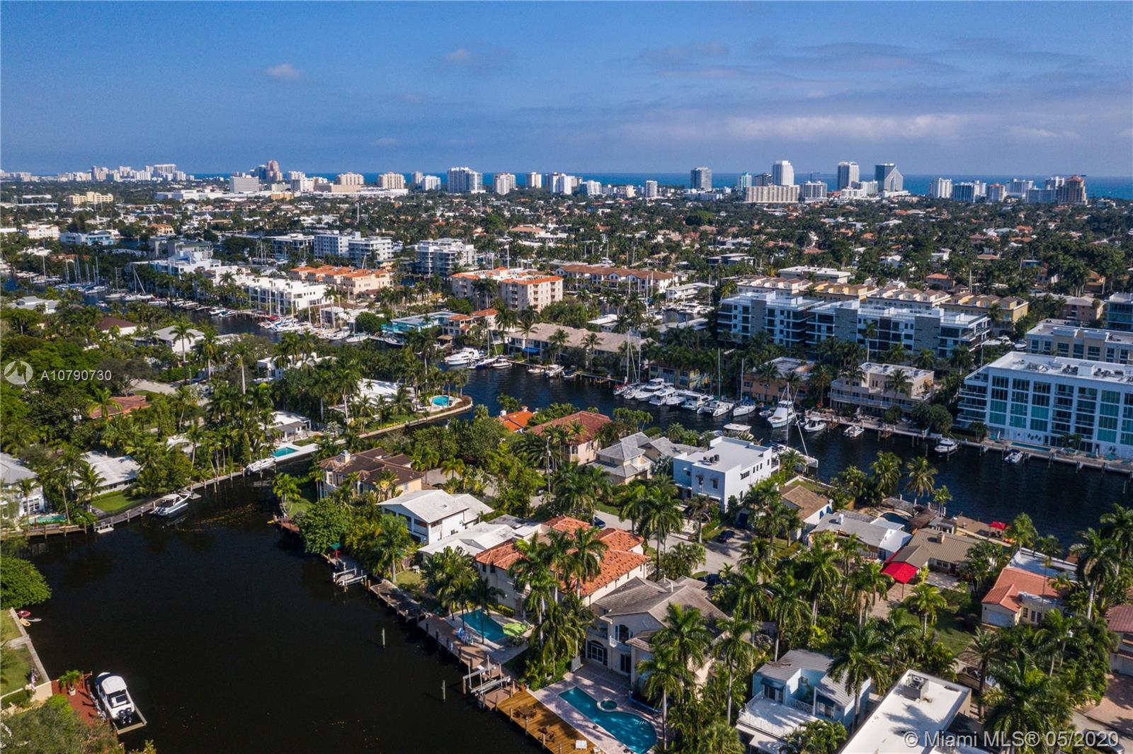 Las Olas - Navarro Isle - Downtown Fort Lauderdale, Waterfront Home.. This 2005 home is so well maintained that it looks new. The neutral open floor plan is great for entertaining or everyday living. FEATURES: Chef Kitchen w/ only the best appliances & ctr island w/ice maker, Walk-in Pantry, Volume Ceilings, Large Impact windows & Doors. Family Room, Living Room, Dining Rm, Brkft Room, Fireplace, Den(could be 5th bedroom), Elevator, Theatre room; 5 very large bedrooms upper level with walk-in closets, morning kitchens, open seating area, Security Sys., 3 level to roof deck, 2018 Roof; 4 zone A/C's 2015; Outside covered lanai retractable awning, with outdoor kitchen, Cabana Bath w/shower, sculptured yard, extra wide dock, new seawall 2005, boat lift all overlooking park across wide canal.