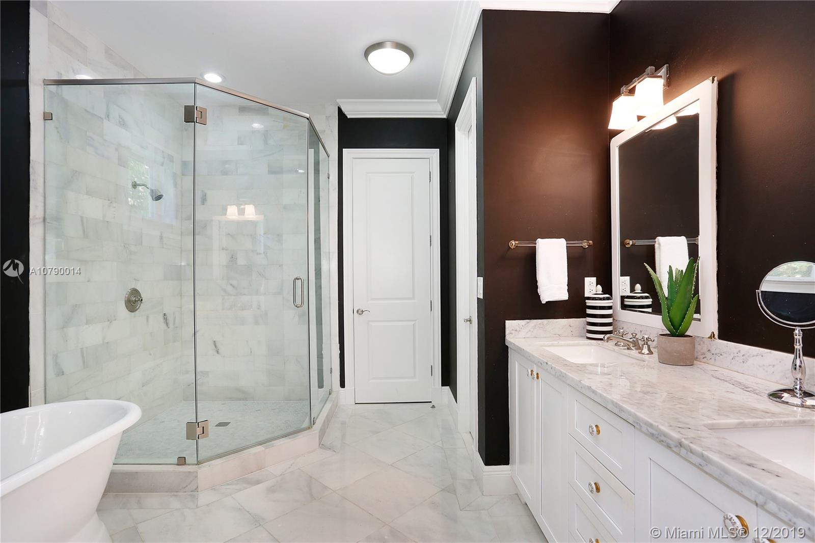 This well-located, plantation style property on a corner lot in the South Grove breaks the mold. Clean, contemporary and magazine quality with chic, designer finishes and styling. Custom woodwork, high ceilings, magnificent fixtures, and incredible attention to detail indoors and out. A brick driveway, front porch, and blooming bougainvillea beckon you inside. Welcome guests with an oversized dining room and open kitchen with large, adjacent family room. Your master suite features a stand-alone soaking tub and generous walk-in closet. Relax on the wraparound covered terrace or plunge into the heated/cooled pool. Make the most of the Coconut Grove lifestyle by taking a short walk to Merrie Christmas Park or enjoying nearby shopping, restaurants, and entertainment!!