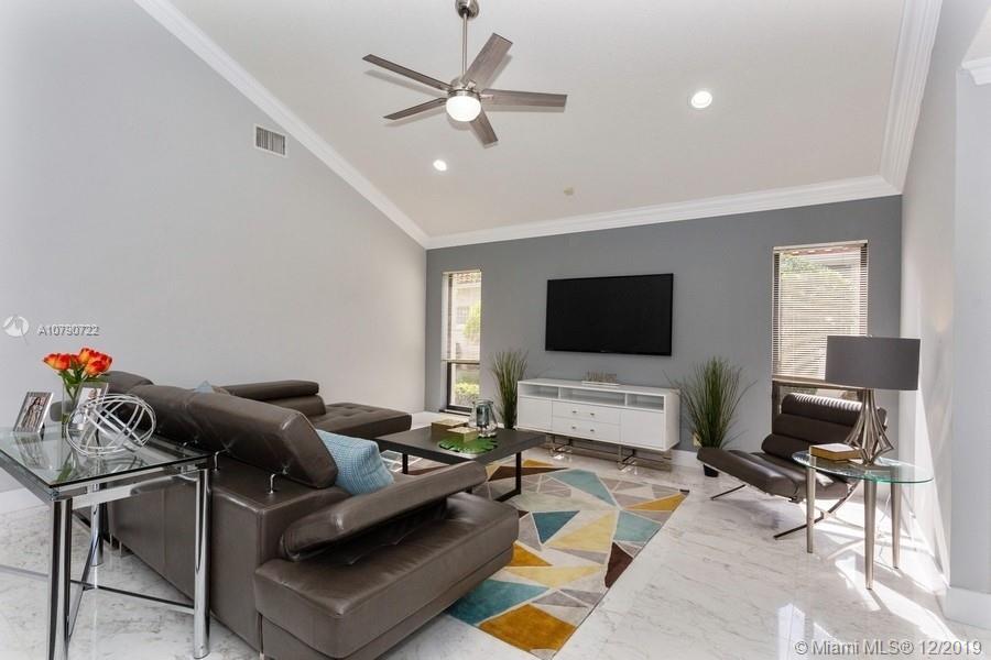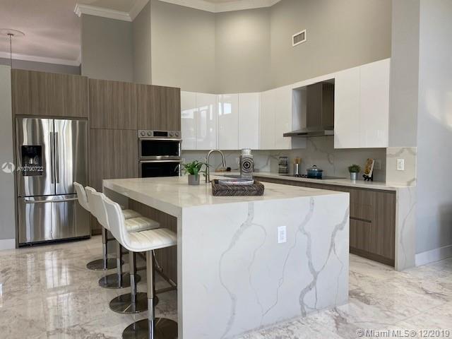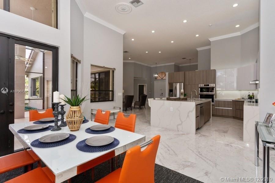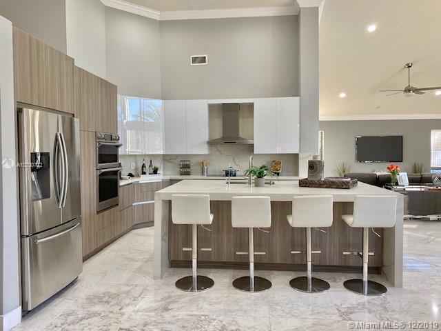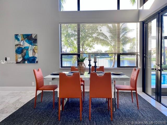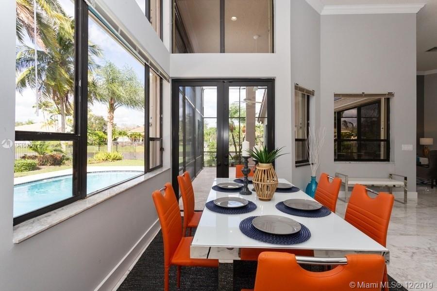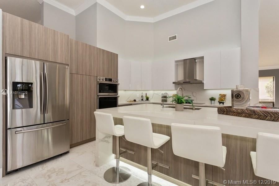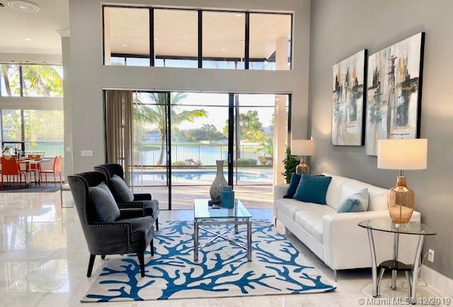 Take in the panoramic lake views from this beautifully staged and incredibly renovated in contemporary style with white Grecian marble flooring throughout entire home. European kitchen with 16x9 center island with quartz waterfall countertop. All top of the line Stainless Steel appliances including double ovens All bathrooms remodeled in contemporary style. White vessel sink in master bath plus sitting room. LED lights throughout. Sits on an oversized half acre corner lot with wrapping lake views. Soaring ceilings with flat contemporary trim. Screened patio with fully fenced pool area. Newer roof 2007. Cabana bath to pool. Full accordion protection.