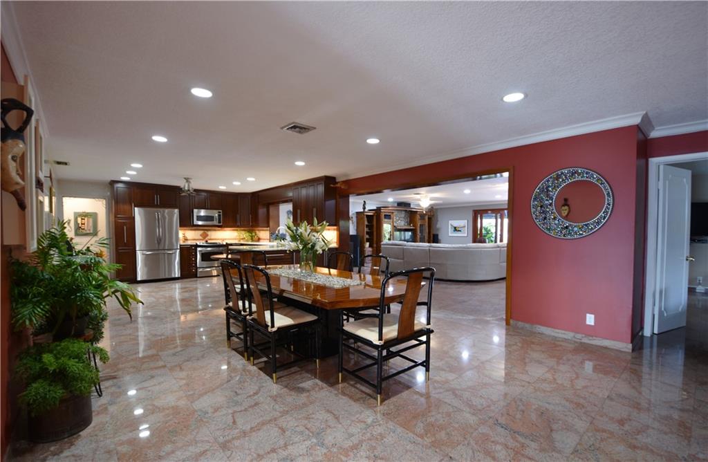 Beautiful, ranch style home in Hollywood Hills with granite floors throughout. Open floor plan perfect for entertaining. Large kitchen open to dining room and over sized family room. Formal living room, library + office! Attached mother-in-law suite with separate side entrance. The huge kitchen has been updated with granite counter tops and stainless steel appliances. Custom built in bookcases in the library with recessed lighting in all main rooms. Separate laundry room, 2 car garage in rear and plenty of parking in front circular driveway! All Impact windows & doors, newer metal roof! Private large walled in back yard with pool and built in barbecue perfect for kids and entertaining! Lush landscaping and curb appeal makes this HOUSE a must see!