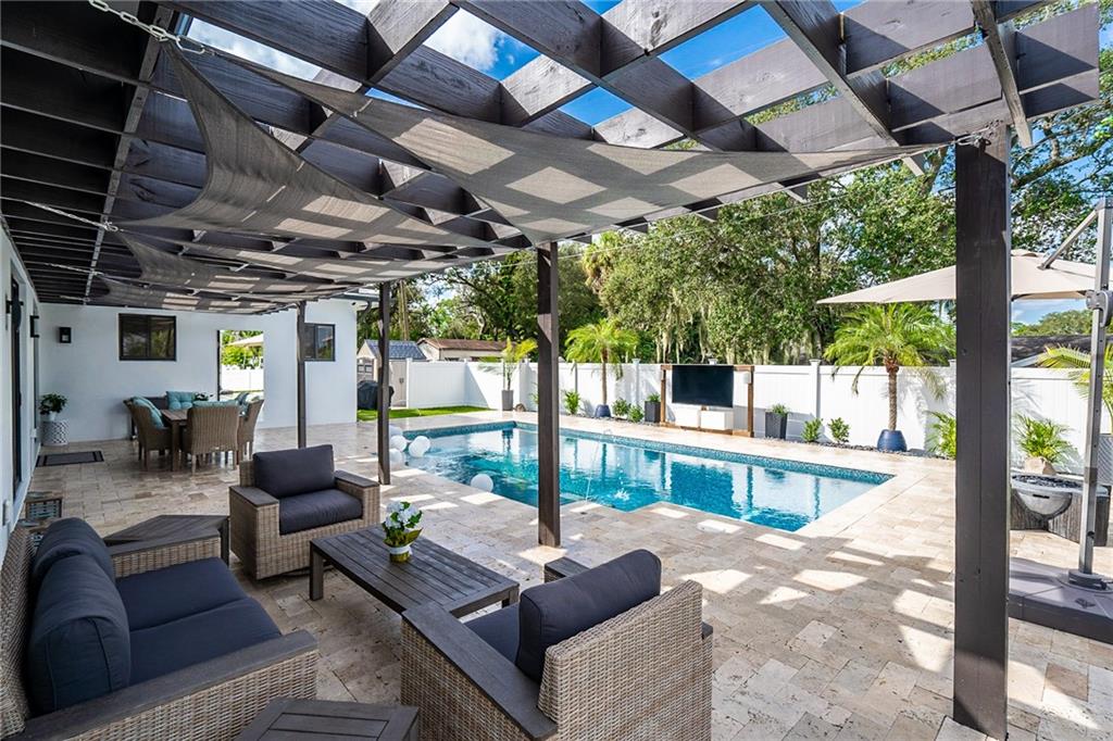 It's Time To Just Live Life Simplistically, Yet Lavishly In This 2018/19 New Build, Improved+ & Ready To Entertain In! Offering Volume Ceilings, Open Designer Kitchen Wood Grain|White Cabinetry|Quartz Countertops. SS Appliances, 8' Interior Doors, 4K Elec. Custom Lighting/ 7Fans, Mstr Walk In/Built Out Closets, Dual Sink|Master EnSuite, Extra Lg Shower|Designer Floor to Ceiling Porcelain Tiled Walls. Custom Mirrors. Faux Wood Blinds. Custom High Tech Surround Sound System Offered In Master-Living Room-Finished Garage & Pool Area! Security Camera System, '19 Dark Blue Salt Pool|Travertine Surround|Deck Jets, Hot Tub*(Neg), Outdoor Entertainment|TV 75" Mounted|Marine Grade Cover* Solar Fence Caps, Pergola|Shade Sails, Fresh Paint Ext/Int*,Granite Waterfall, Rocked Side, Sheds,Gar Ref/Freezer