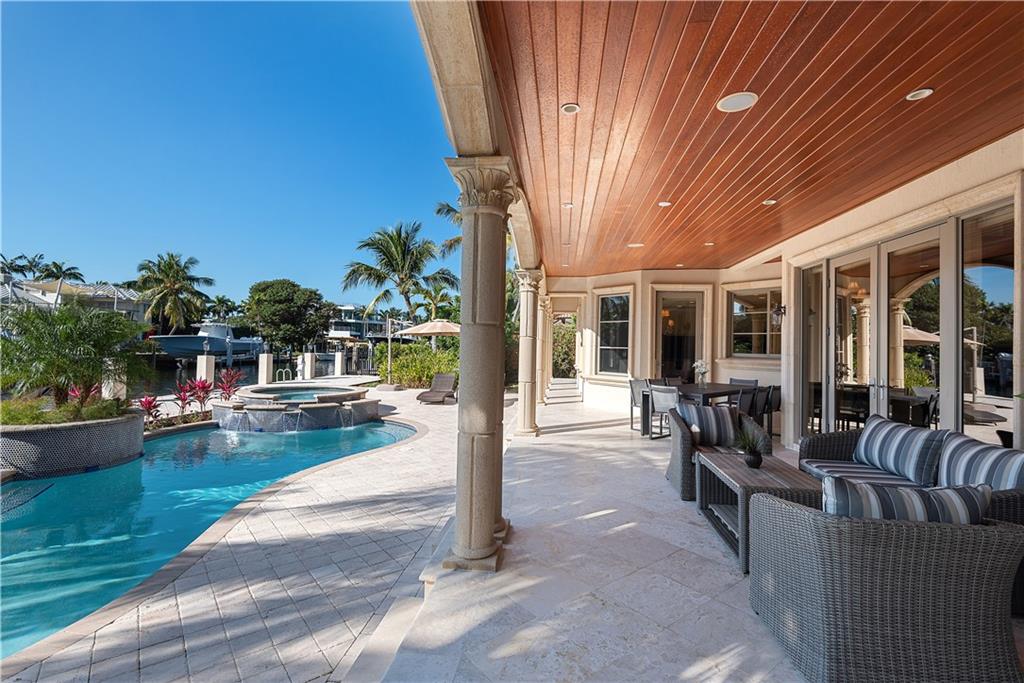 Exceptional Seven Isles estate on a PRIVATE GATED STREET w/a total of 203' of deep water frontage on 2 canals & dockage for multiple yachts. Just 1 house from the Intracoastal point! Features include water views from every bedroom, curved marble & wrought iron staircase, great room w/20' ceilings & magnificent 2-story stone fireplace, master suite w/dual baths, morning bar & sitting room. Theater, gym, elevator. Lutron lighting/smart home system. Perfect for year-round outdoor entertaining w/tumbled marble patio, vast covered area, outdoor summer kitchen & heated pool. Guardhouse at the Seven Isles entrance w/high res camera which records license plates of each vehicle entering & leaving. Walk to the beach, Las Olas dining & shopping!!