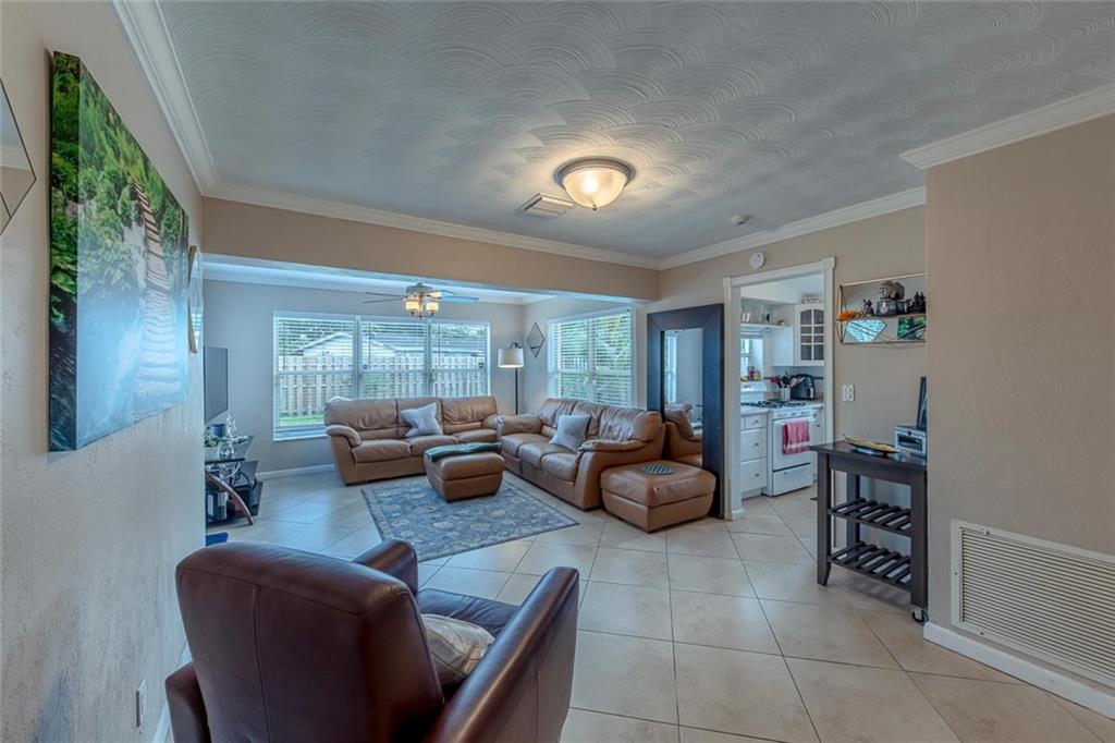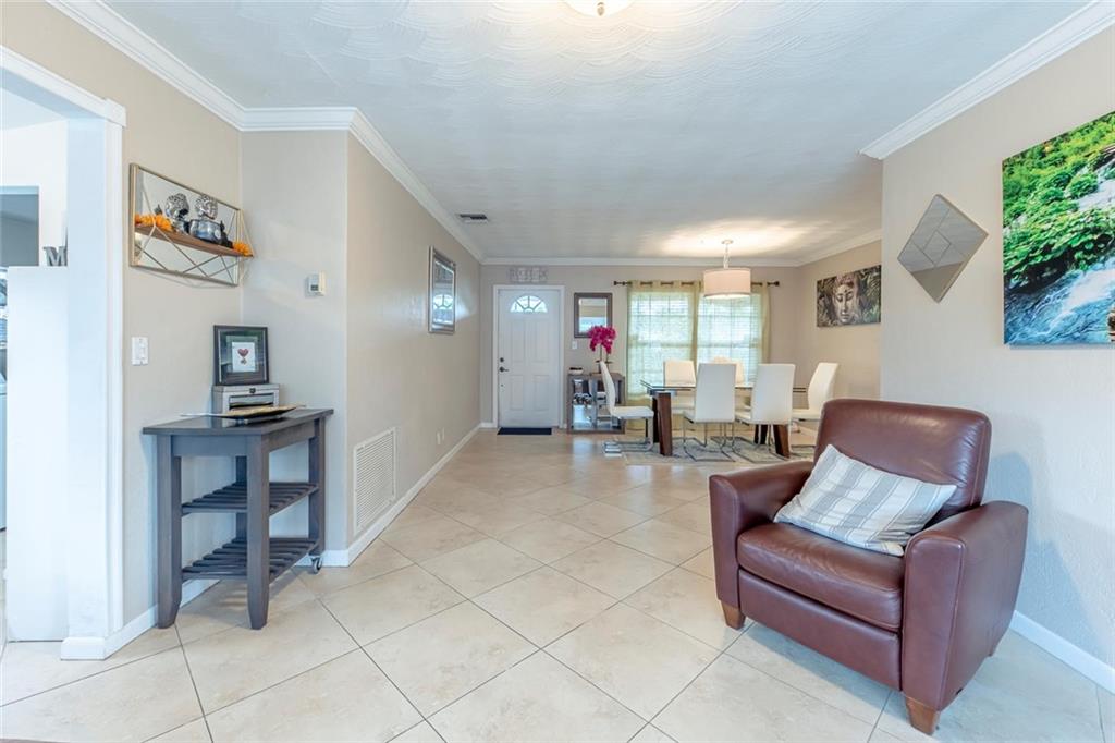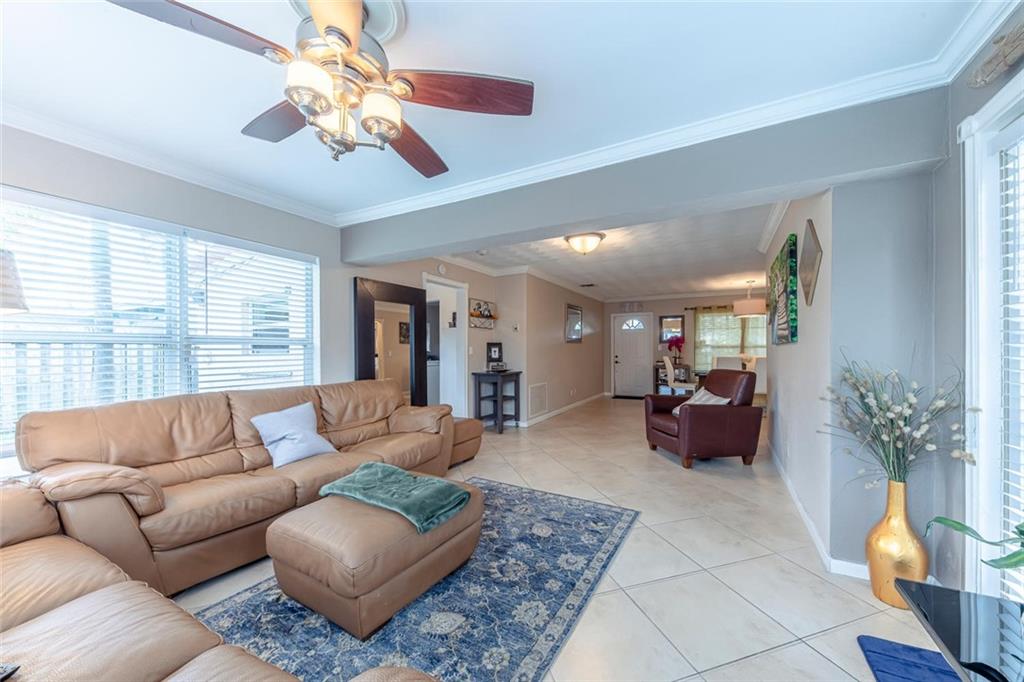 Don’t miss this charming 2/1 Pool home, featuring a bright, spacious, open living/dining/Florida Room with lots of windows to let the light in. Bright white kitchen, with “gas” stove. Large lagoon style pool with newer wood deck, fenced yard, perfect for outdoor entertaining. Nice tile floors throughout the living areas, Laminate wood floors in the bedrooms. Recently painted with warm natural colors, Crown molding, and white wood type blinds on the windows. Indoor laundry room, storage area off the carport, with cute and cozy covered front porch. Barrel S-tile roof. You Must See this Home!