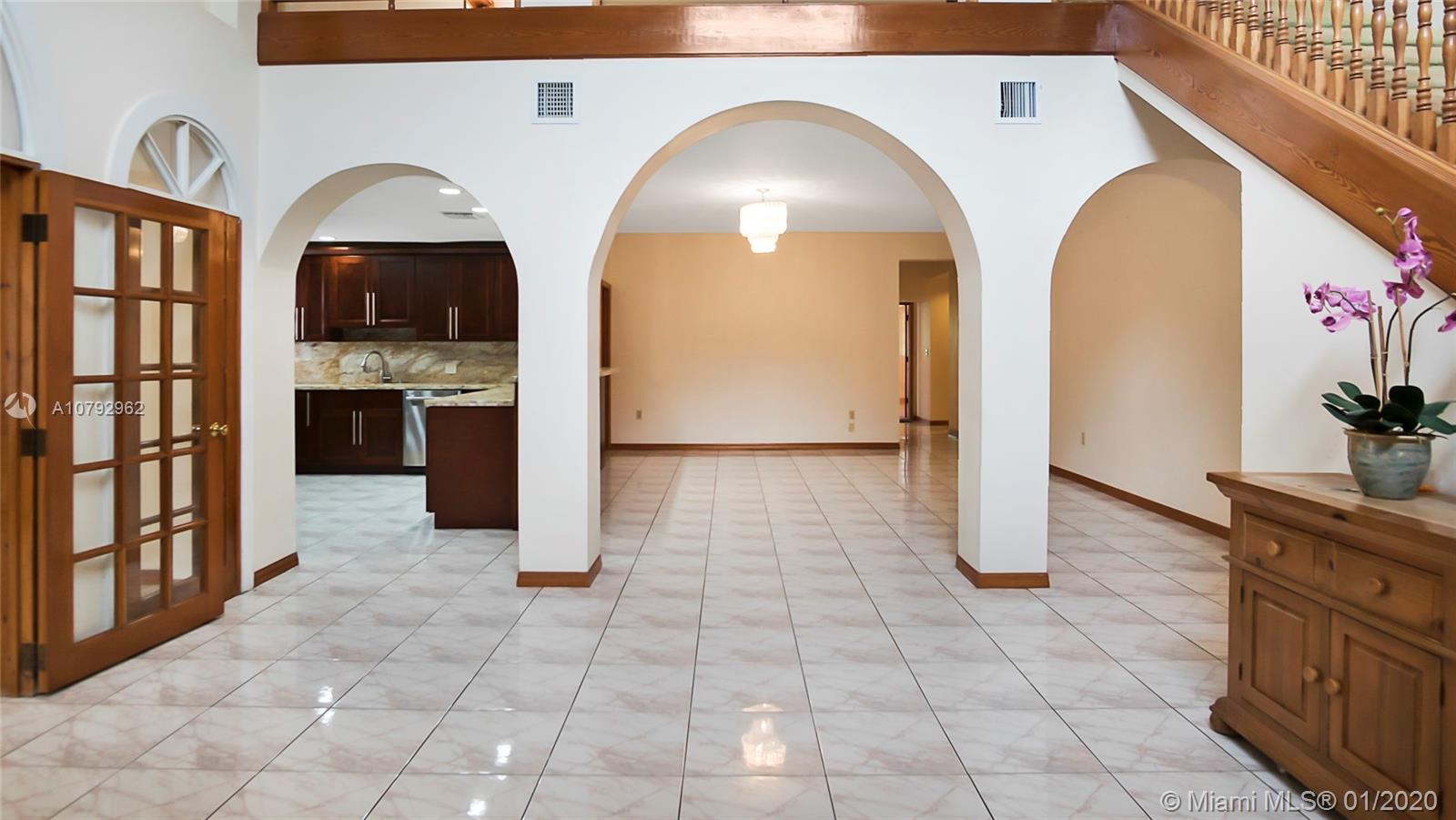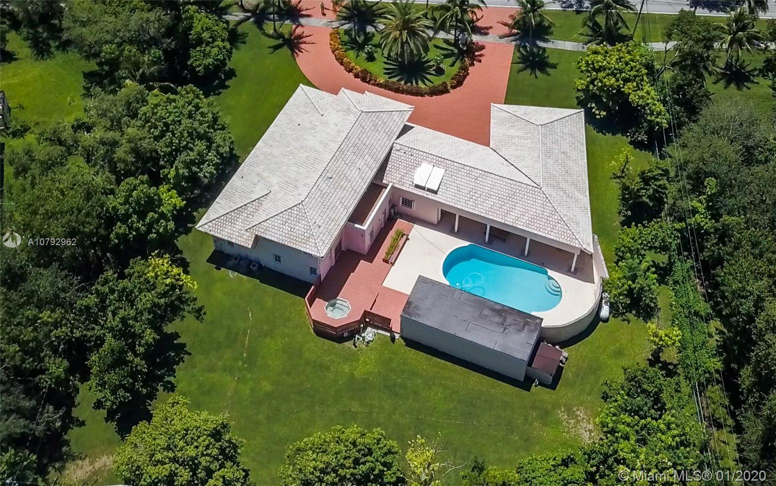 Magnificent 7/5 custom-built home on a builder's acre located in Pinecrest. This picturesque jewel features high ceilings with open spacious layout, tile, carpet, and wood laminate floors throughout. The kitchen is updated with wood cabinets, granite counter tops, stainless steel appliances, and recessed lighting. Enormous family room can be used in a variety of ways. Perfect space for a pool table, wet bar or party room. French doors lead you out to a spectacular private pool, jacuzzi and patio area. Fantastic space to entertain friends and family. The yard is well maintained with over fifty assorted fruit trees with plenty of room to add more. A true tropical oasis, a must see to appreciate.