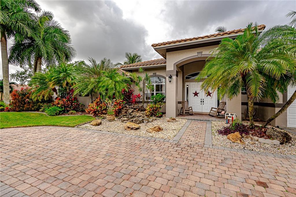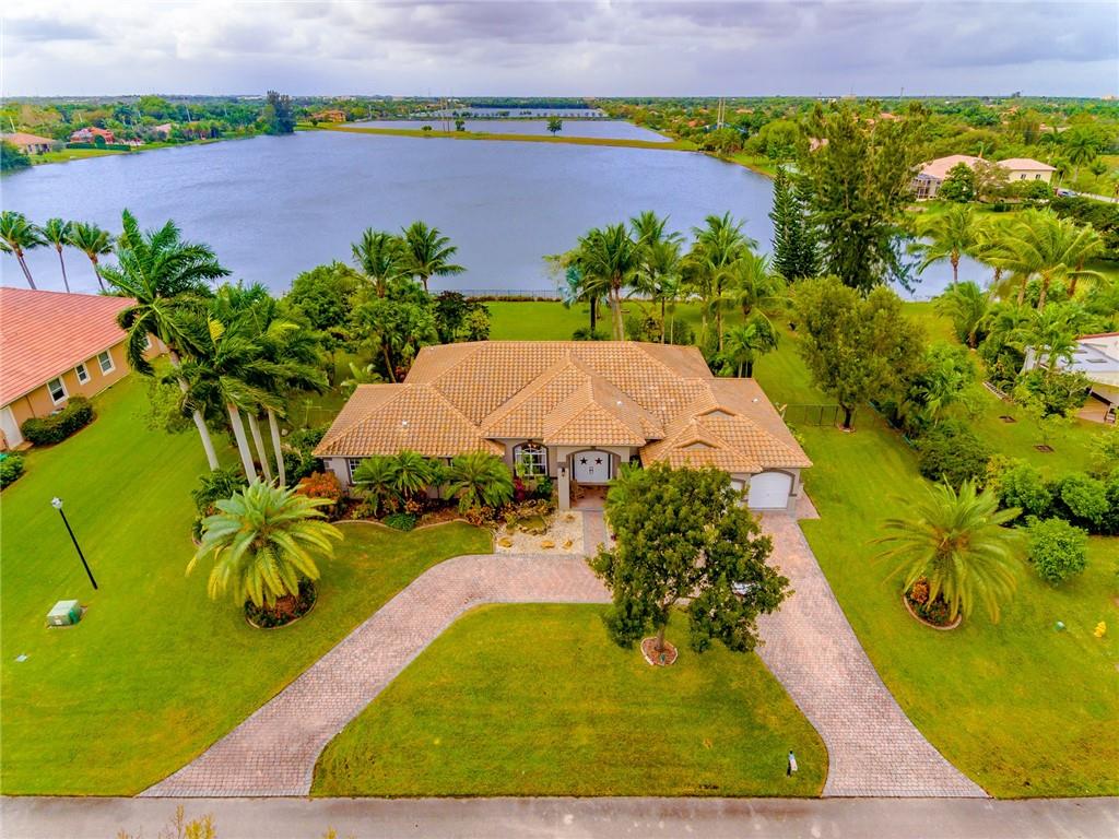 HAVE IT ALL IN THIS AMAZING ONE STORY HOME W/ BREATHTAKING HUGE LAKE VIEWS ON BUILDER'S ACRE! NEW 2017 s-tile roof! CIRCULAR PAVER DRIVEWAY W/ LUSH LANDSCAPING; GOURMET KITCHEN W/ GRANITE COUNTERS, S/S APPLIANCES, BUILT IN MICRO & OVEN, WINE COOLER, CENTER ISLAND W/ BUTCHER BLOCK,LOTS OF CABINET SPACE. LAMINATE FLOORING IN ALL BEDROOMS. NEW SCREEN ENCLOSURE AND ALUMINUM FENCE 2004. LARGE PATIO OVERLOOKING HUGE LAKEFRONT WITH WATERFALL POOL AND FENCED YARD;Very low HOA