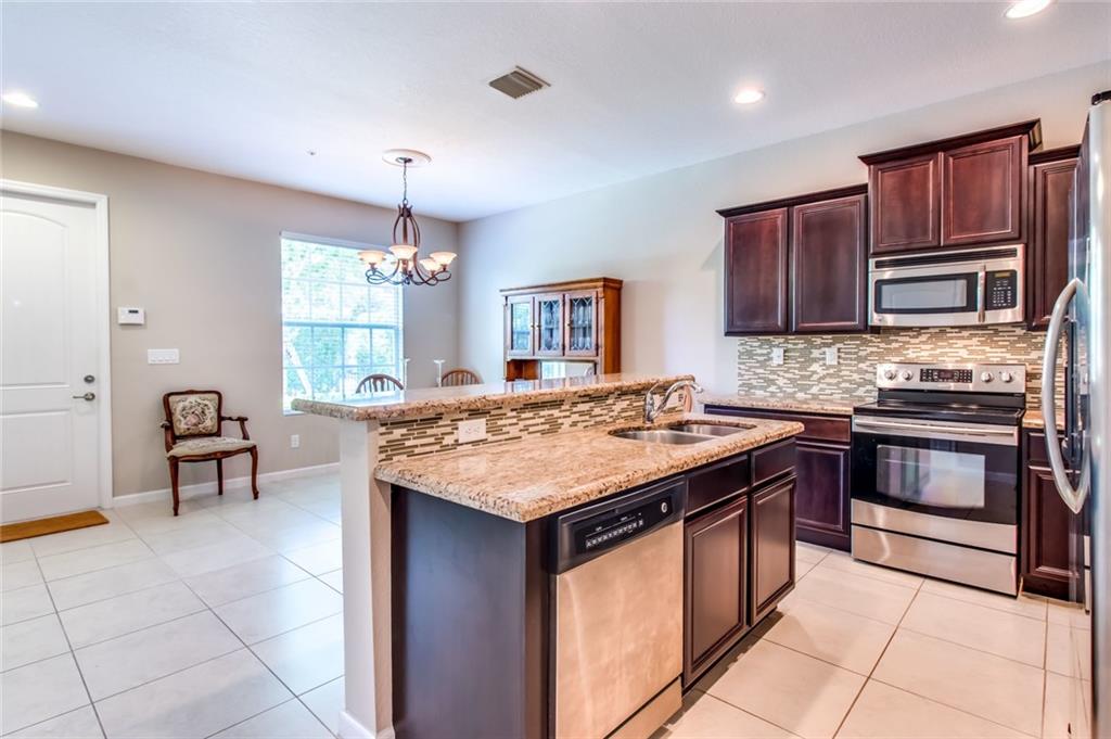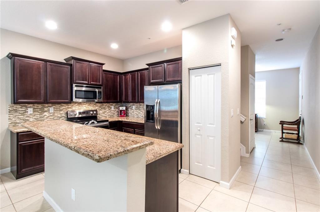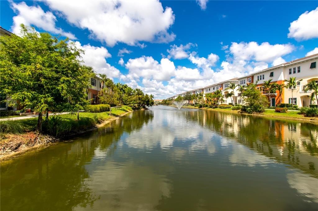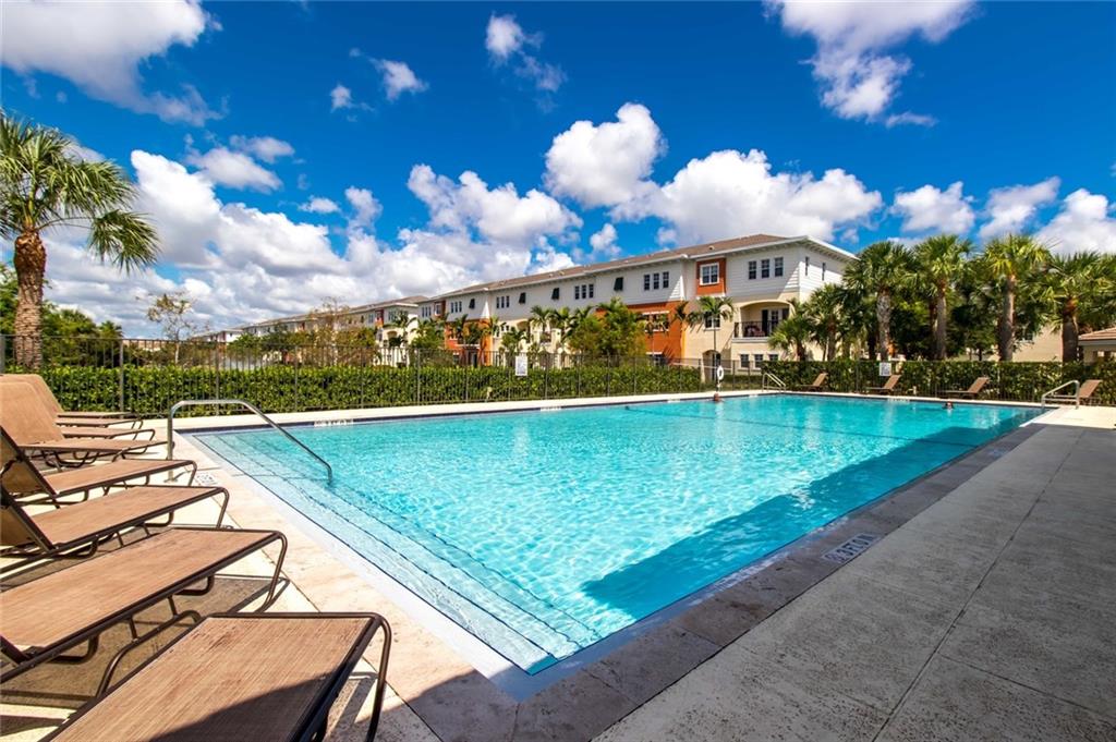 3 Bedroom 2.5 bathroom townhouse with many upgrades. First floor has tiled floors, open floor plan Kitchen with stainless steel appliances, and granite counter tops, breakfast bar, Living room, Dinning room, Den, High ceilings Impact windows. Large Master Bedroom with walk in closet and luxurious on suite bath. Full size washer and dryer on second floor . Resort style community with pool, club house, gym, bike/jog path. Room Dimensions are estimates.