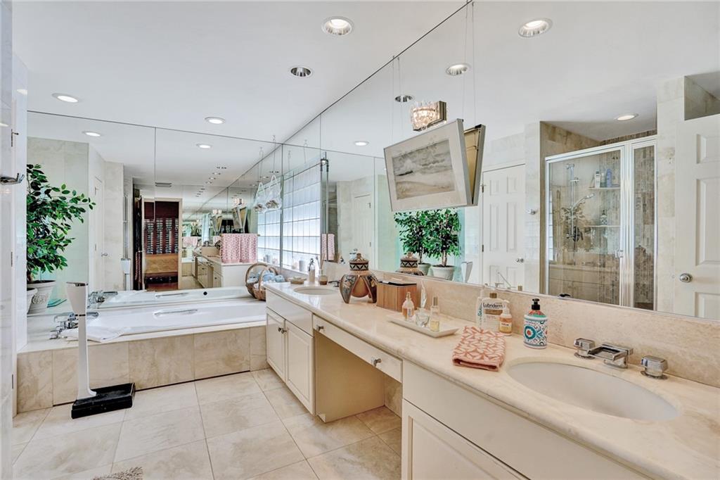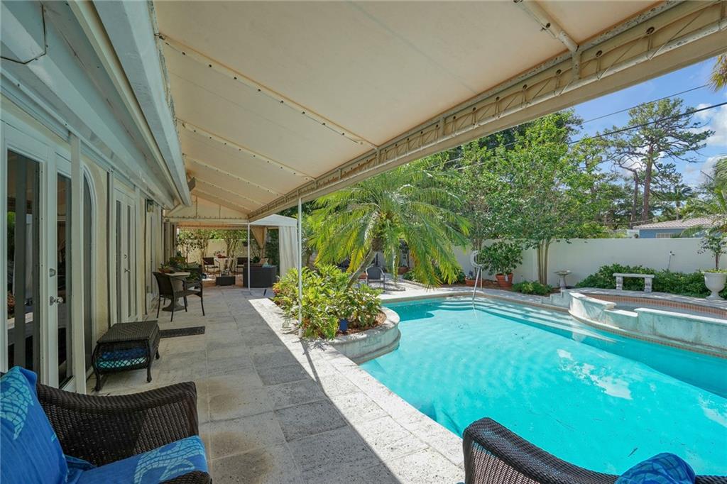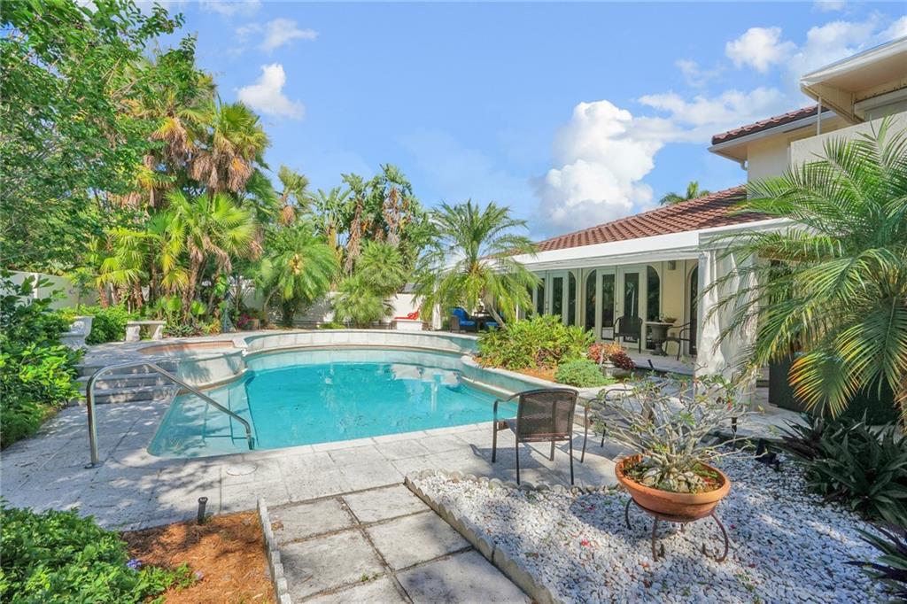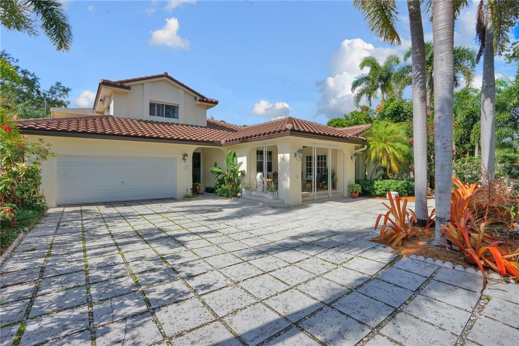 Very large and private Mediterranean style home w/custom gate, brand new roof, new paint, electric hurricane shutters and garage door, w/generator hookup in electric panel, new modern kitchen with large pantry, new bathrooms, gorgeous patio grill kitchen marble floors throughout 2 master bedrooms. upstairs MB is a suite with kitchenette and oversized covered patio for watching sunsets. Every room is spacious and comfortable, grand dining room open to grill room and pool area. Super large pool set in beautiful private garden with lots of seating and bar b que area. Perfect entertaining home.4th room can be bedroom with large closet or child's playroom. Lovely office space in glass room with private patio Everything permitted. Bring your big home customer, must see nearby to everything