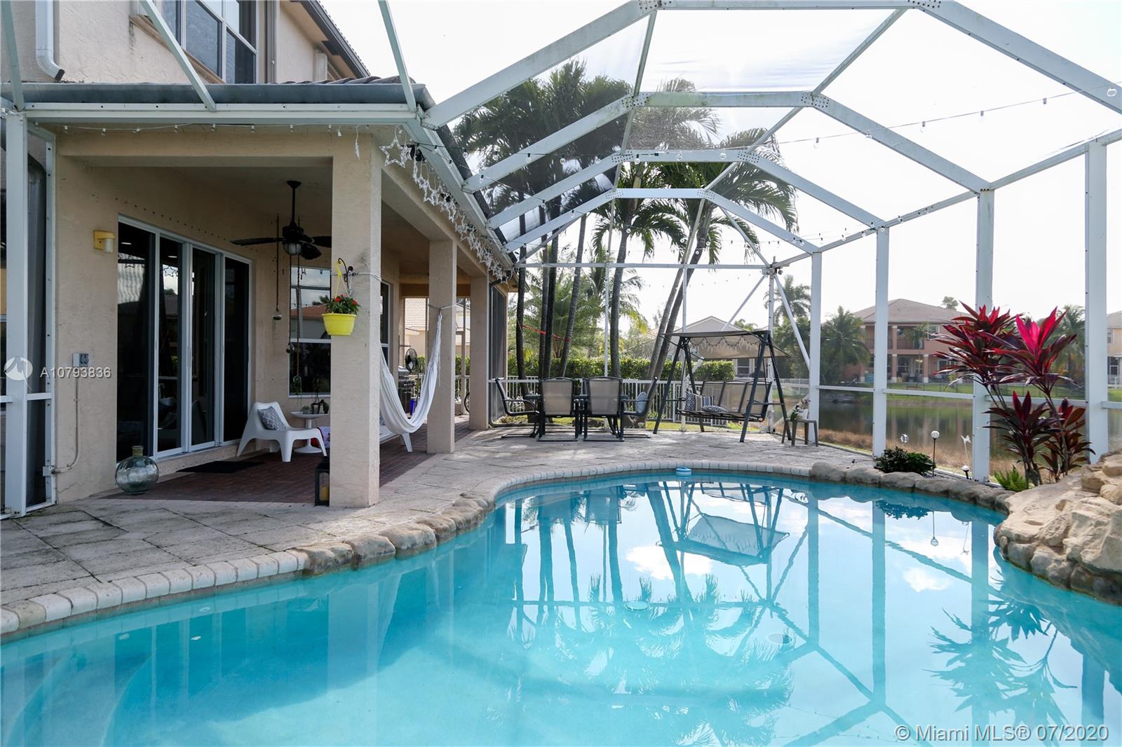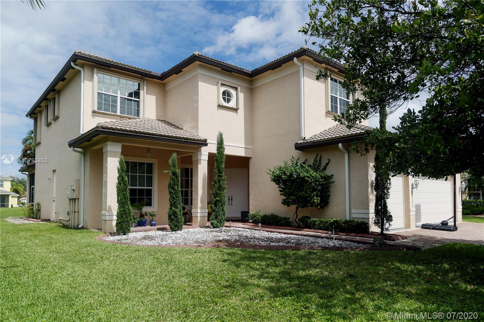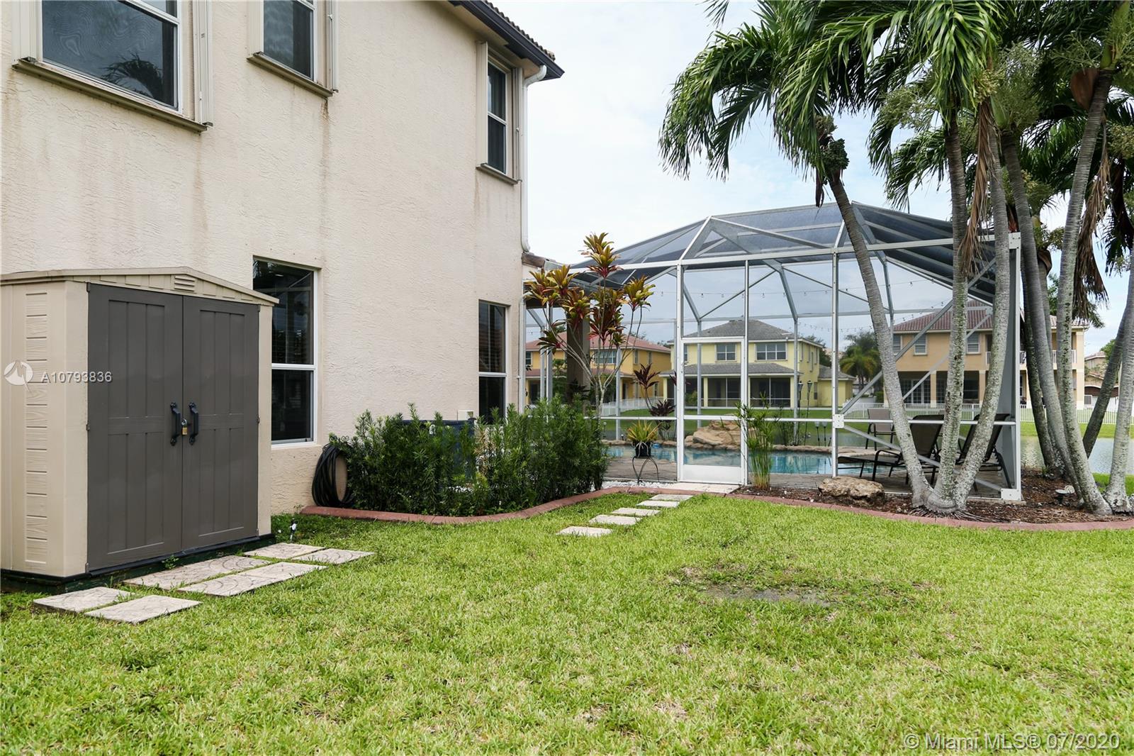 Beautiful House by the Lake, located on a cul-de-sac with a bigger than normal lot in Isles at Sunset Lakes. Owner keeps the property clean and very organized. Screened patio/pool overlooking the lake. Master Bedroom has separate his and hers bathroom. Accordion shutters on all second floor. Dishwasher, refrigerator, washer/dryer and bigger A/C unit were all replaced within the last year. Gutters were replaced by the seller as well. Laundry room is on the second floor. First floor has tile and second floor wood/carpet. Huge Clubhouse overlooking a massive lake. Very good schools within the immediate area. Easy to show as the owner keeps it pristine.