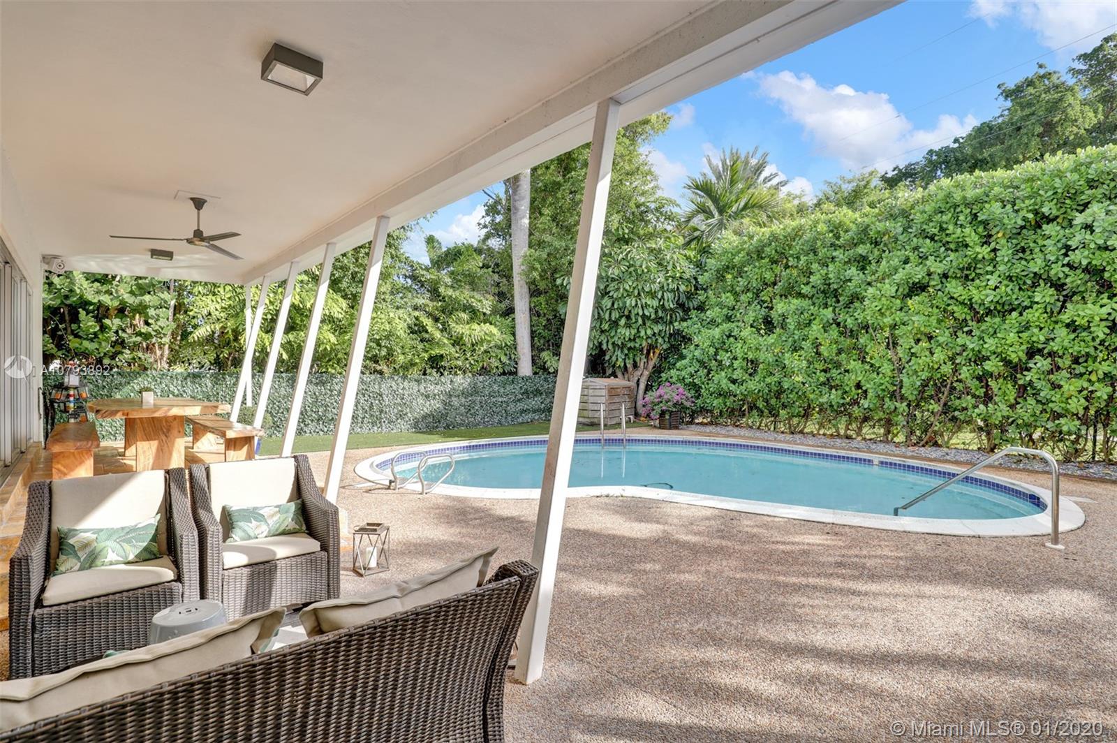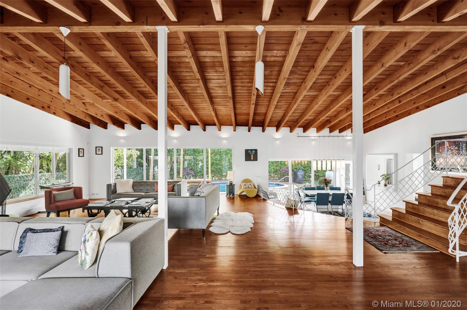 This one of a kind architectural gem is located in east Miami Shores only one house from the bay. Designed by mid century architect Robert Nordin, it boasts an impressive exposed Pine wood ceiling over a spacious living area overlooking the inviting backyard and pool. The traditional use of wood blends beautifully with modern finishes. A 1950's original working fire place adds to the mid century authenticity. Fully renovated in 2016 it has new impact windows/doors, new plumbing/electric, new roof, custom lighting, Bandalux window treatments, a high end kitchen w/custom cabinetry, Bosch appls. plus laundry room. The sumptuous master bedroom offers his/hers baths and a custom walk-in closet. A covered 2 car garage and plenty of storage space abound. This home is a must see and a great value!
