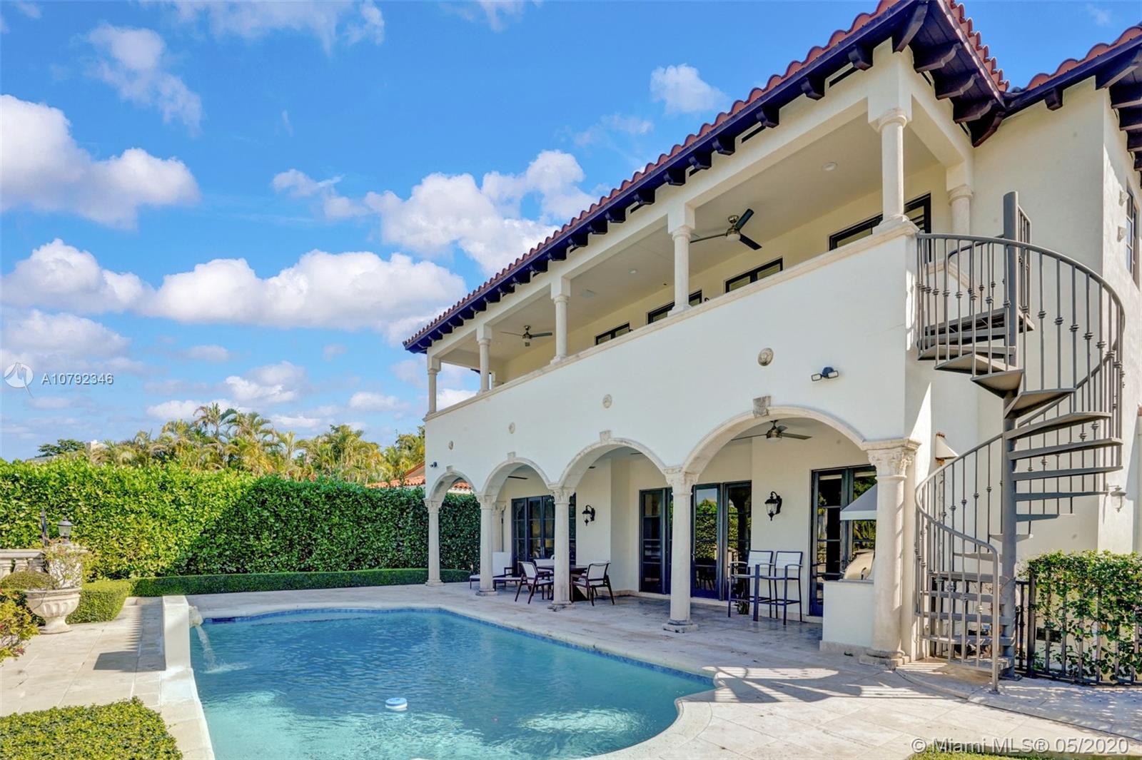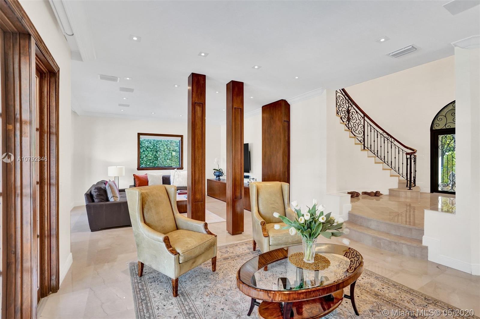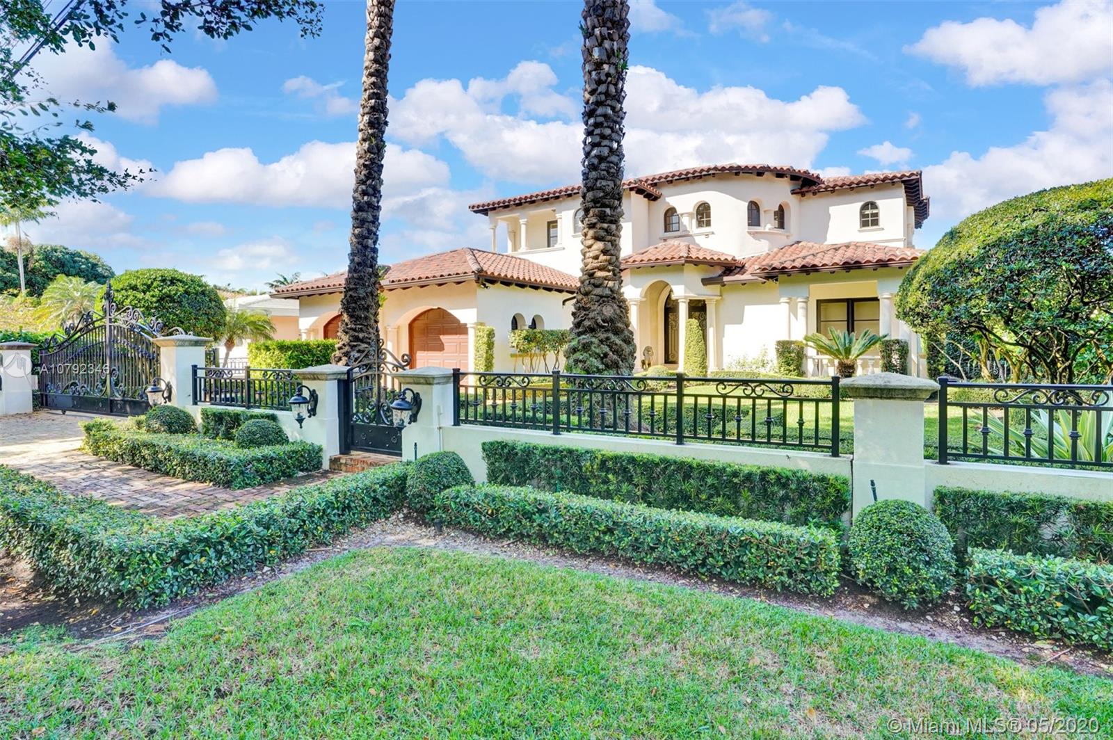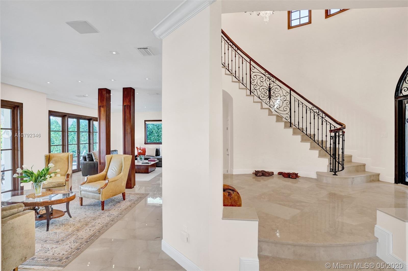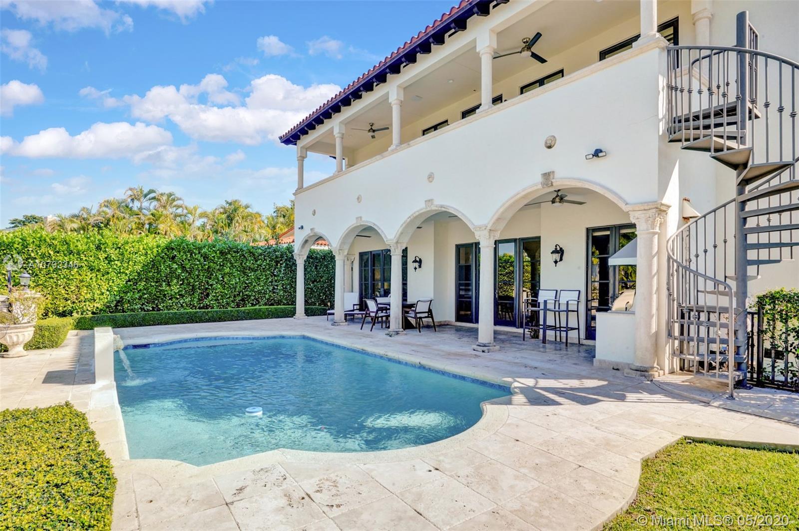 Welcome to your picture-perfect Mediterranean villa! A true boater’s paradise with a seawall, dock, and access to Biscayne Bay. Built in 2001, this move-in ready, gated home is elegantly appointed offering lush landscaping and a functional floor plan. Designed for entertaining with 2 large covered terraces, built-in grill, and a pool. The living room, kitchen and family room all open to the outdoors. A 1/1 ground floor guest suite overlooks the front garden while the 2nd ground floor 1/1 guest suite has its own private entrance. The upstairs grand master suite enjoys a large terrace with a spiral staircase to the pool, a glamorous master bath, and a spacious walk-in closet. Two additional upstairs bedrooms share a Jack/Jill bath. Live in one of Coral Gable's most prestigious neighborhoods!