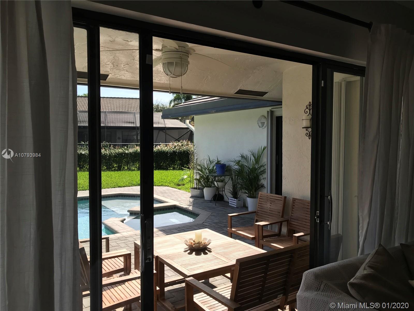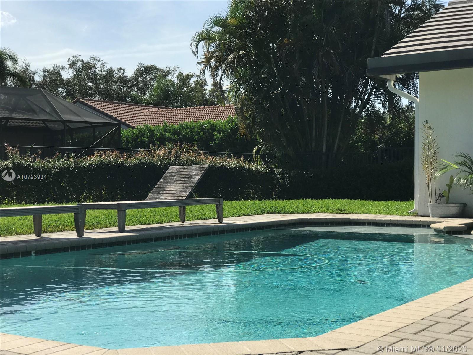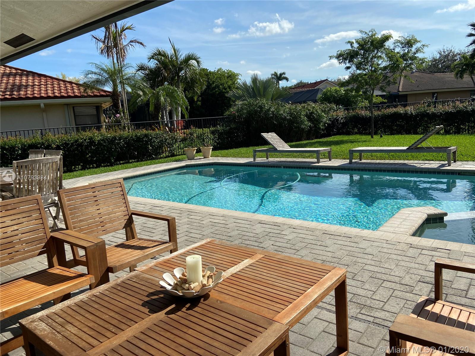 Best location in Weston,walking distance to Town Center and Country Isles Elementary. Nicely updated with wood looking tile on floors all through out.This house has a nice flow. Open Kitchen with granite counter top that can be use as bar and breakfast area ,with stainless steel appliances lots of light opens to family room and pool area. Yard is very spacious integrated with the pool that has no screen and totally fenced so is very dog friendly. Very hard to find in Weston. Gas-heated salt pool w/spa. Security system protects premises. Surround sound in family room. Maintained long-lasting concrete roof. Separate utility room adjoins garage. Newer AC. Carefully maintained interior. Garage hurricane doors. Quiet tree-lined winding roadways. Superior schools throughout Weston.