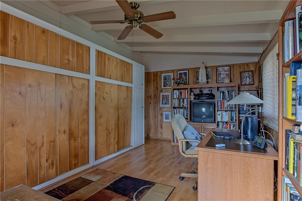 Mid Century Modern Home, Riverland Road area, high vaulted wood beam ceilings, open floor, 3 bedrooms, 3 full baths, 1900 +/- sq ft living area, quiet cul de sac street, large patio, needs updating… but a REAL GEM.