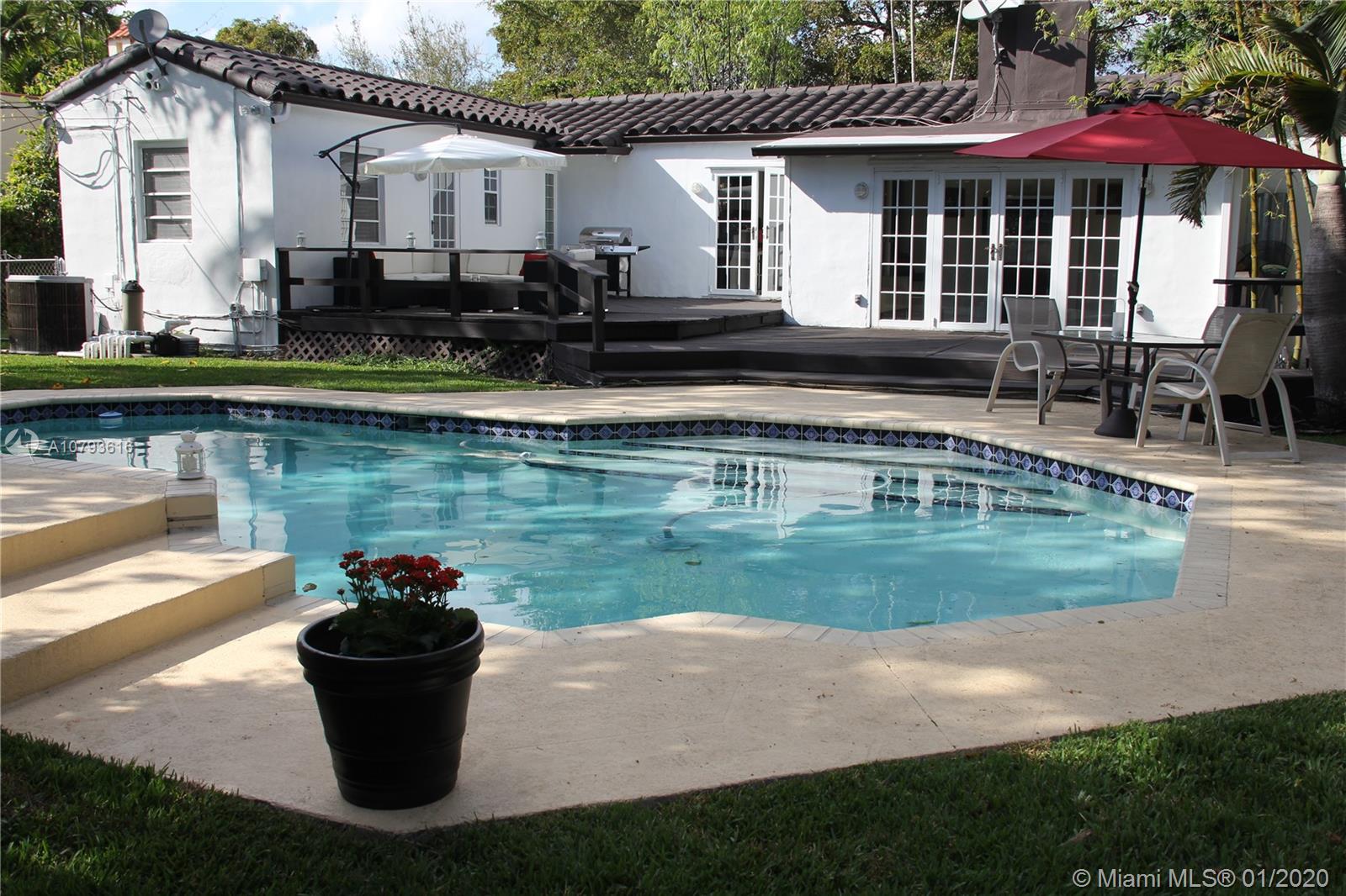 GORGEOUS HOUSE AT CORAL GABLES. 3 BEDROOMS, 2 FULL BATHROOMS, FAMILY ROOM, STUDIO. CREAM IVORY MARBLE. SPLIT FLOOR PLAN. LOCATE ON A DOUBLE LOT OF 11,875 SQF AND A ONE BLOCK STREET WITH LOW TRAFFIC. BIG POOL WITH A LARGE OUTDOOR WOODEN DECK SPACE. LOTS OF LUSH LANDSCAPING ALLOW FOR PRIVACY. CLOSE TO COUNTRY PRADO STREET. MODERN KITCHEN ITALIAN CABINETRY, QUARZO COUNTER TOPS, STAINLESS STEEL APPLIANCES. WOOD BURNING FIRE PLACE. STORAGE SPACE IN THE ATTIC. FRESHLY PAINTED INSIDE & OUT. ADT ALARM SYSTEM, SPRINKLES SYSTEM, MOSQUITO SYSTEM AND POOL FENCE. SCHOOL: CORAL GABLES PREPARATORY ACADEMY. CLOSE TO SUNSET SCHOOL 4.5 MILES 20 MINUTES. PUBLIX LOCATED 5 MINUTES WALK.