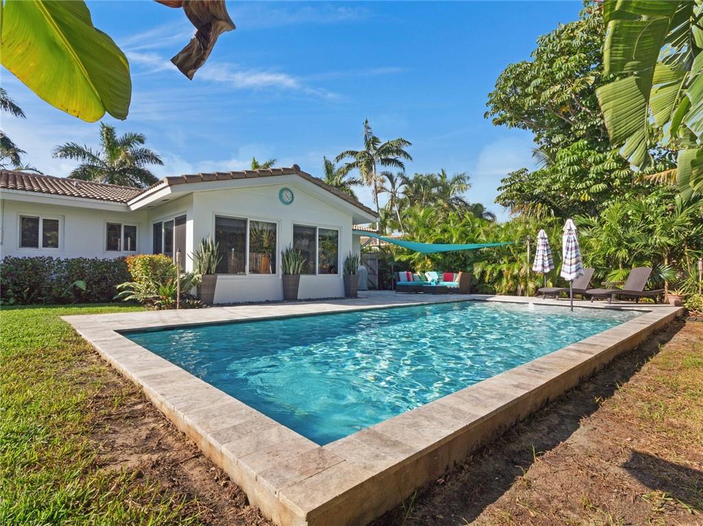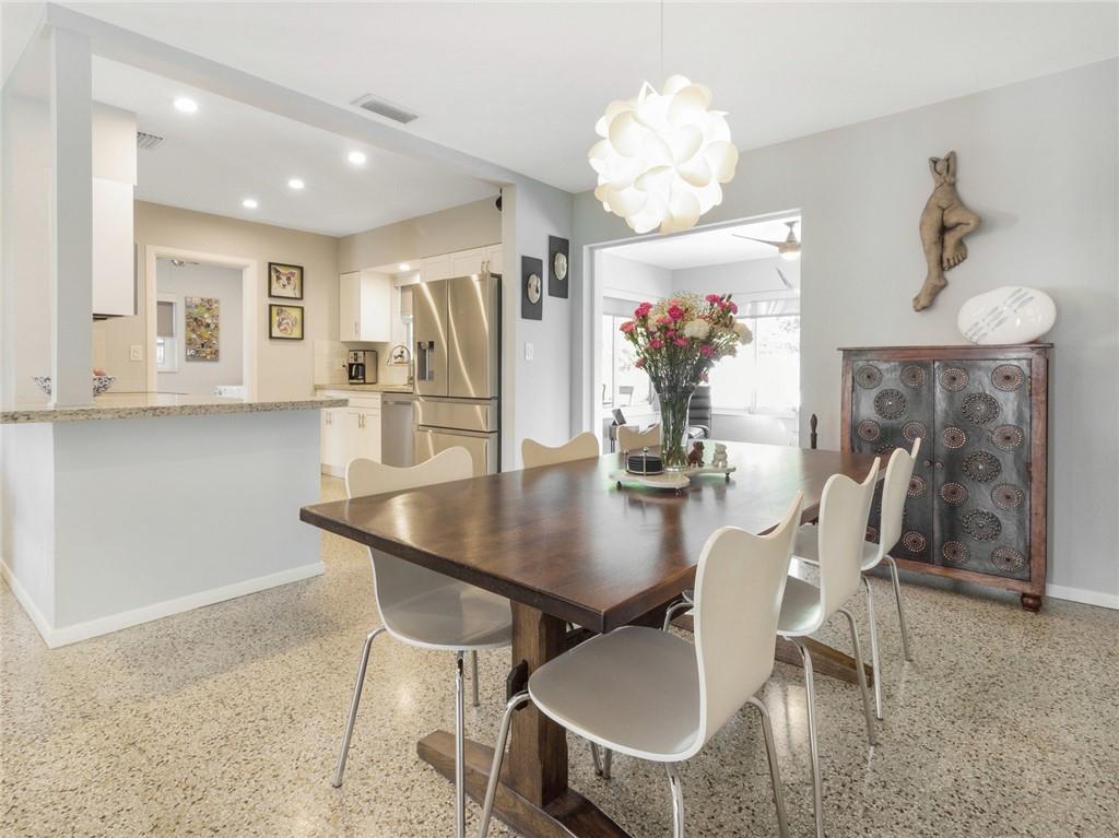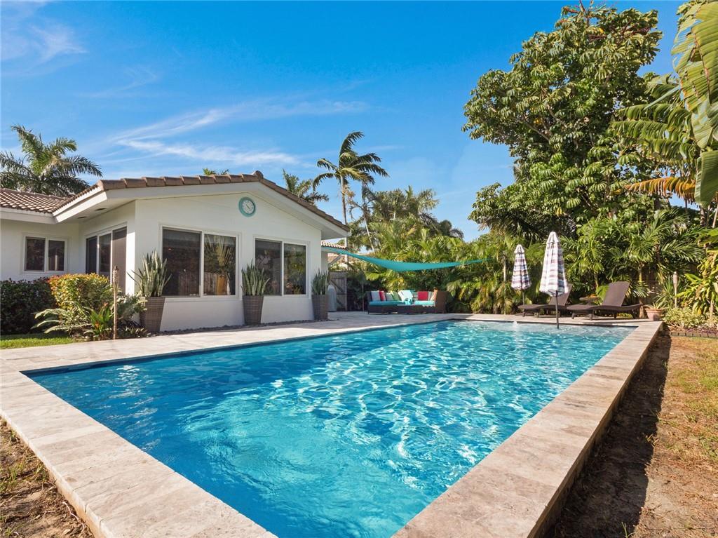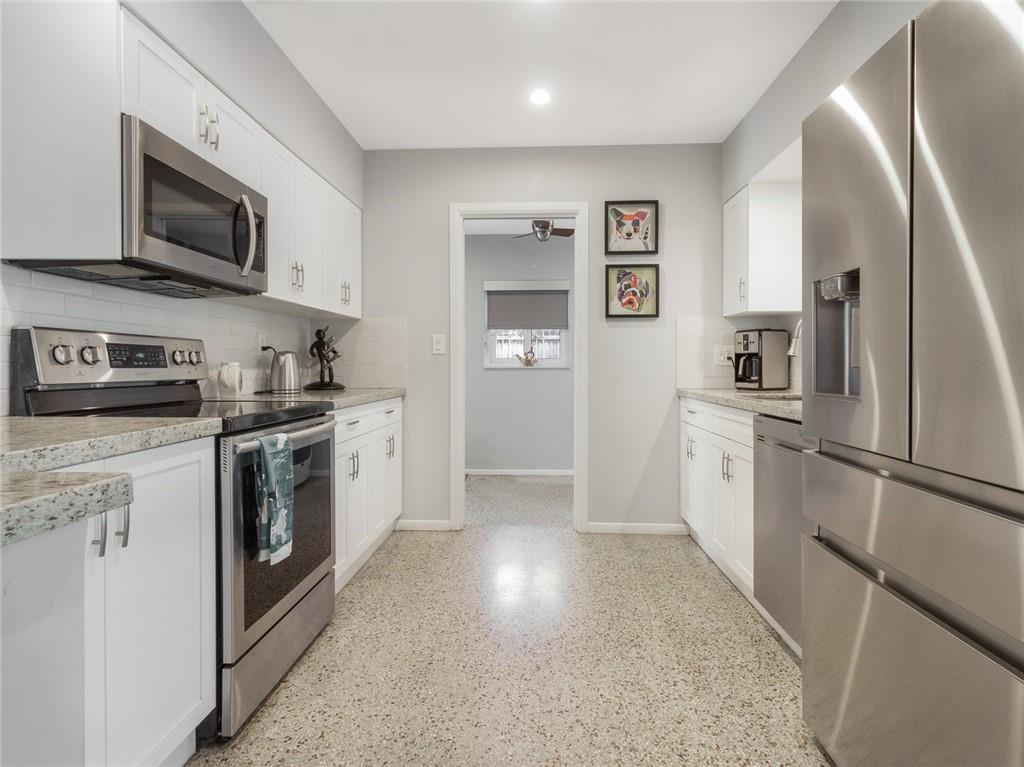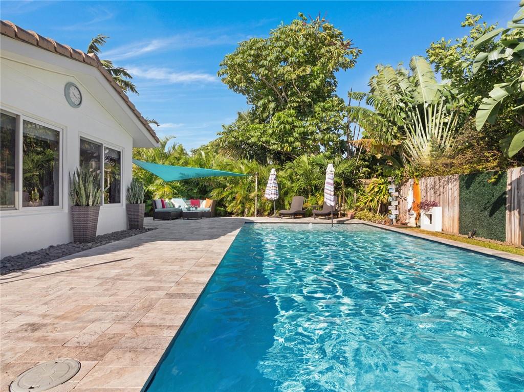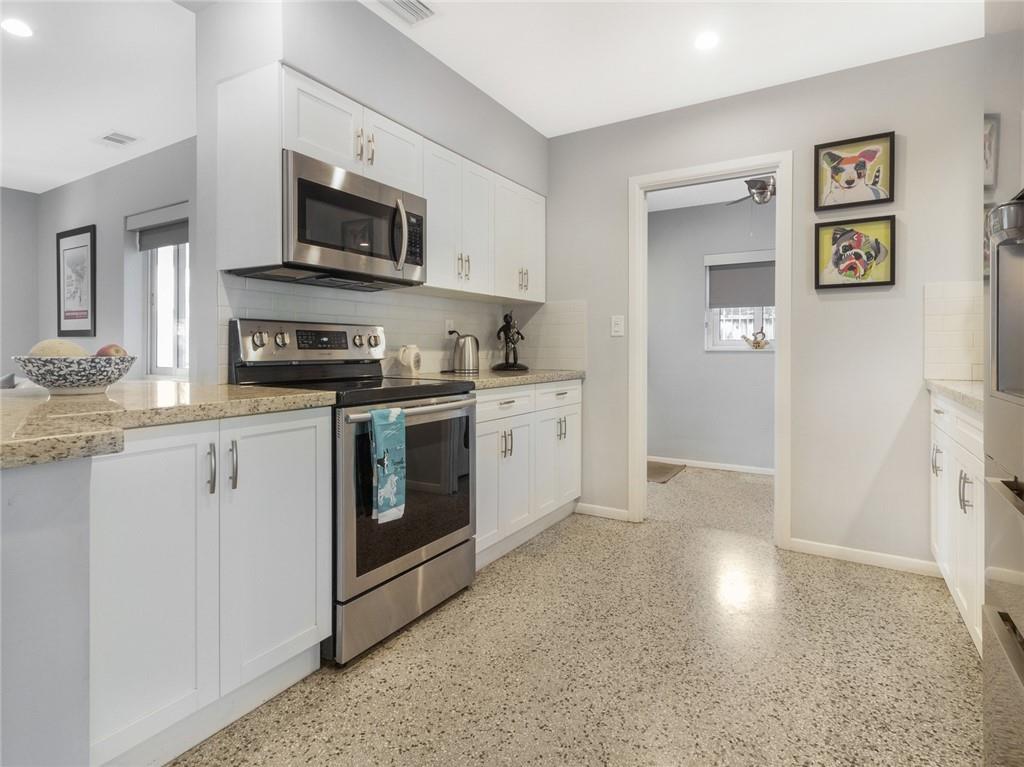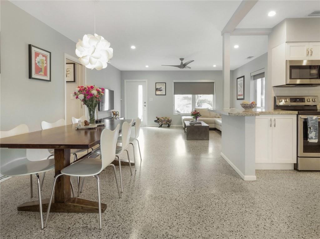 Fantastic curb appeal! As you enter this amazing home you are greeted by pristine terrazzo floors throughout, an open kitchen with SS appliances/quartz counter-tops & a fantastic view to a tropical oasis of a backyard. The home features loads of upgrades including remodeled bathrooms, fantastic saltwater pool with marble pavers, sun shelf & custom lighting, Hurricane impact windows, upgraded electric panel, gas hot-water heater, separate laundry room with new washer and dryer, charming stone pavered driveway, alarm system, newer fence & sprinkler system on a well. Location, Location, Location! This home sits on an interior lot with sidewalks and no through traffic. Don't miss the nicest home in popular Mary Knoll!