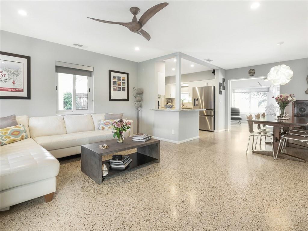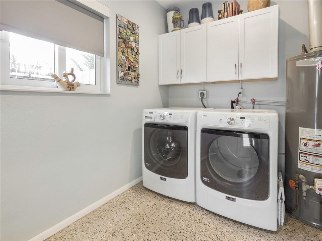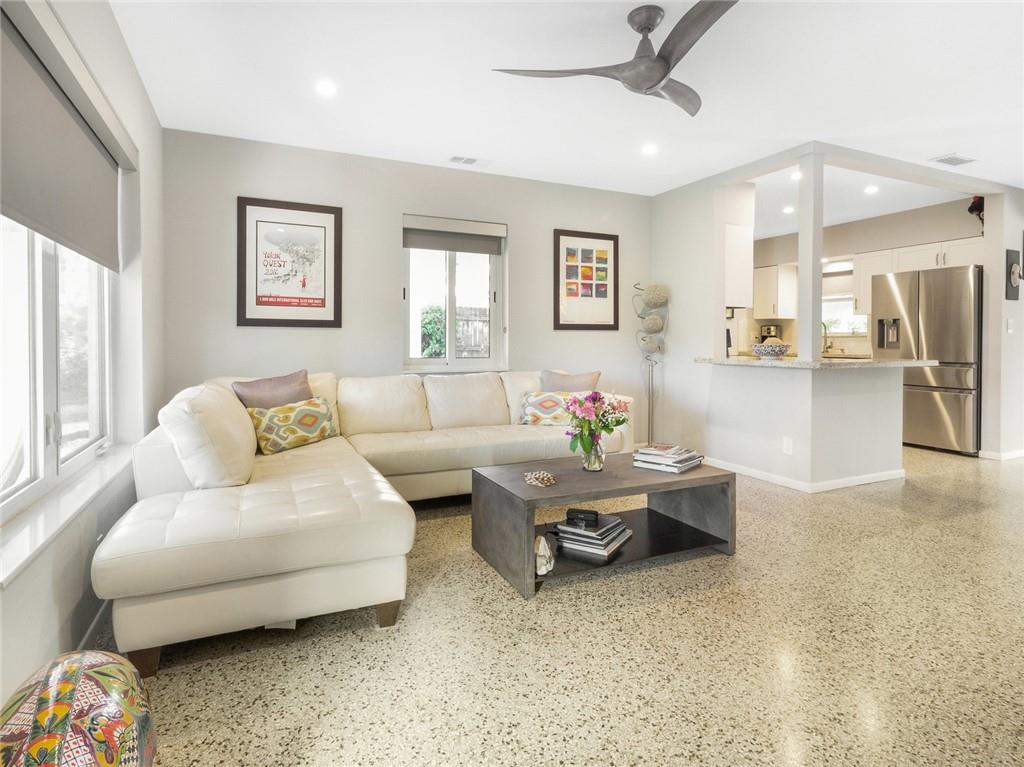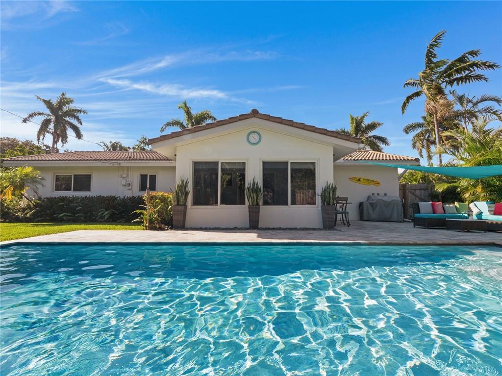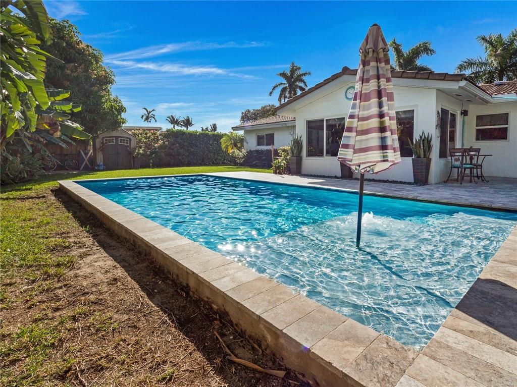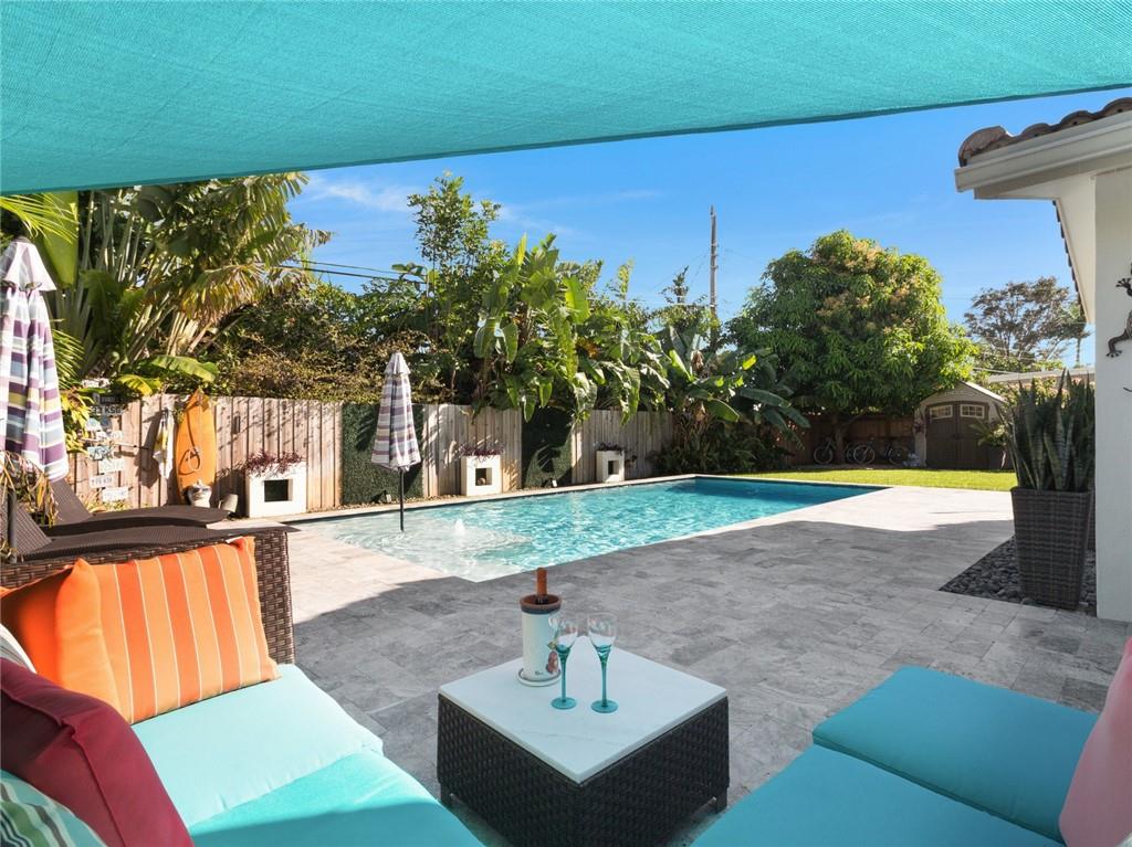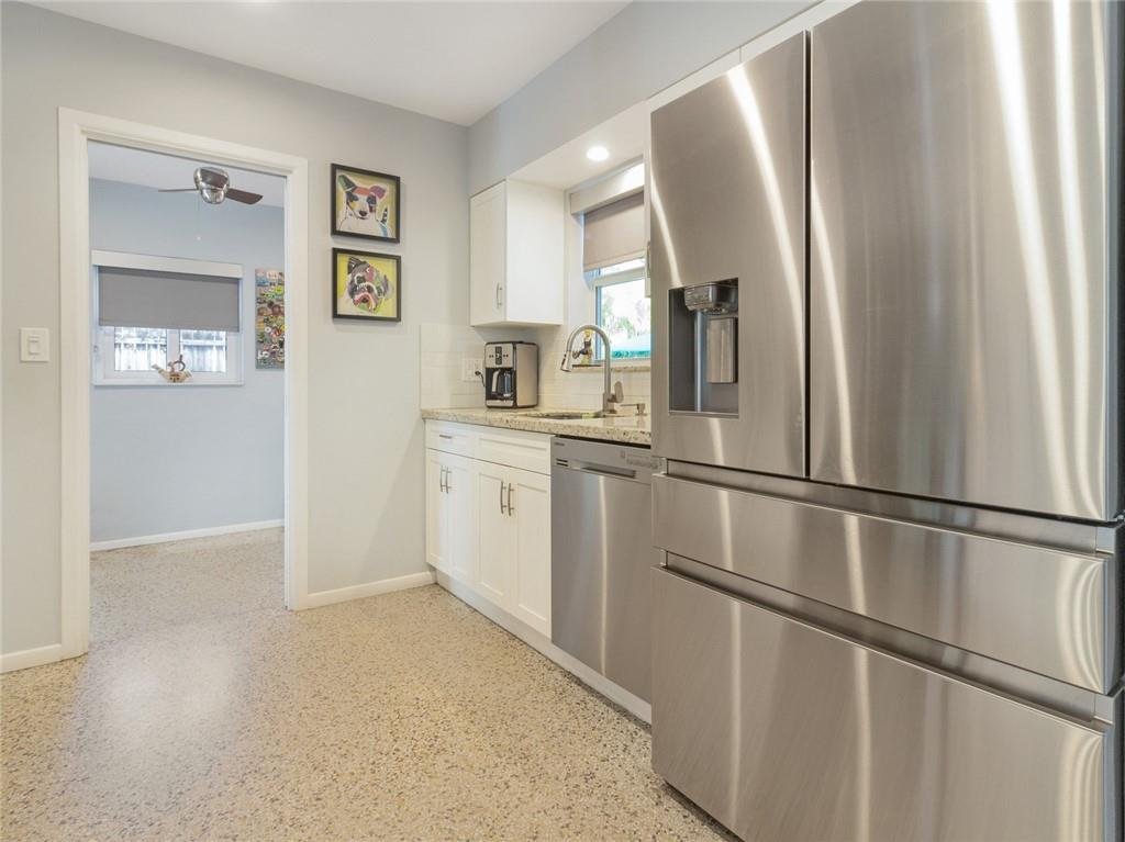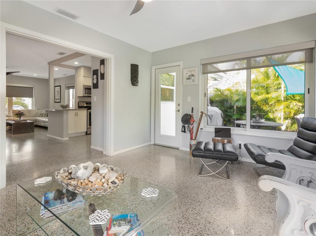 Fantastic curb appeal! As you enter this amazing home you are greeted by pristine terrazzo floors throughout, an open kitchen with SS appliances/quartz counter-tops & a fantastic view to a tropical oasis of a backyard. The home features loads of upgrades including remodeled bathrooms, fantastic saltwater pool with marble pavers, sun shelf & custom lighting, Hurricane impact windows, upgraded electric panel, gas hot-water heater, separate laundry room with new washer and dryer, charming stone pavered driveway, alarm system, newer fence & sprinkler system on a well. Location, Location, Location! This home sits on an interior lot with sidewalks and no through traffic. Don't miss the nicest home in popular Mary Knoll!