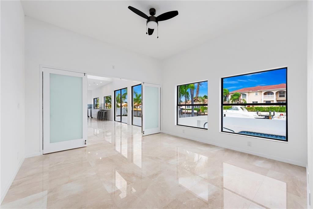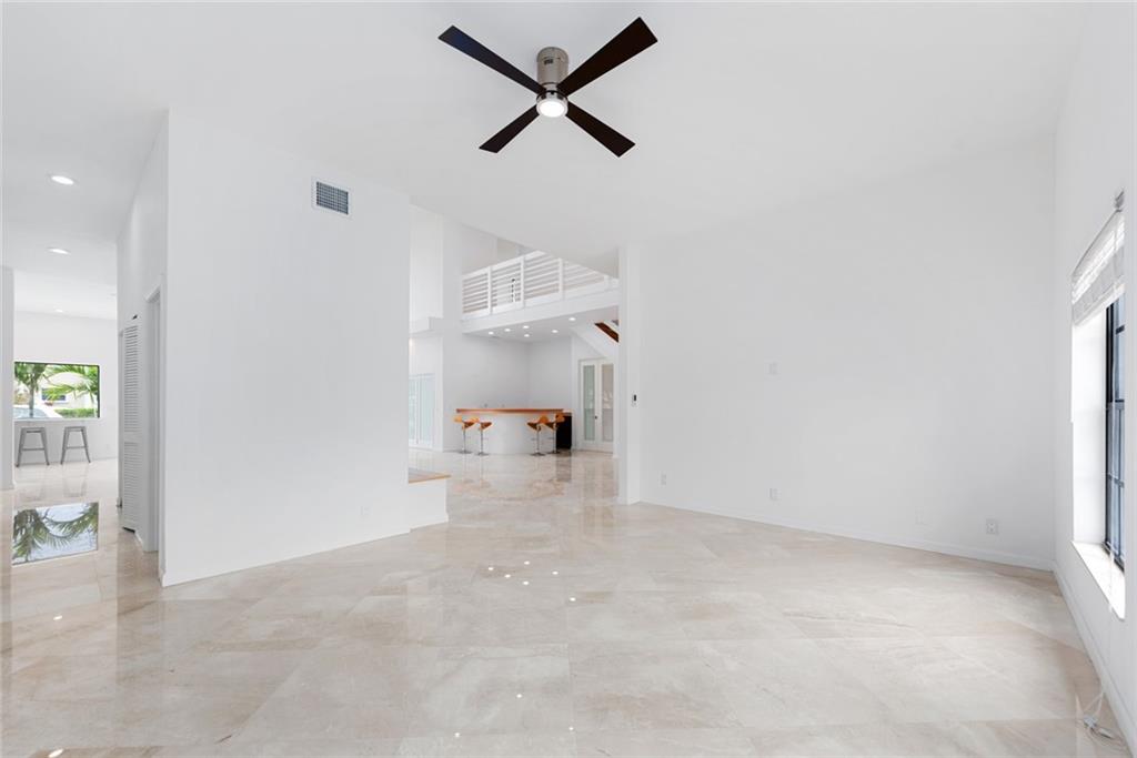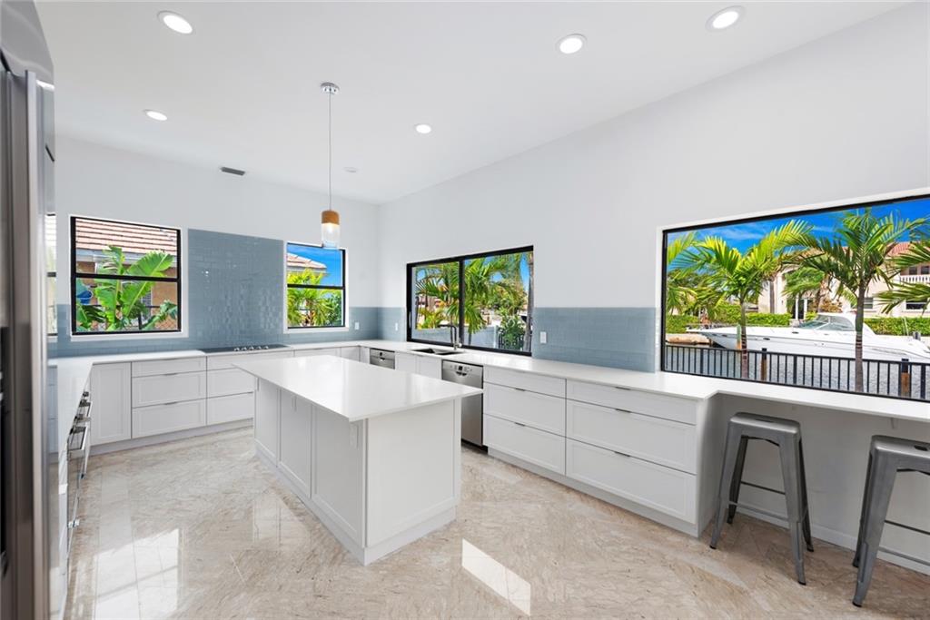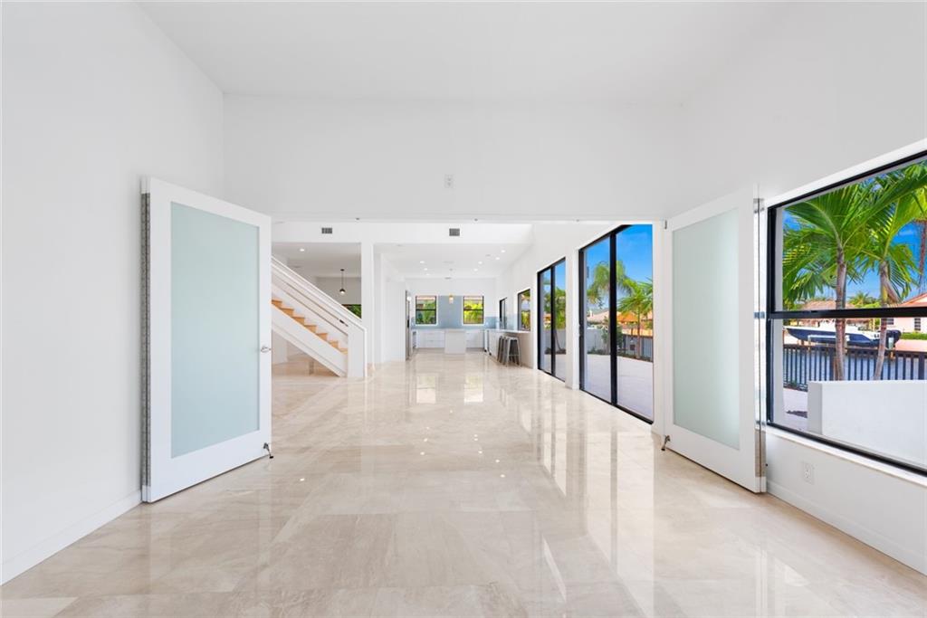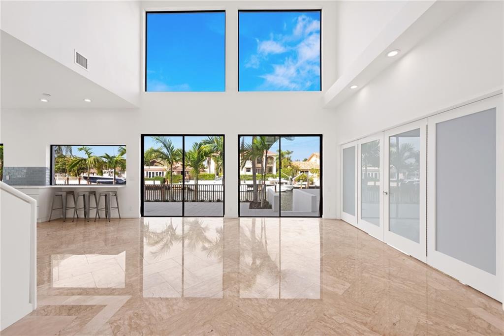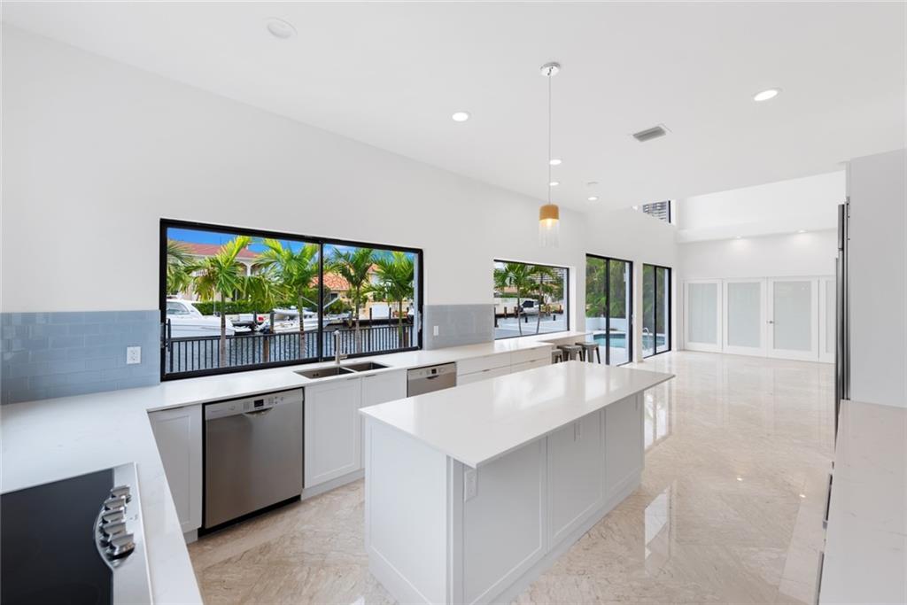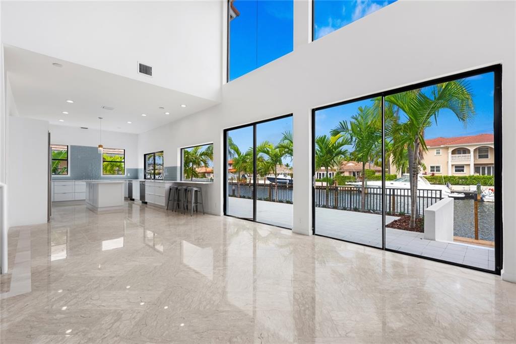 Contemporary style, bright and beautiful newly renovated home with impact windows and doors in Gated Bermuda Riviera. Located steps from the beaches of Fort Lauderdale. Soaring ceilings throughout. 5 Bedrooms, each with private baths, plus 2 half baths. Home has additional private office and large loft. Gourmet kitchen with Quartz counters, double ovens, double dishwashers and bar seating with views of the waterfront. Wood burning fireplaces in the living area and master suite. Huge Master with private balcony and views of the Intracoastal waterway. Giant walk-in closet and large master bath with double sinks, walk-in shower plus a tub. New Impact windows, new A/C's, new water heater. Bayview Elementary school district!