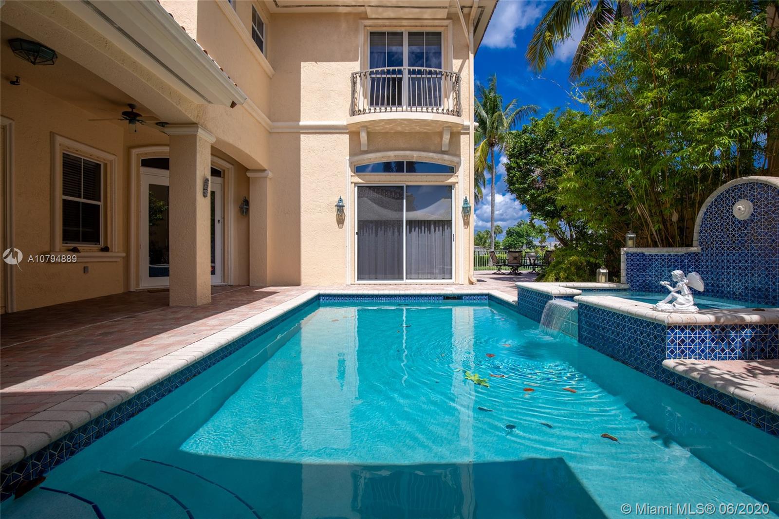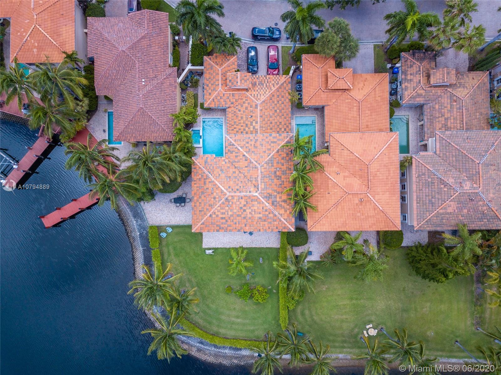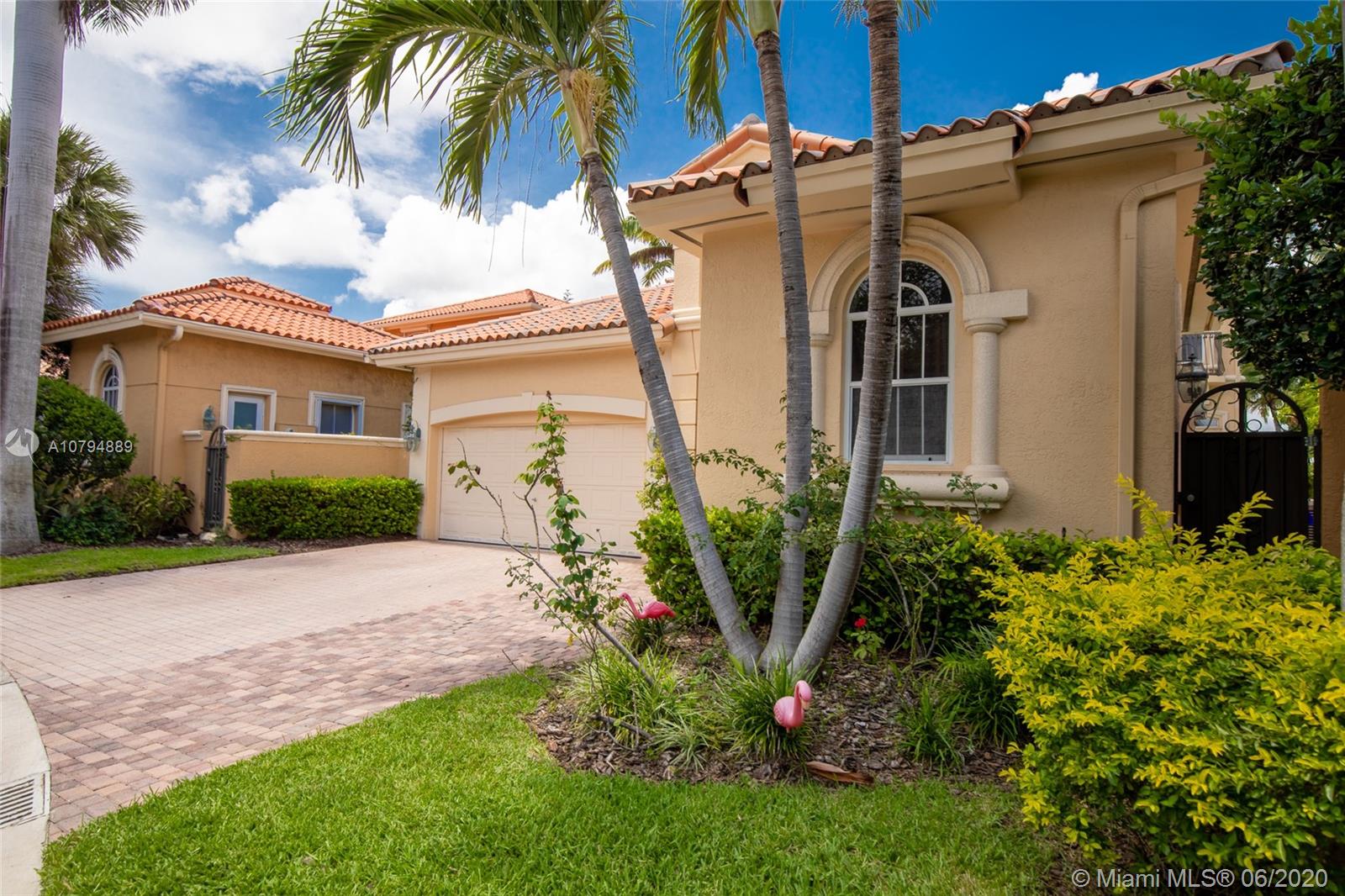 Million dollar view. Luxury waterfront 2-story single-family home with long views of the marina with 5 bedrooms and 5 baths. This corner house has separate guesthouse with 1 bedroom a 1 bath. The living spaces include a double-height formal living room, family room, formal dining room and generous kitchen with large island, separate sub-zeros refrigerator & freezer, double wall ovens. Total lot size: 0.2617 acres / 11,400 SqFt. It features camera system, heated pool & jacuzzi. Community offers clubhouse, gym, tennis courts, park, plus cable, pool and grounds maintenance all included. Minutes from the beach.