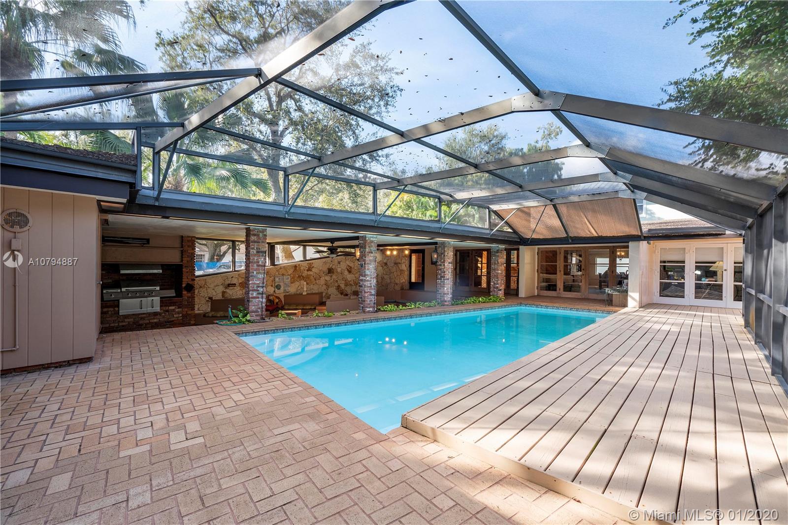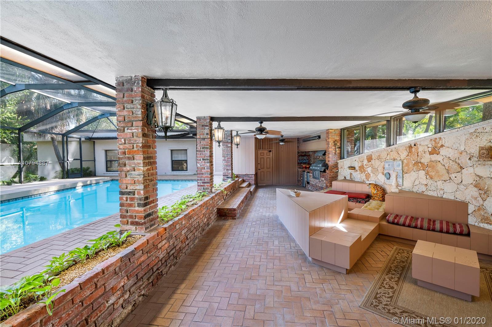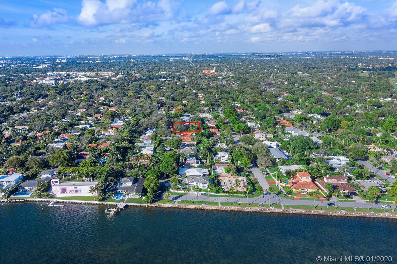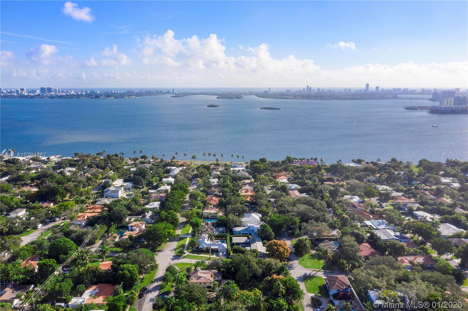 Strategically price so you make this your dream home!! House sit on almost 19,000 SF double lot on the most desirable st in Miami Shores East of Biscayne Blvd. Famous Architect Wahl Snyder’s previously owned & designed this residence just ½ block from Biscayne Bay! Scallion roof design combines ample indoor-outdoor living area. This home will never be duplicated & is reserved to lovers of architecture. All bedrooms overlook the screened-in patio/pool area. Huge master bedroom with separate his & hers walk-in closets, connects to large separate library/office/entertainment room. The house is loaded with flexible space to customize your preference. Open concept living with a formal entry, living, dining & kitchen. Pool cabana, coral wall & new deck. Combined are 7099 SF. 4 car garage.