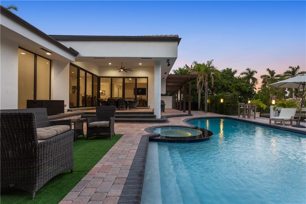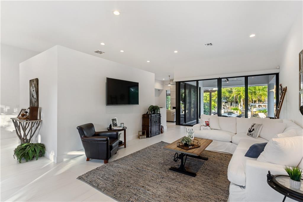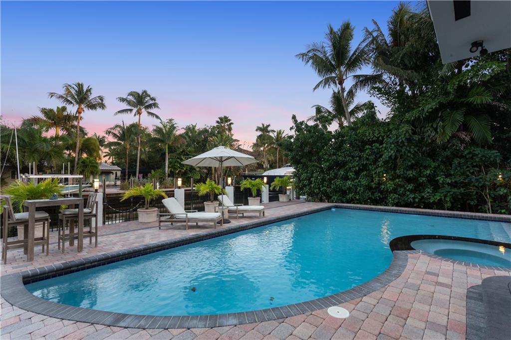 Newly updated one story Las Olas Isle home with 100' of water and an east facing backyard. A stunning double door glass entrance welcomes you into your open living area with walls of glass to enjoy the pool and water views from most rooms. This 4 bedroom + den, 5 bath home is complete with a new gourmet kitchen, updated bathrooms and impact windows and doors. The luxurious master bedroom and bath has two generous sized closets and direct access to the pool area which has a large covered lanai for outside entertainment space. Walking distance to the Shops and Restaurants on Las Olas Blvd and close proximity to the Beach. Private dock with no fixed bridges and ocean access.