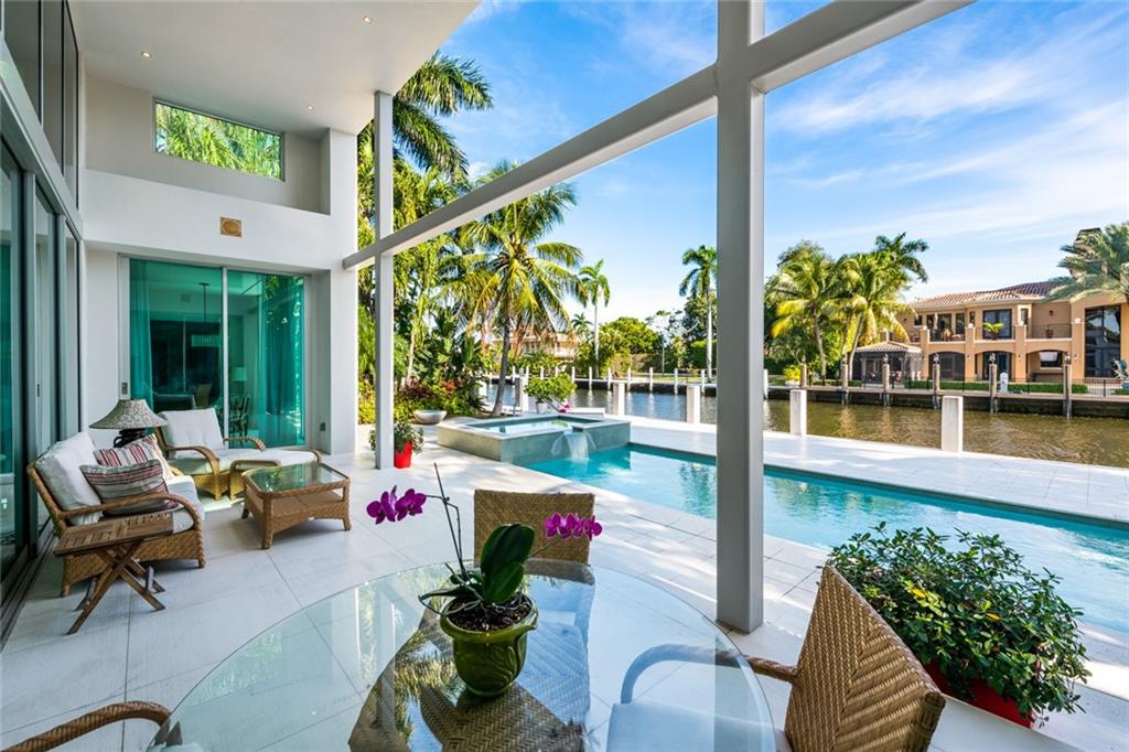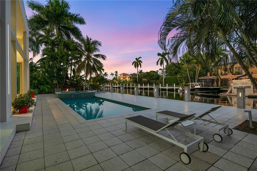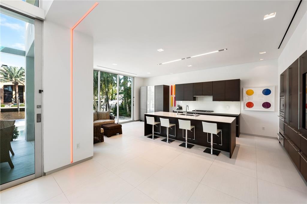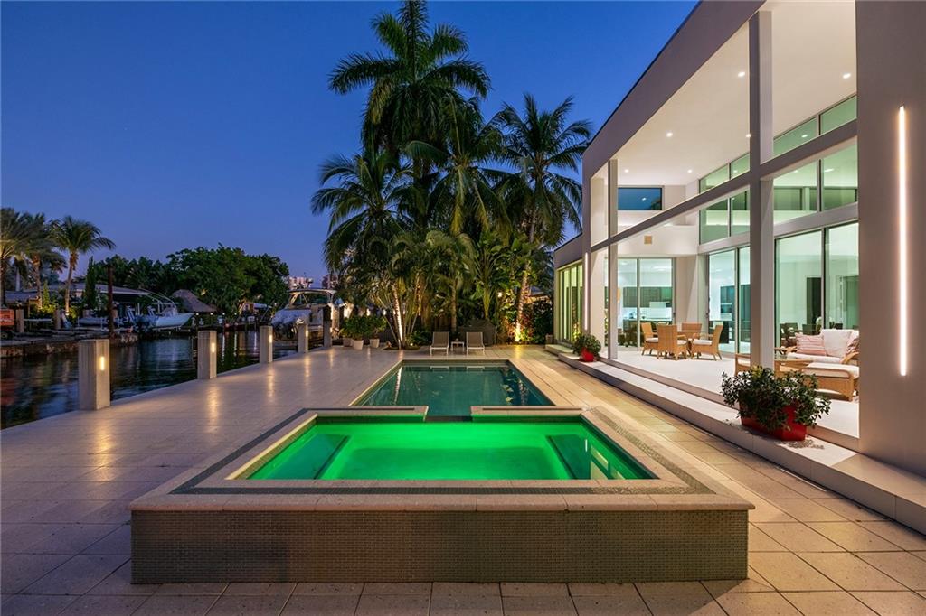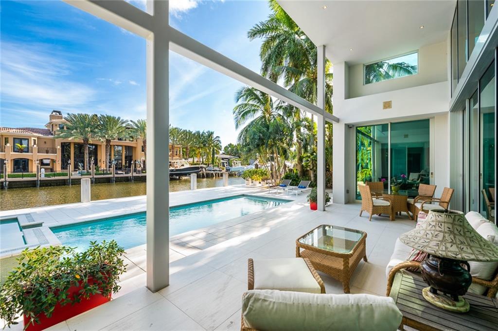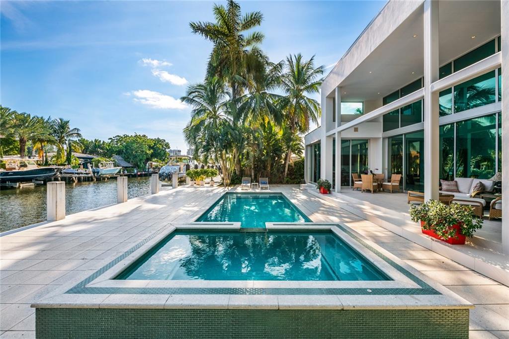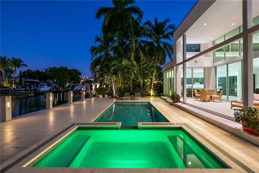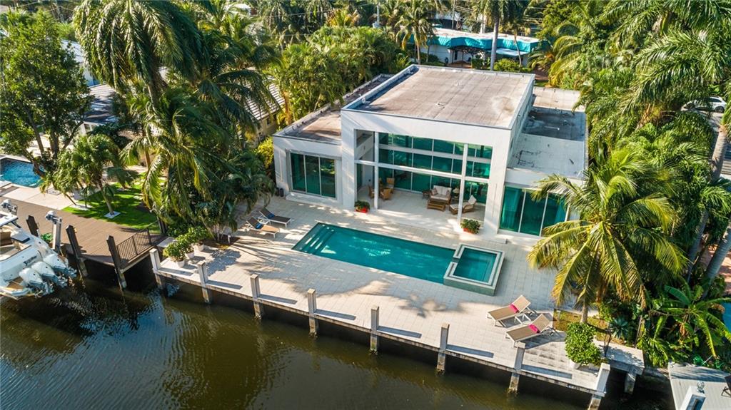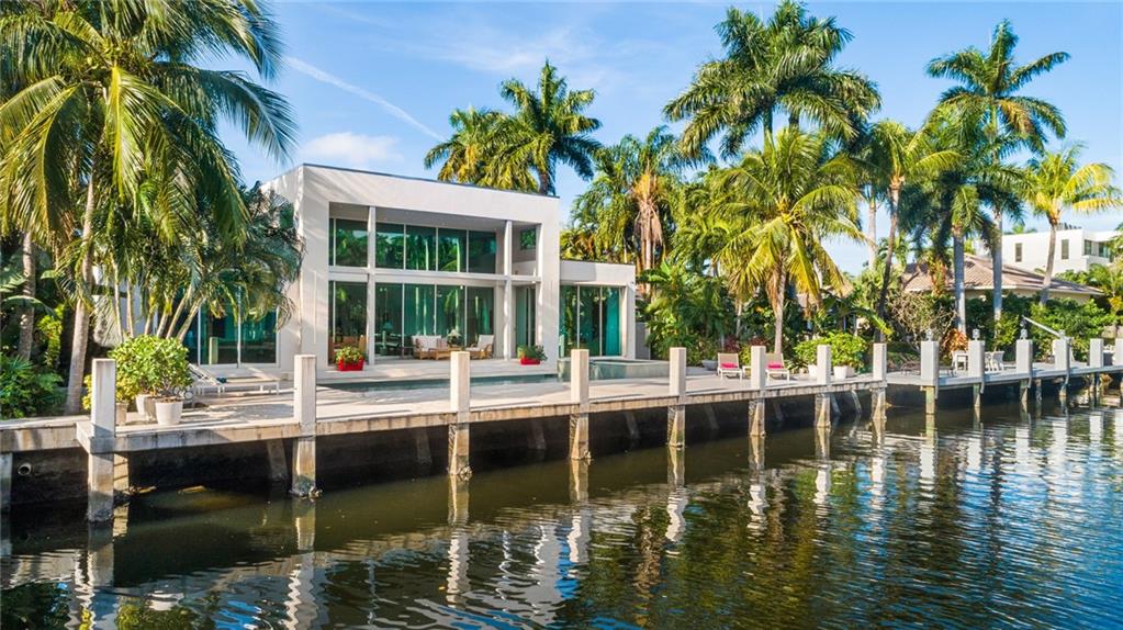 Prepare to live a life of sophisticated luxury surrounded by revolutionary architecture inspired by an ultra-modern design. This deep waterfront estate is ideal for boating boasting a concrete dock, wide canal & no fixed bridges to the Intracoastal & Ocean. The luminous open floor plan, soaring ceilings & walls of glass are conducive to today's lifestyle. The custom culinary kitchen features a large center island, upgraded appliances, gas cooktop, 78 bottle wine cooler & tremendous storage. Multiple stacking doorways integrate indoor & outdoor living spaces that overlook the heated pool, spa & tropical waterway. Additional details included: 2 tankless gas water heaters, whole house water filter, Creston & sound systems, motorized window treatments, back-up generator. Sq Ft from IMAPP.