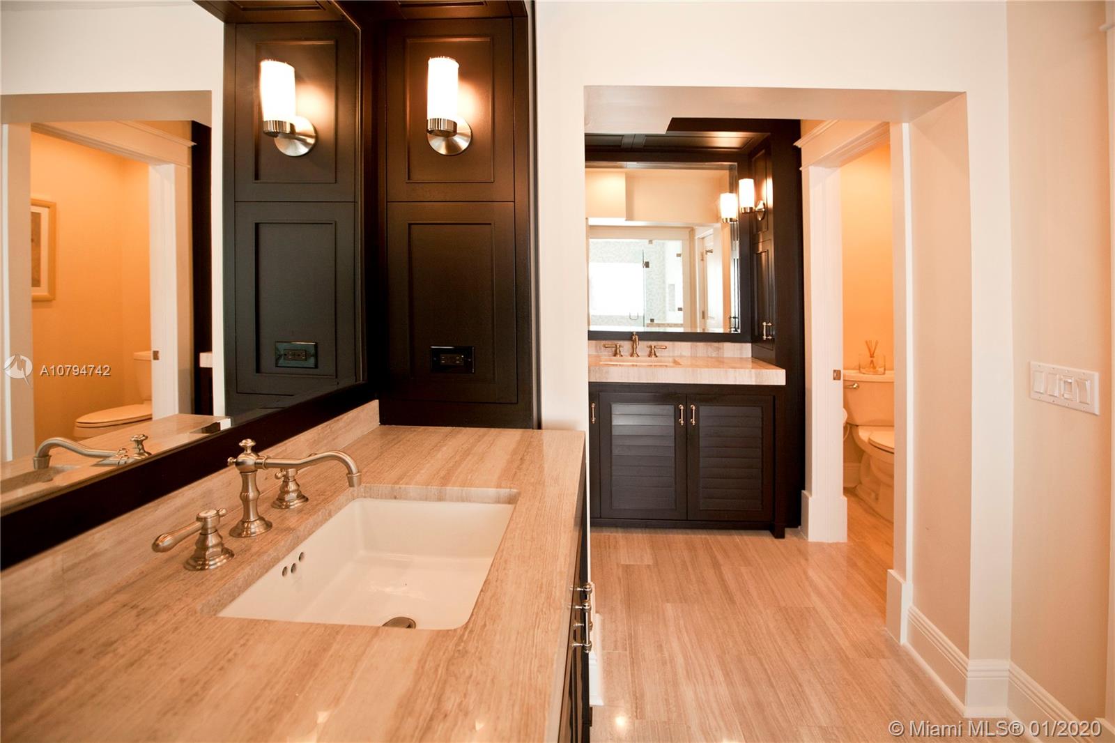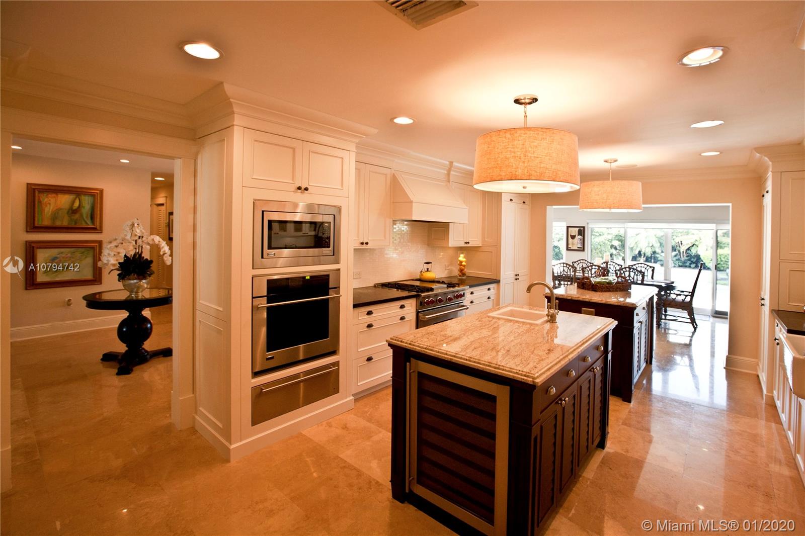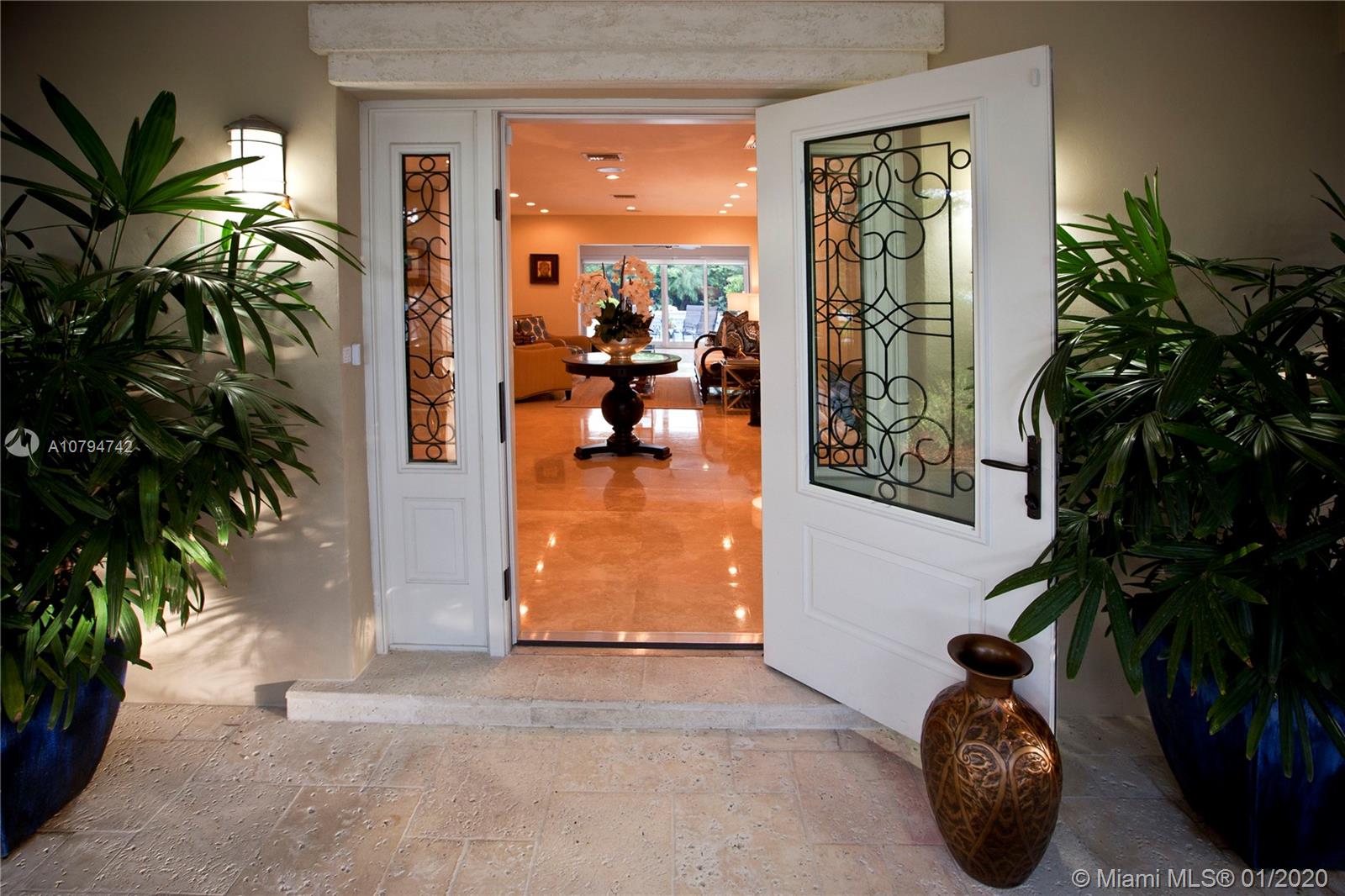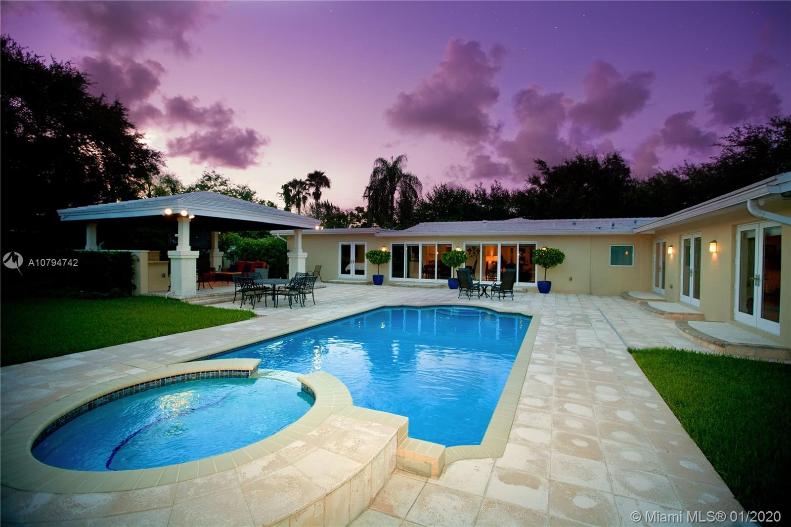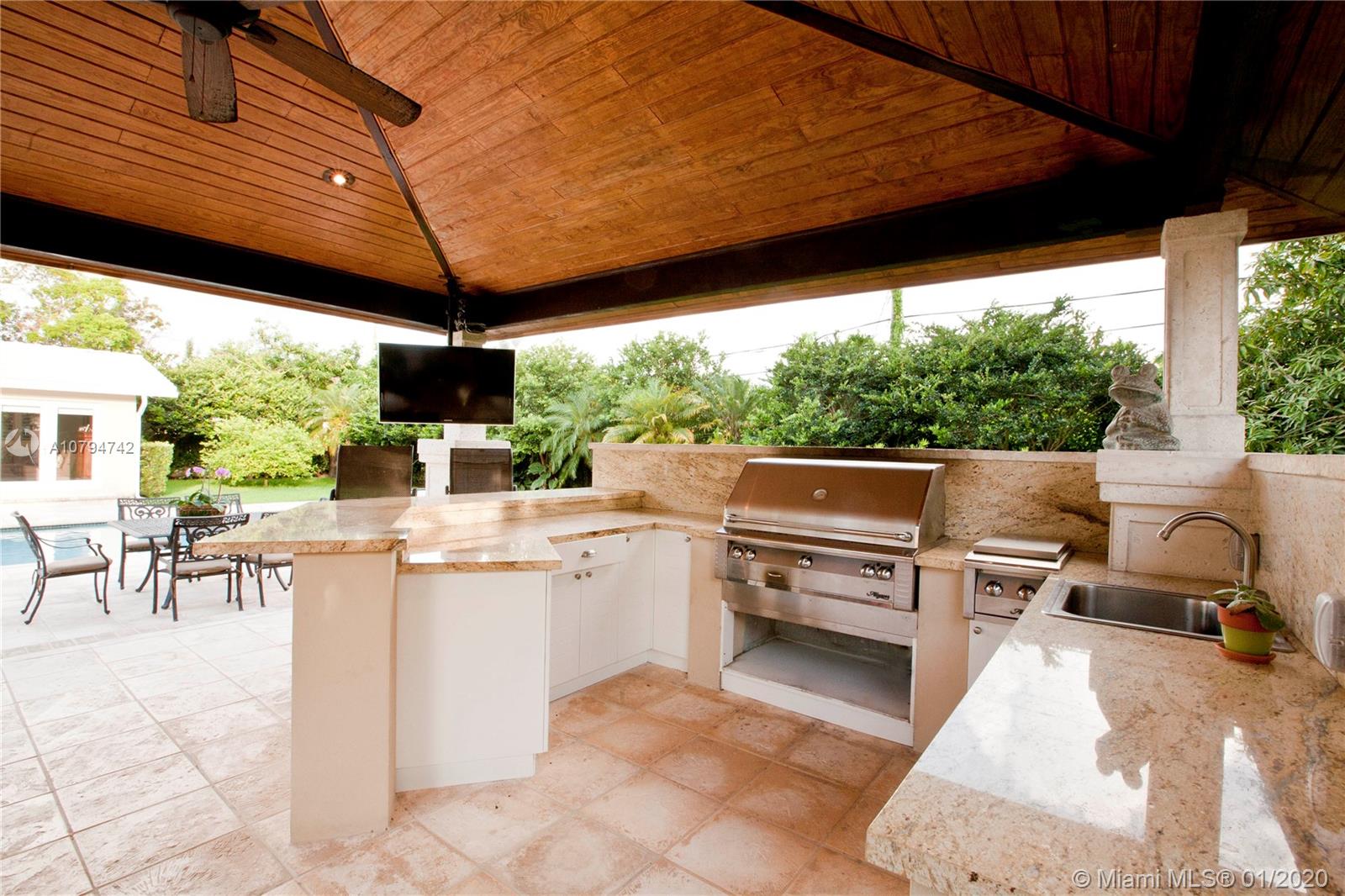 Immaculate and beautifully appointed half-acre home in Pinecrest. This lovely 4 bedroom 3 baths home offers 3723 sqft. of resort like living. The large kitchen is a chef's dream; two islands with top-quality cabinetry, high end appliances and finishes. Huge Master bedroom with its own sitting room overlooking the sparkling blue pool, Jacuzzi and gazebo. This home was fully renovated and updated with impact windows and doors. Beautiful marble floors throughout and hardwood cabinetry in all bathrooms.