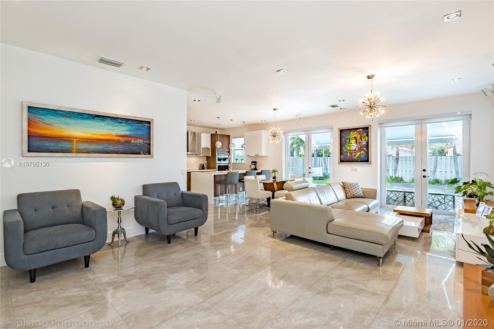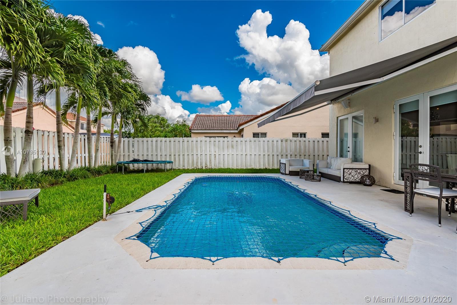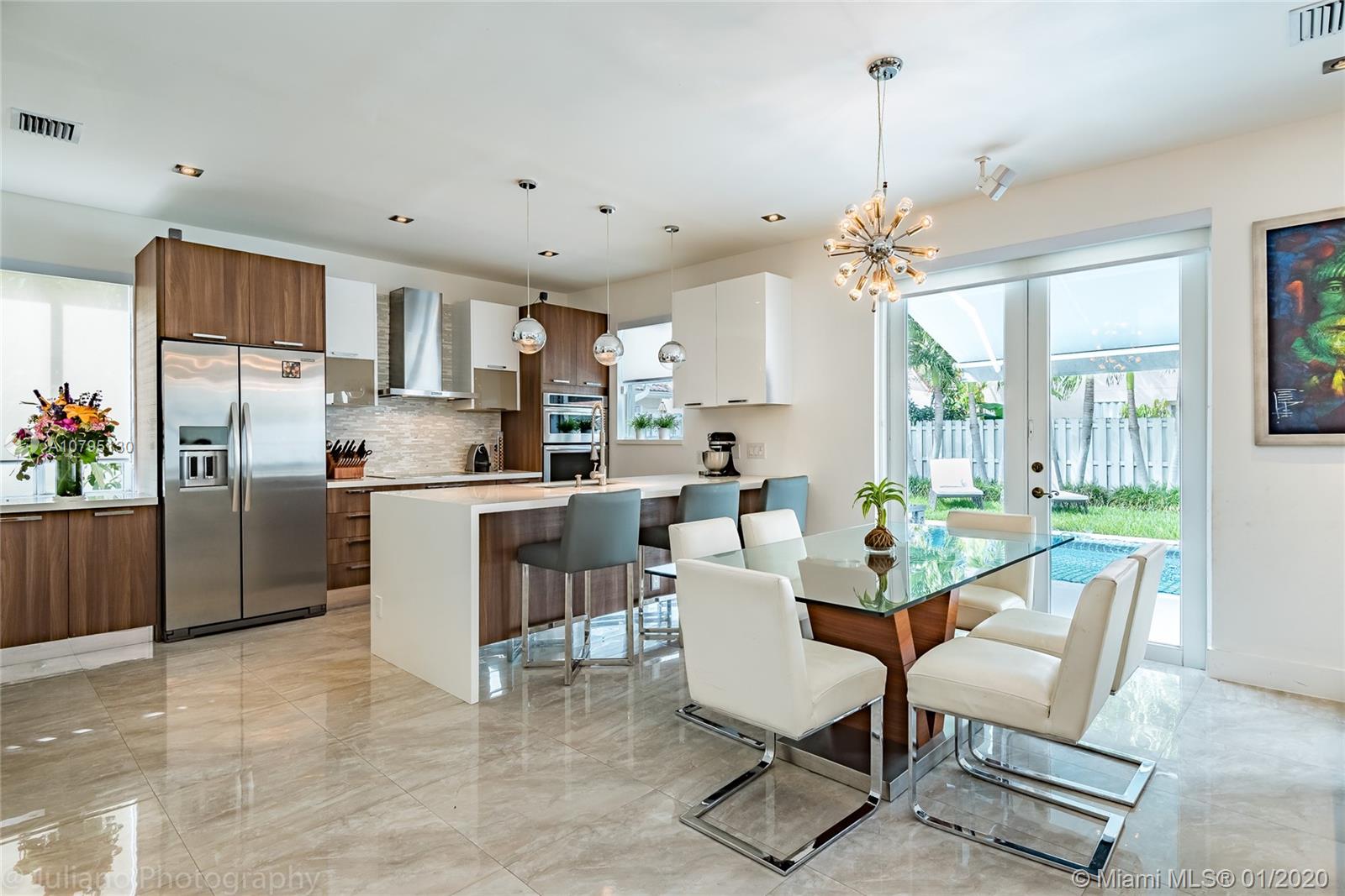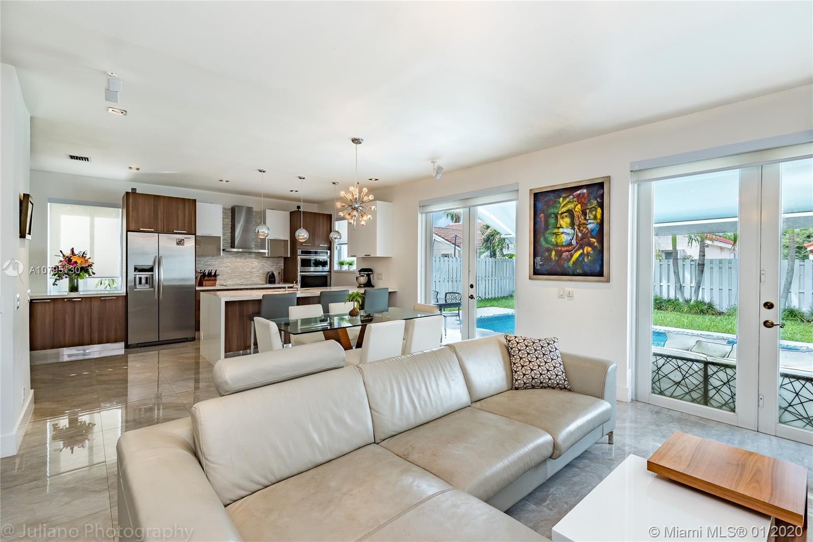 Substantially remodeled and modern single family house available now for sale! enjoy state-of-the-art 100% Italian kitchen (Stosa) with Absolute White Quartz, 42" cabinetry, all Kitchen Aid appliances including a wine cellar for 30+ bottles. High-end finishes such as Spaniard 24x24 porcelain, all LED bulbs, impact french doors, bathrooms completely renovated, modern laminated wood floors upstairs. Enjoy the Florida weather with a splash in the pool or just chill out during the winter season under the patio awning. The garage was totally upgraded and can be easily used as a playroom, office, or leave it as a garage. Very family friendly gated community, walking distance to Eagle Pt Elementary, community has updated the playground and pool. There is no other house in Weston like this one!