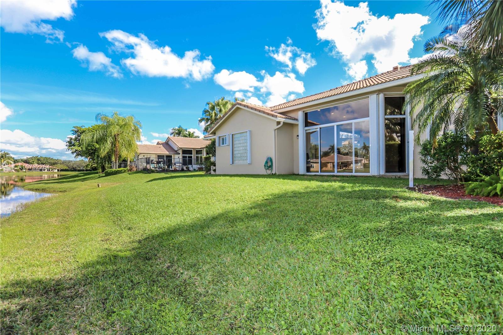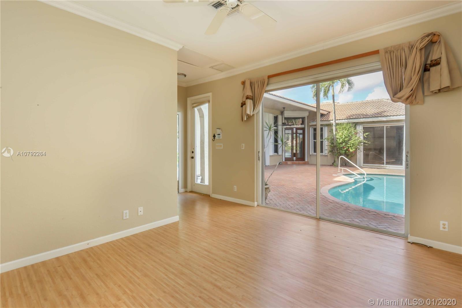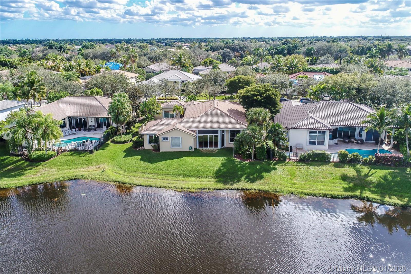 Located in the exclusive Weston Hills Golf & Country Club subdivision, this property evokes a Mediterranean-style architecture with an internal courtyard which includes a swimming pool. The home features a MAIN HOUSE with 3 bedrooms, 2 bathrooms and spacious open-space living areas as well as a separate GUEST HOUSE with 1 bedroom and 1 bathroom, (perfect for guests, Home office or a studio). You can enjoy the peaceful and wonderful lake views, the privacy and safety of the courtyard pool provide, and the magical Florida Sunsets. The high volume ceilings and the spacious floor plan allow tremendous potential for re-design and upgrades. Roof replaced in 2015, 2 A/C Units changed 2014 and 2016. A+ Schools in one of the safest cities in the State. Good Investment Opportunity! Must be seen!!