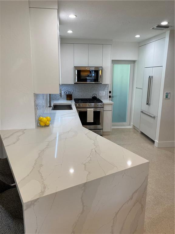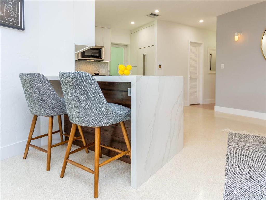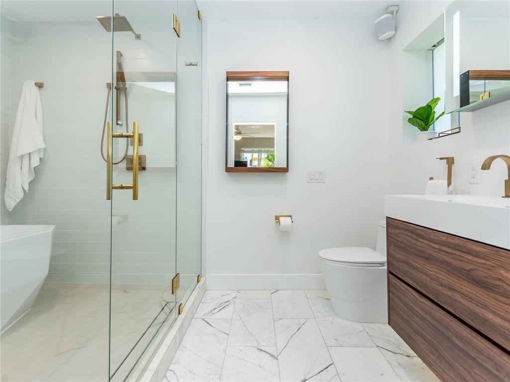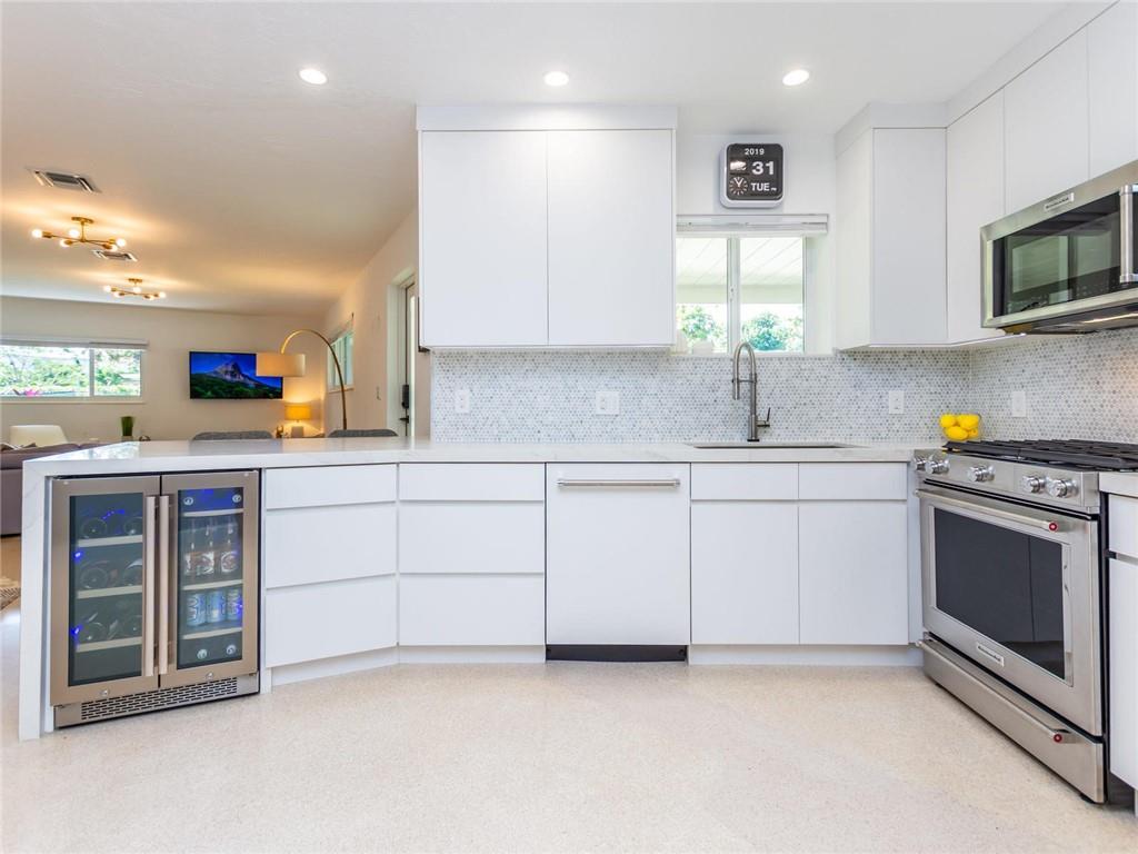 Mid-century modern meets 2020 hi-tech stunning smart home! Over $140K in brand new renovations! Situated just blocks from Biscayne Bay & Miami Shores CC, every inch of this sparkling spacious 3/2 w/office niche, fabulous sunroom & pvt tropical fenced yard has been meticulously redone! New sleek white kitchen w/quartz counters/waterfall edge, high-end integrated appliances w/gas oven, convention micro, wine cooler, walk-in pantry. Brand new modern marble bathrooms; master has huge walk-in His/Her glass shower & free-standing tub. ALL IMPACT GLASS, French Doors, new custom closets, new AC system, new plumbing, electrical updated to code, new laundry room w/ WiFi enabled W/D, new tankless water heater, new solid doors/baseboards/newly painted, refinished terrazzo floors, utility, shed & more!