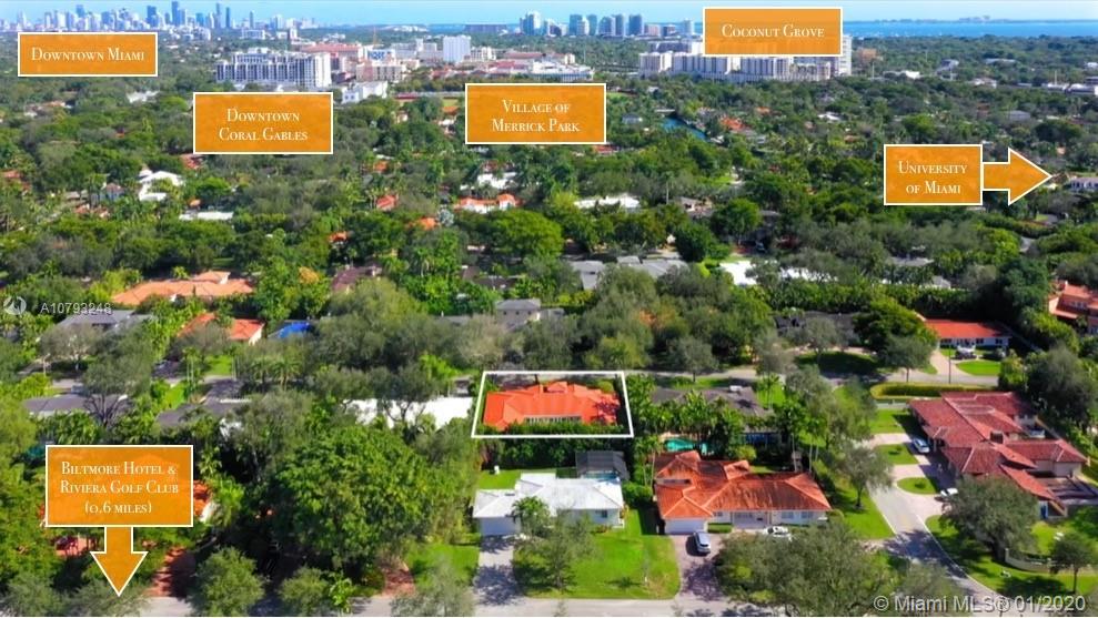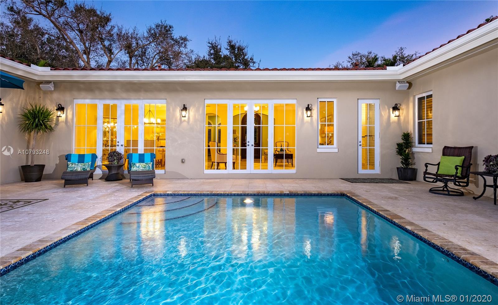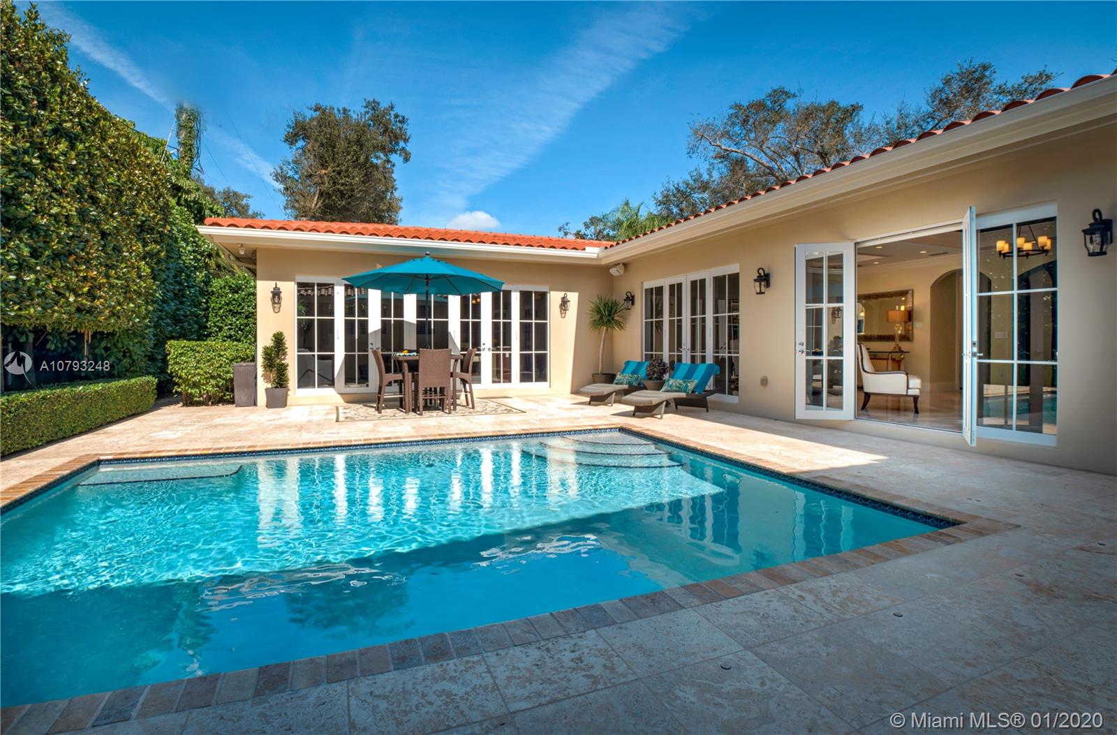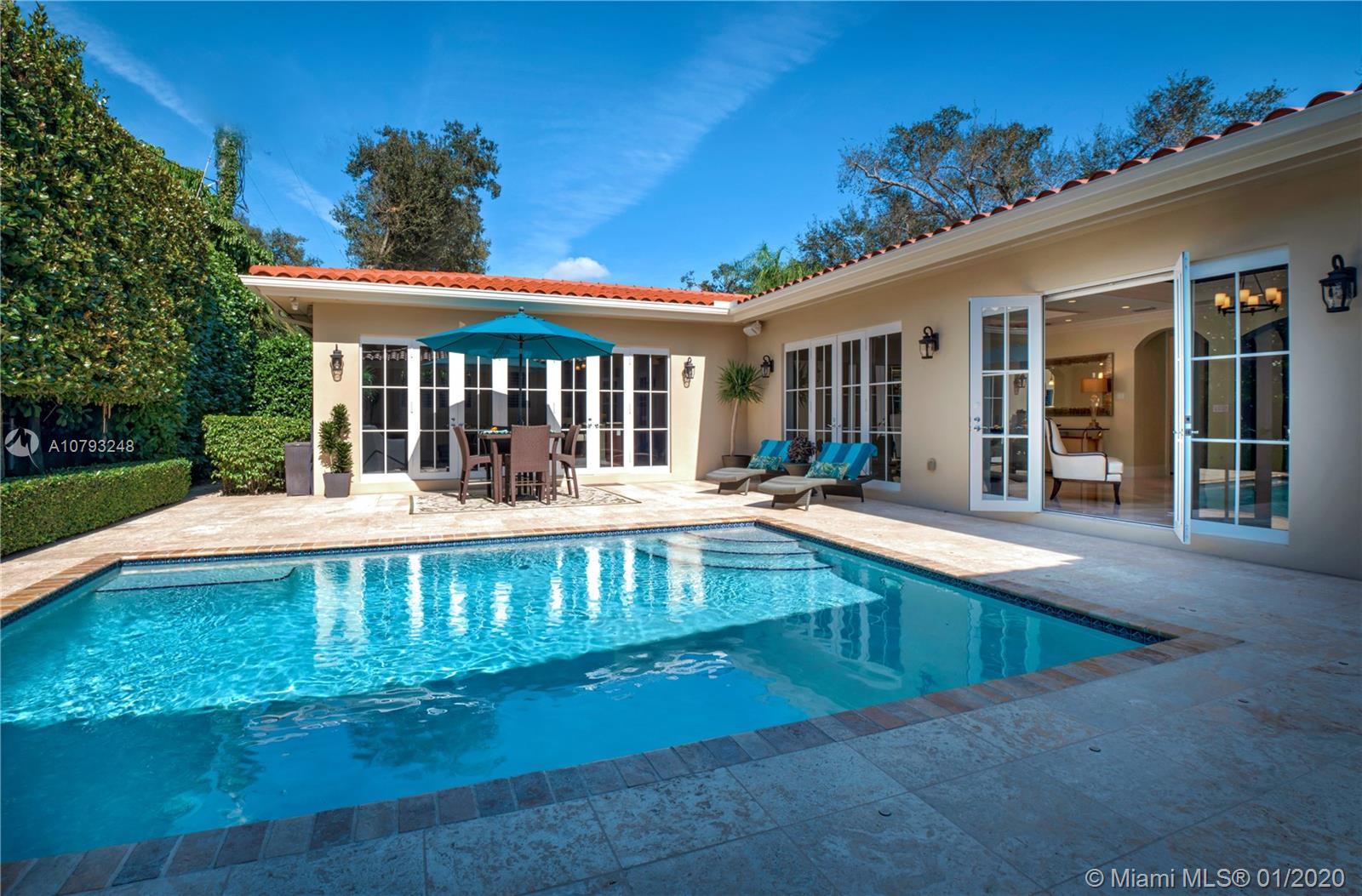 Executive living meets tropical haven! Move-in ready, single-story residence on coveted Coral Gables street features 4bd, 4ba, 3,505 total SF, newer construction (2010) & luxurious yet functional smart living spaces. Spacious interior design, soaring ceilings & 24x24 polished travertine floors create a bright floorplan that flows from one room to the next, all opening up to the tranquil courtyard pool. Mature landscaping provides complete privacy. Gas chef's kitchen offers high-end appliances & plenty of storage, perfect for those that love to cook/entertain. The sumptuous master suite boasts his/her walk-in closets & spa-like bath that presents a serene place to retire from your busy day. Full impact windows & doors! Minutes from Shops at Merrick Park, Biltmore, UM & Riviera Country Club.