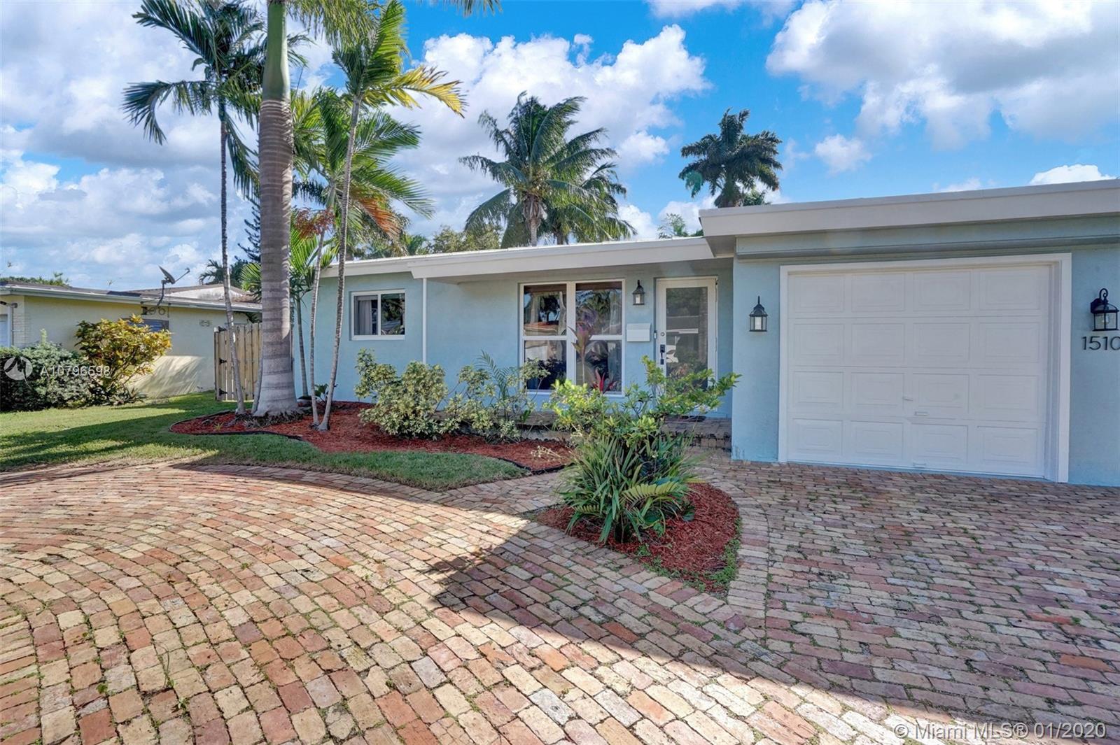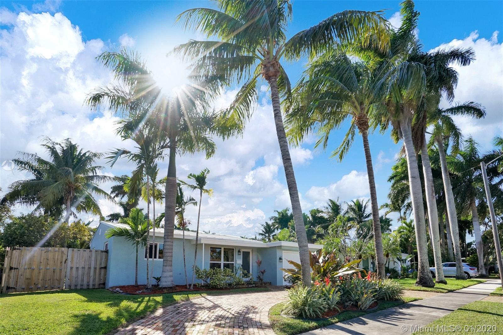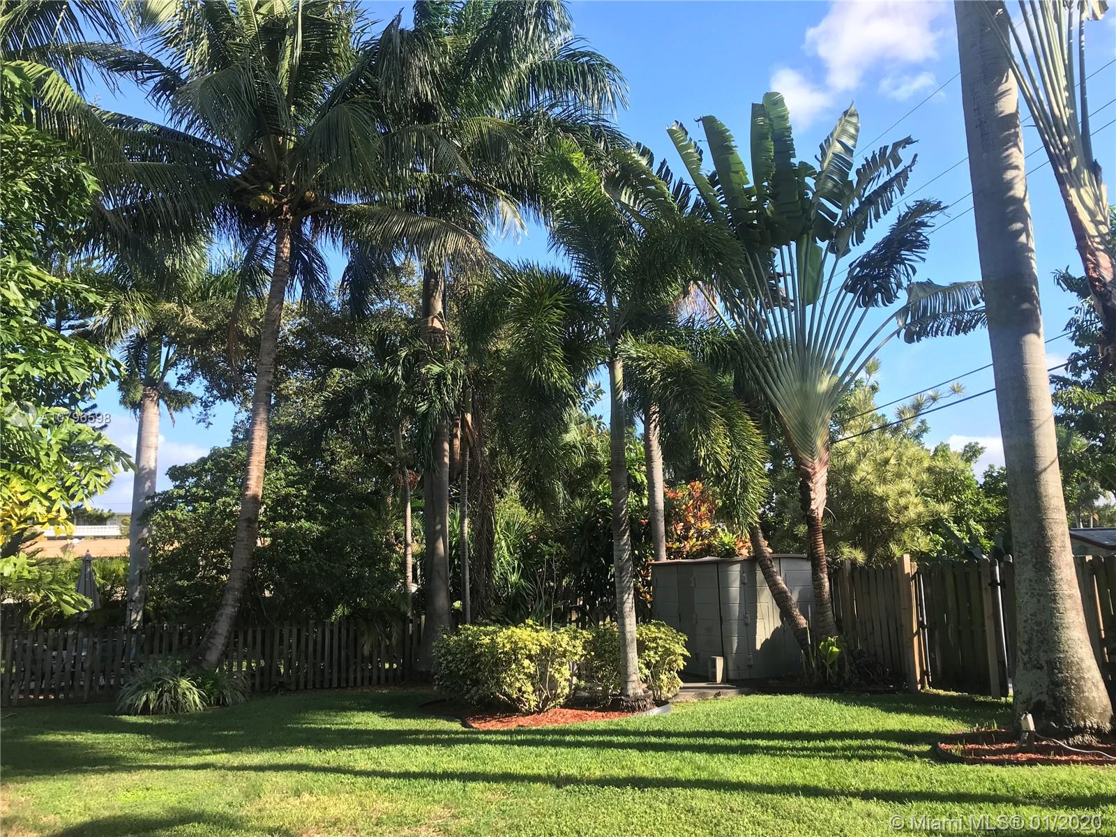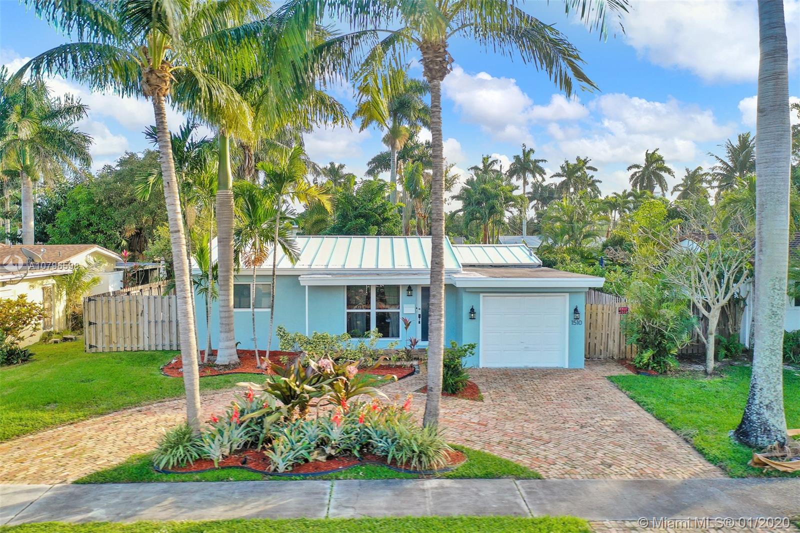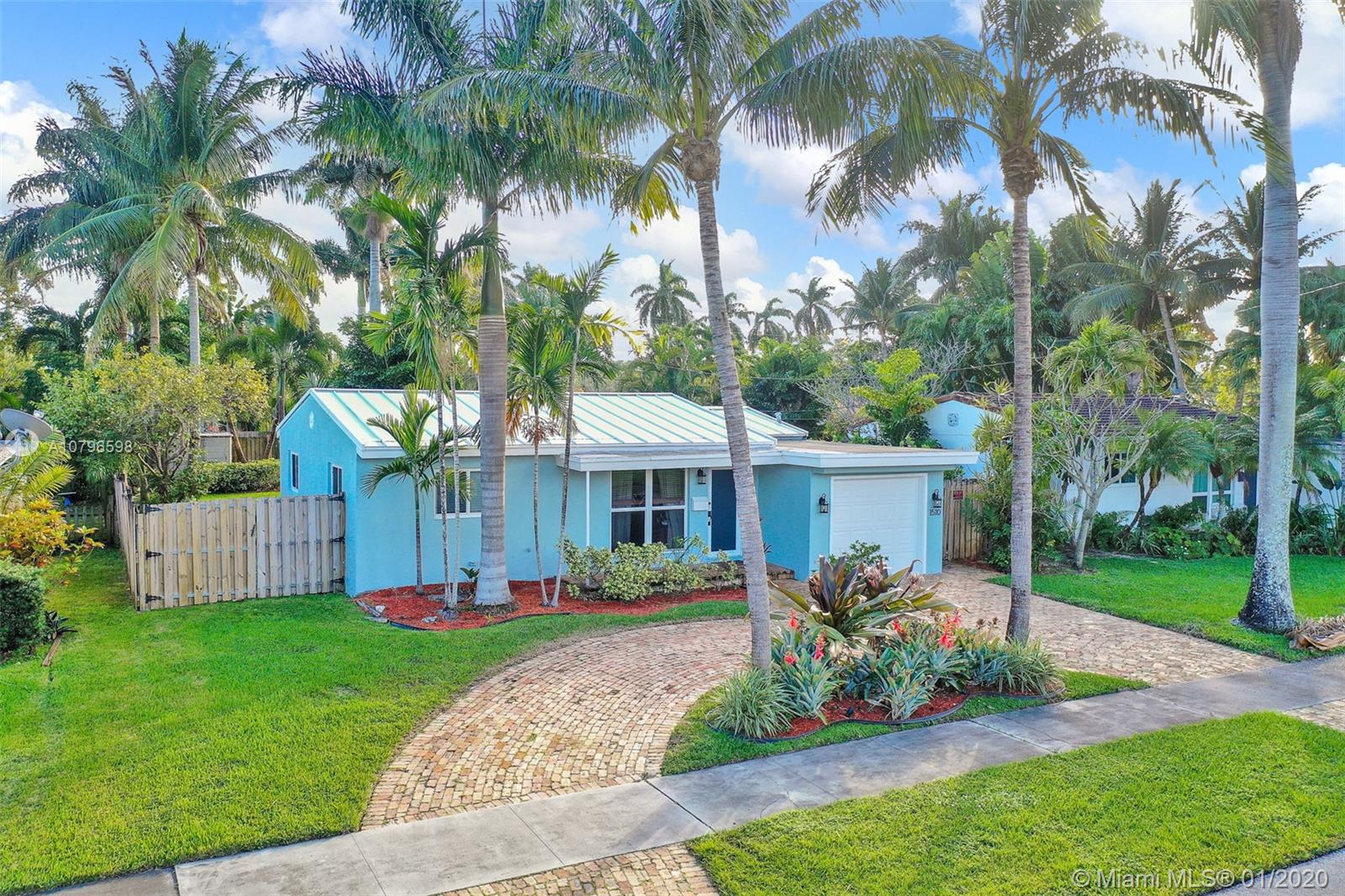 Enchanting 2/2+ 3rd room converted garage + Florida room home on large fenced lot. Loads of charm, impact windows & doors, metal roof, crown molding and tile floors. Renovated kitchen with wood cabinets, granite counters, custom tile backsplash and stainless steel appliances. Additional features include: lots of storage, LED lighting, Chicago brick circle driveway, front porch, back porch, shed, 417sqft large deck in yard + separate side boat parking area. Rear alley & back gate for additional parking in huge yard for RVs or boats. Lush landscaping with Royal Palms, Grand Palms, Queen palms, guava and more. A/C 2 yrs old. Close to parks, shopping, cafes, airports, casinos, boardwalk, Fort Lauderdale nightlife & more. Bike to beach! NO HOA. Larger than tax roll 1480 sqft