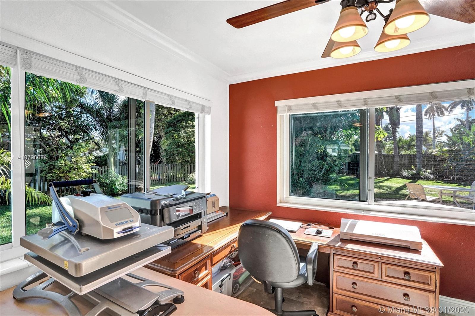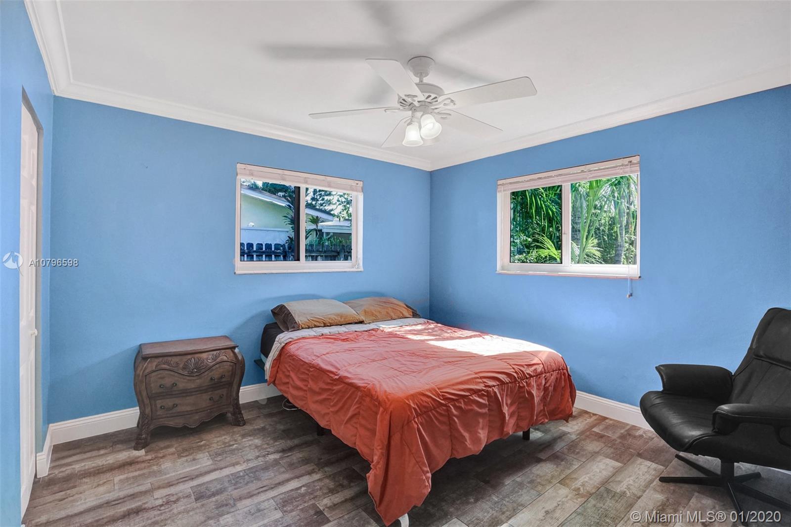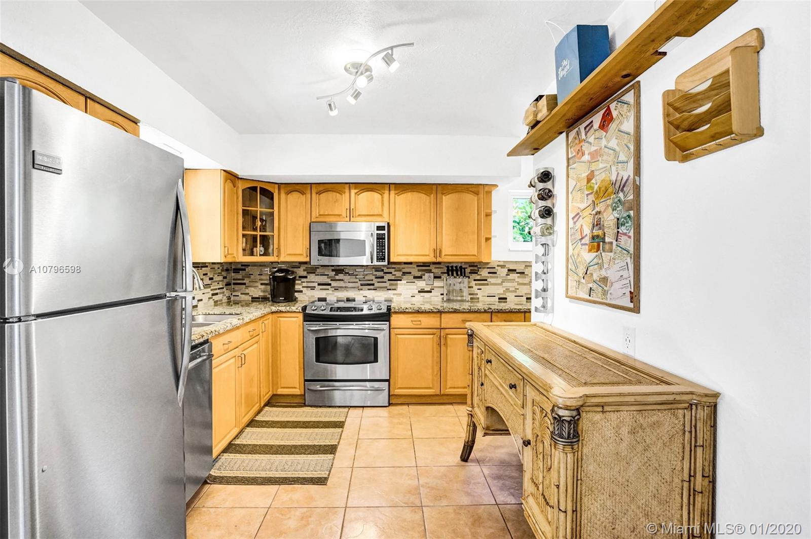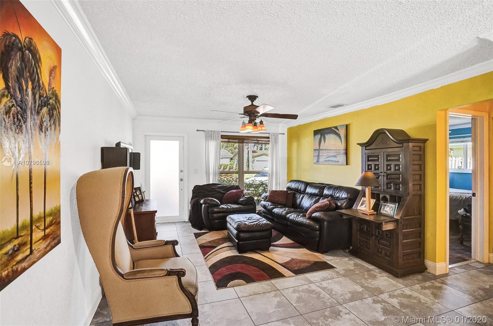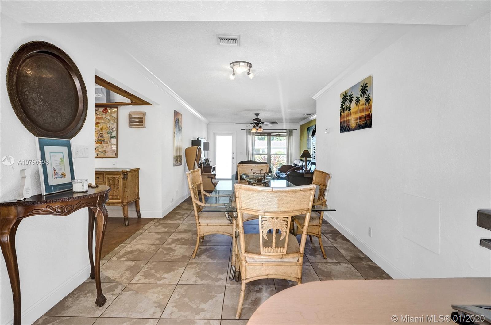 Enchanting 2/2+ 3rd room converted garage + Florida room home on large fenced lot. Loads of charm, impact windows & doors, metal roof, crown molding and tile floors. Renovated kitchen with wood cabinets, granite counters, custom tile backsplash and stainless steel appliances. Additional features include: lots of storage, LED lighting, Chicago brick circle driveway, front porch, back porch, shed, 417sqft large deck in yard + separate side boat parking area. Rear alley & back gate for additional parking in huge yard for RVs or boats. Lush landscaping with Royal Palms, Grand Palms, Queen palms, guava and more. A/C 2 yrs old. Close to parks, shopping, cafes, airports, casinos, boardwalk, Fort Lauderdale nightlife & more. Bike to beach! NO HOA. Larger than tax roll 1480 sqft