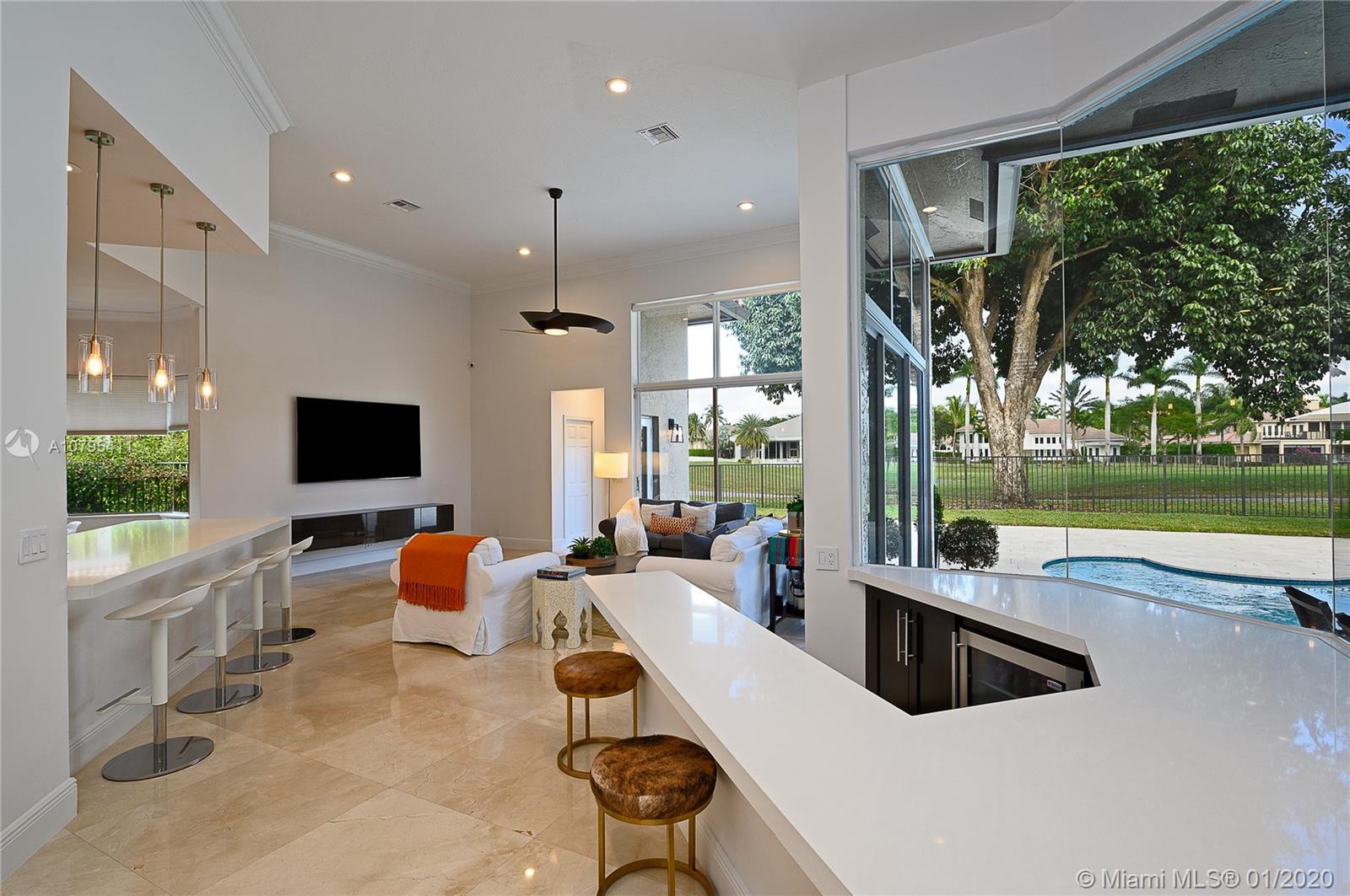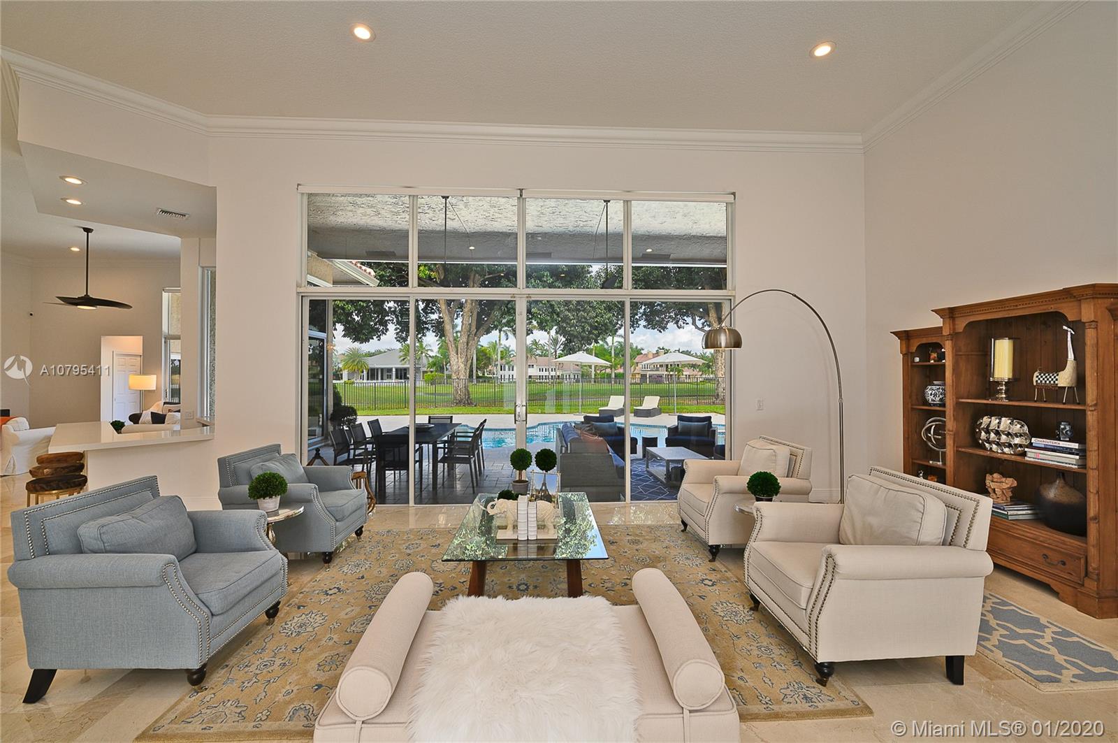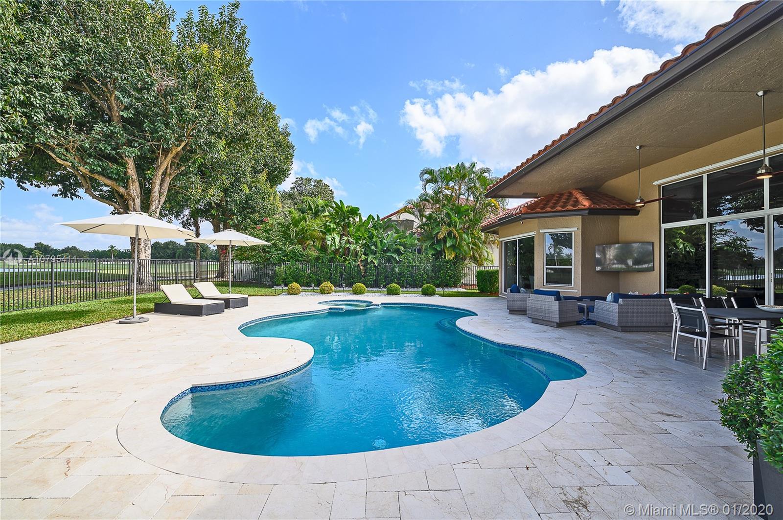 A FULLY REMODELED HOUSE from roof to floors, located on the 15th fairway of the tour course with breathtaking views of golf & water. Great home that’s open and bright, with volume ceilings, freshly painted with neutral modern colors, new marble flooring in main areas and wood flooring in the bedrooms, new roof and lavish landscaping. The family room and open kitchen will be an area you won’t want to leave while you enjoy the view of the gorgeous renovated pool area and the grand views of the golf course and its lakes, triple split layout with an expansive master suite and bath, oversize bedrooms, custom closets, ultra modern upgraded bathrooms are just some of the many long list of upgrades and features this house have to offer. This is a MASTER PIECE you don't want to miss!!!