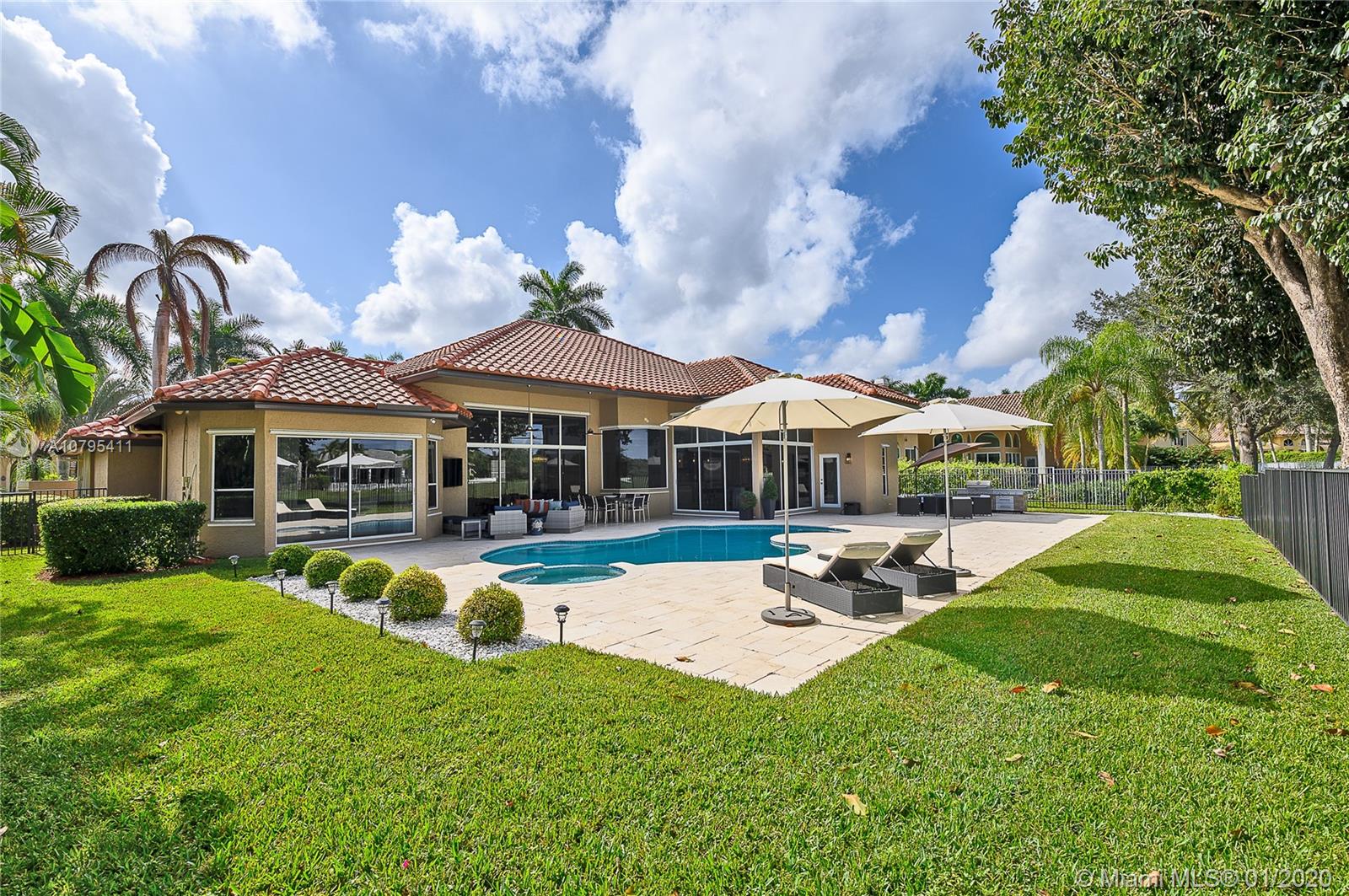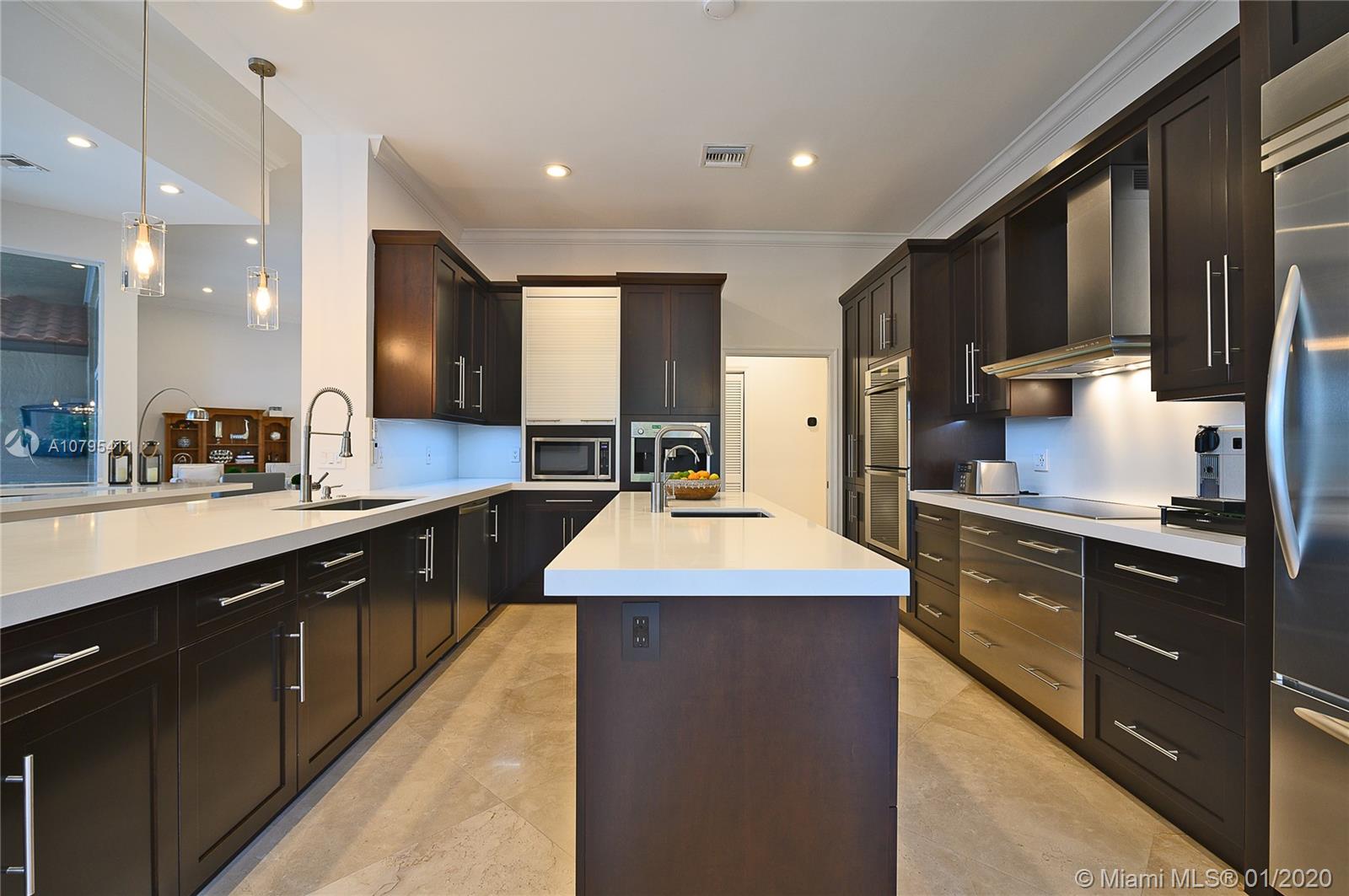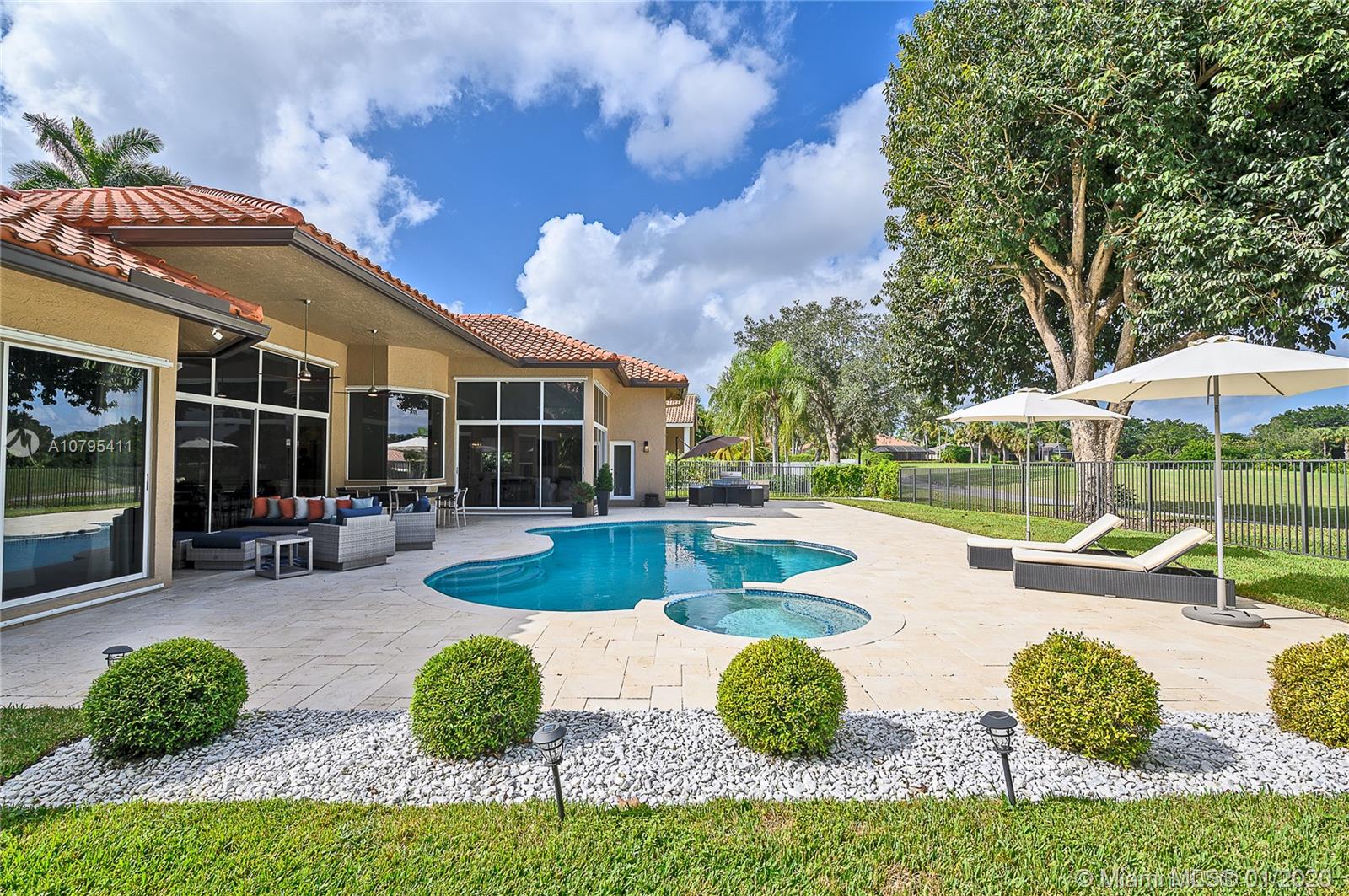 A FULLY REMODELED HOUSE from roof to floors, located on the 15th fairway of the tour course with breathtaking views of golf & water. Great home that’s open and bright, with volume ceilings, freshly painted with neutral modern colors, new marble flooring in main areas and wood flooring in the bedrooms, new roof and lavish landscaping. The family room and open kitchen will be an area you won’t want to leave while you enjoy the view of the gorgeous renovated pool area and the grand views of the golf course and its lakes, triple split layout with an expansive master suite and bath, oversize bedrooms, custom closets, ultra modern upgraded bathrooms are just some of the many long list of upgrades and features this house have to offer. This is a MASTER PIECE you don't want to miss!!!