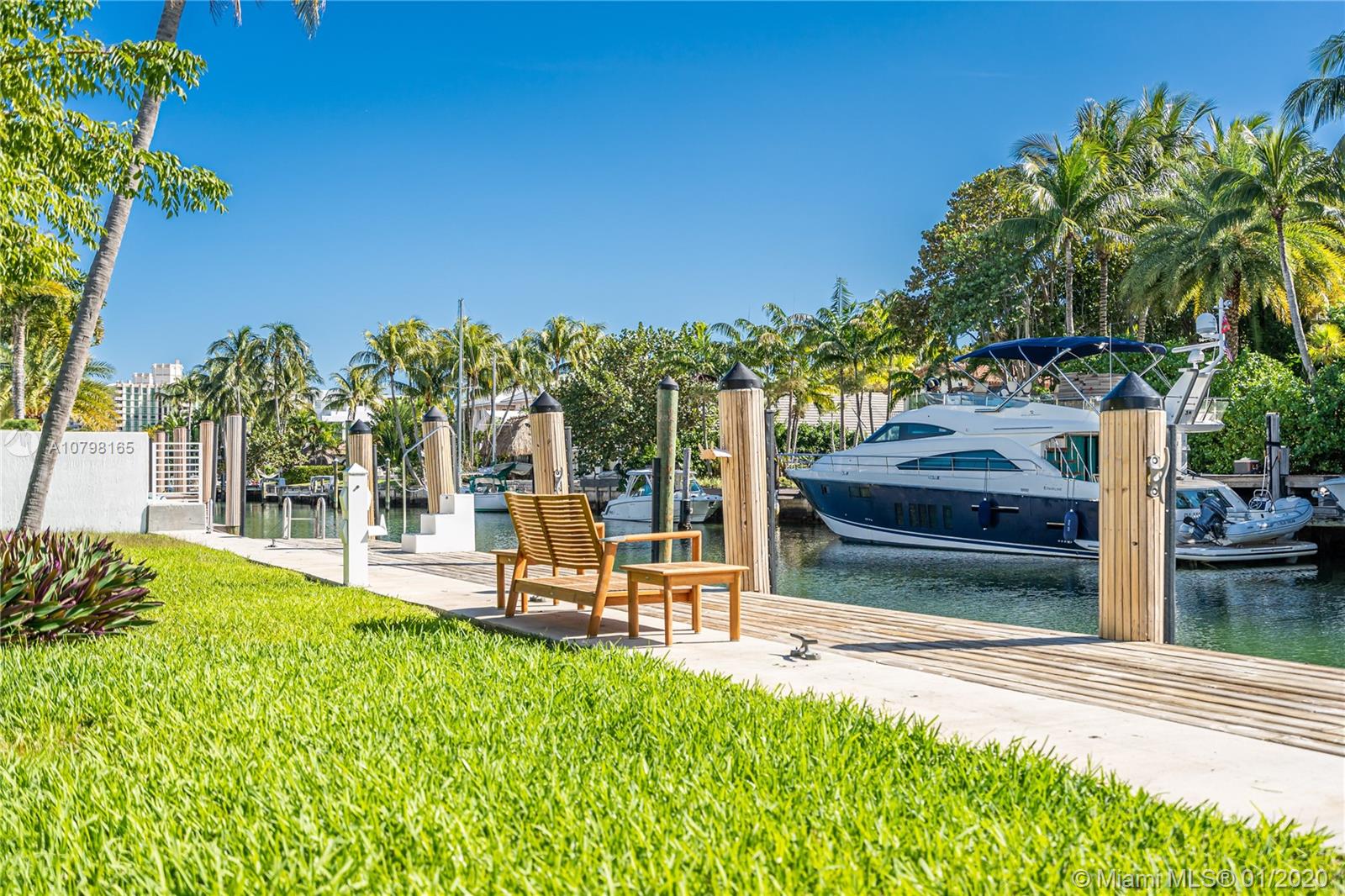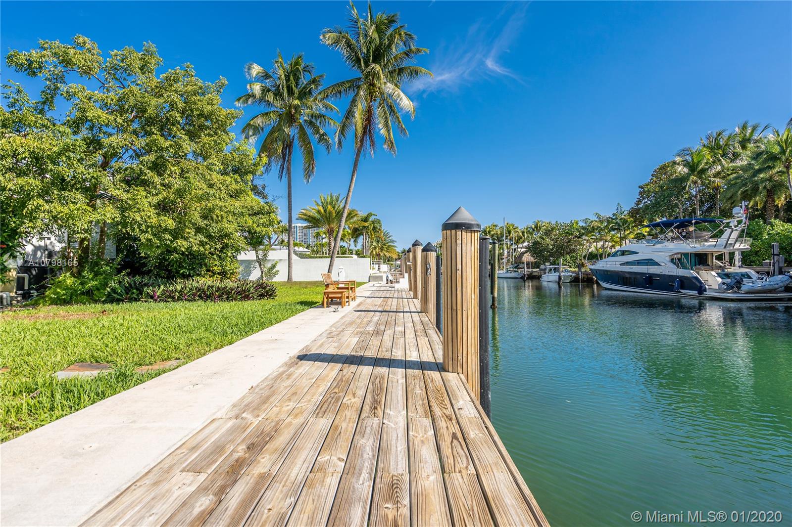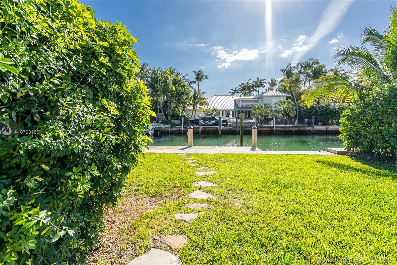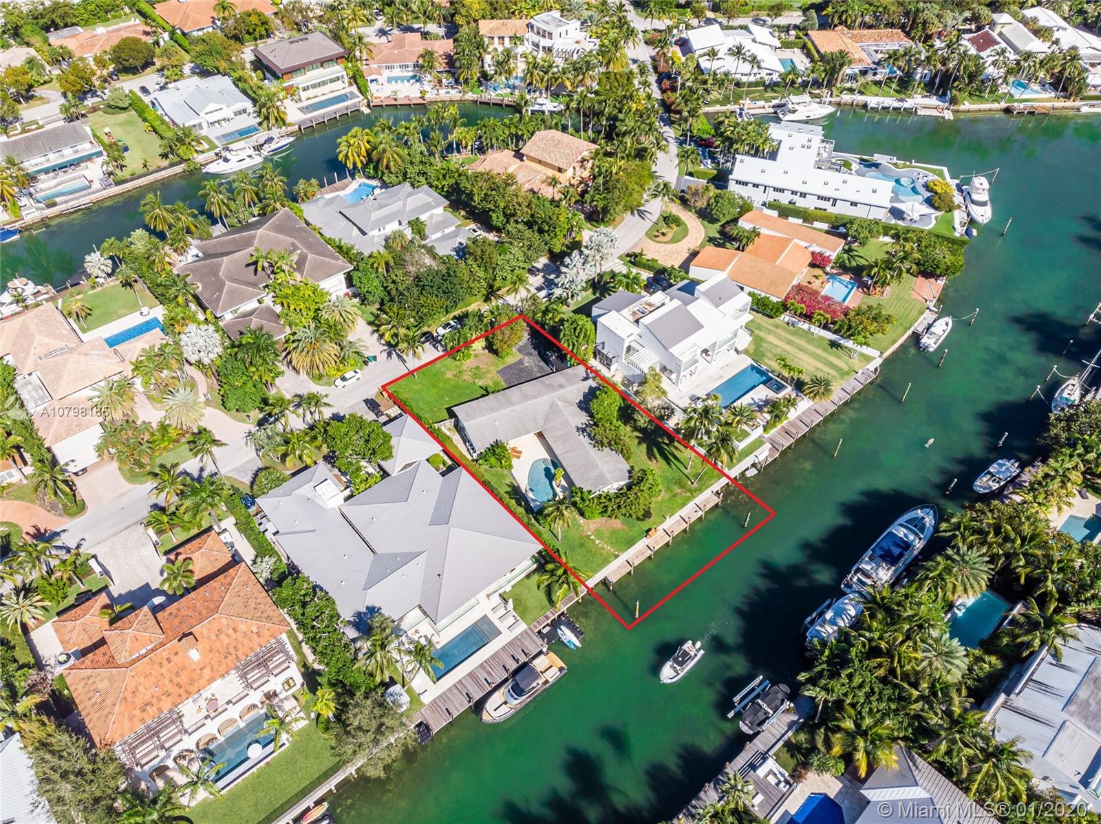 Lowest priced for a 15,000 SF Waterfront lot in Key Biscayne! Over 100 feet of water frontage with highly desirable South exposure and easy access to open Ocean. Build your dream home or remodel the current existing 3BR/3BA/3,541 SF home. Lot features new Dock and sea wall, and lot size is 100 x 150. Plans and permit available for a new contemporary home.