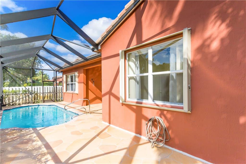 BEAUTIFUL FOUR BEDROOM HOME WITH A POOL IN MONARCH LAKES! THIS HOME FEATURES BEAUTIFUL TILE FLOORING THROUGHOUT. LARGE KITCHEN WITH GENEROUS AMOUNT OF COUNTERTOP SPACE. SPLIT BEDROOM PLAN & VOLUME CEILINGS. THE BACKYARD HAS A LARGE SCREENED IN SOLAR HEATED POOL & A COVERED SITTING AREA. THIS HOME IS PROTECTED BY ACCORDION SHUTTERS & SECURITY SYSTEM.