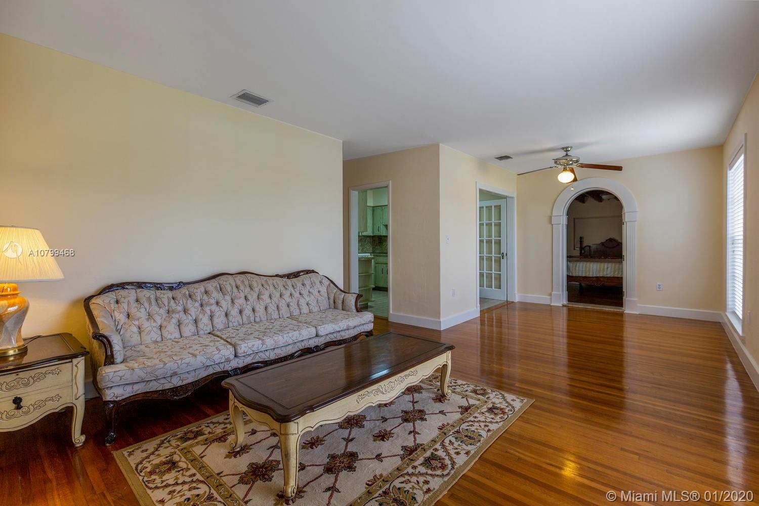 Fantastic home in Hot Hialeah! Spacious 4 bedroom/2 bath home...Beautiful foyer entry leads into living and dining area with gleaming wood floors. Private dining room can also be set up as a family room. 3 bedrooms and 2 baths are on 1 side of home with updated jack and jill bathroom. 2nd bathroom is in good condition - a retro 1950's style. Bedroom #4 is off living dining area...this room can serve as a guest room or den/office as well. Kitchen has a great working space and in very good condition. Most of the window are updated. New roof from about 15 months ago, new AC from 2018, updated electrical. Great circular driveway with great curb appeal on this home. Back yard extends 134 feet with private laundry room, tool shed too! This home is a winner!