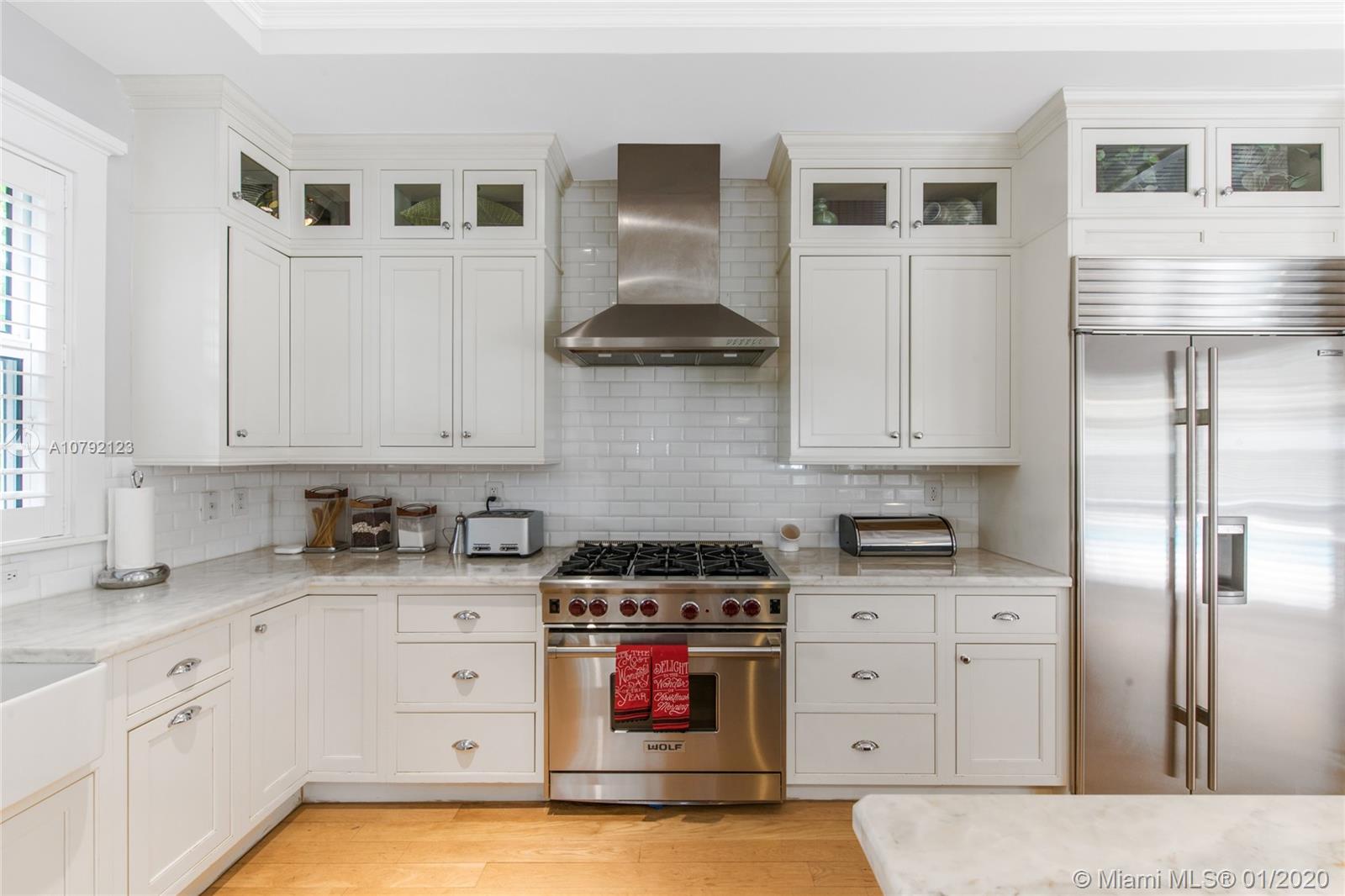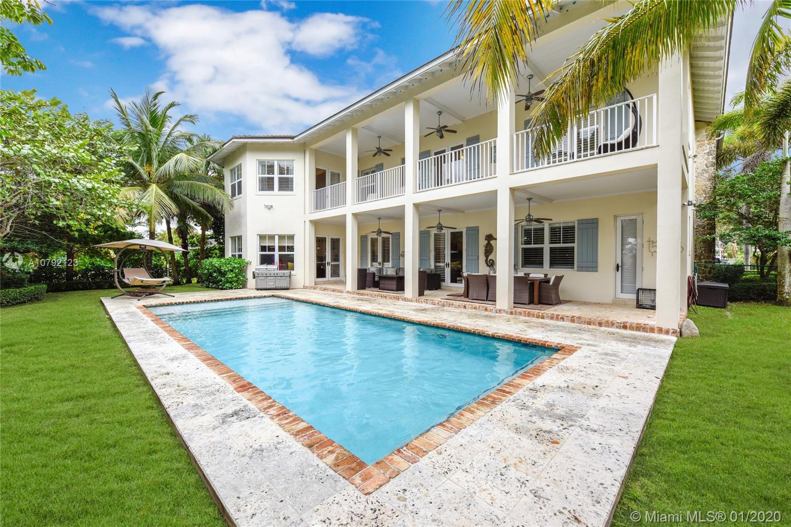Key West style home (built 2007) impeccably maintained in prestigious Village of Pinecrest! 5 Bedrooms (hard wood floors) full of natural light. Exterior porches all around, protected by impact doors/windows. 5-1/2 Baths (limestone floors) including Cabana Bath. Heated pool with salt-water pump. Large Open Kitchen with breakfast nook, Granite Counter-tops, Wolf brand Gas-Stove & Oven, Stainless Steel Appliances, and enormous walk-in Pantry. Family Room downstairs + Family Room upstairs with wet bar kitchenette. Formal Dining Room and formal Living Room with gas-burning fireplace. Built-in Outdoor/Indoor speaker system. 8 zone security camera system. Plantation blinds. Large capacity Generator with auto on/off switch. 2-car garage with cabinetry. 2 docks with davits leading to ski-lake.